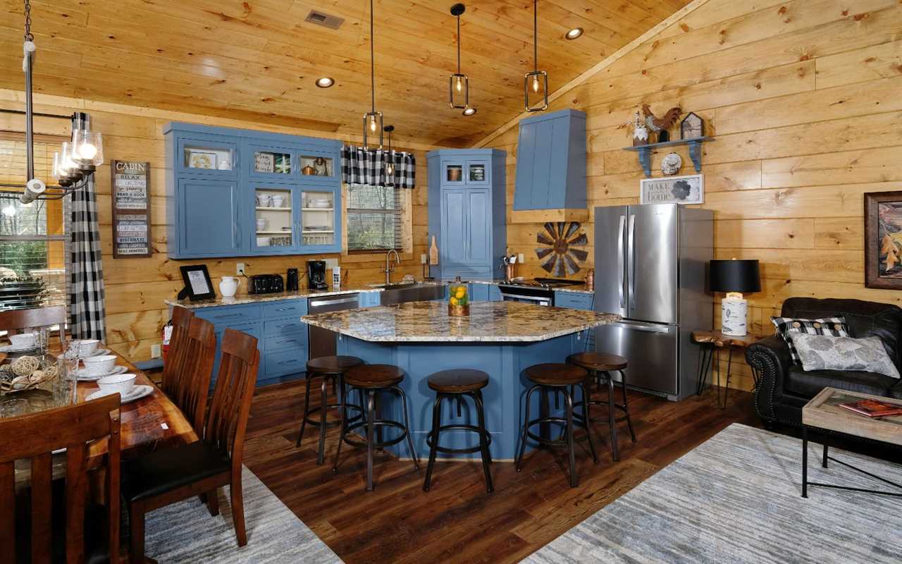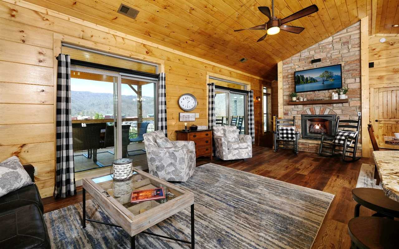Sit back with a drink in the rocking chairs to start your day, and then head to the fully equipped kitchen to prepare a delicious mountain breakfast. Unwind in the living room, where stone and log details give you a lodge experience. The gas fireplace is perfect for cool mountain days, whether you want to curl up with a good book or chat with friends. Enjoy soaking away stresses in the outdoor hot tub, treat yourself to a spa day in the Himalayan salt room, or just take advantage of high speed wireless internet and relax.