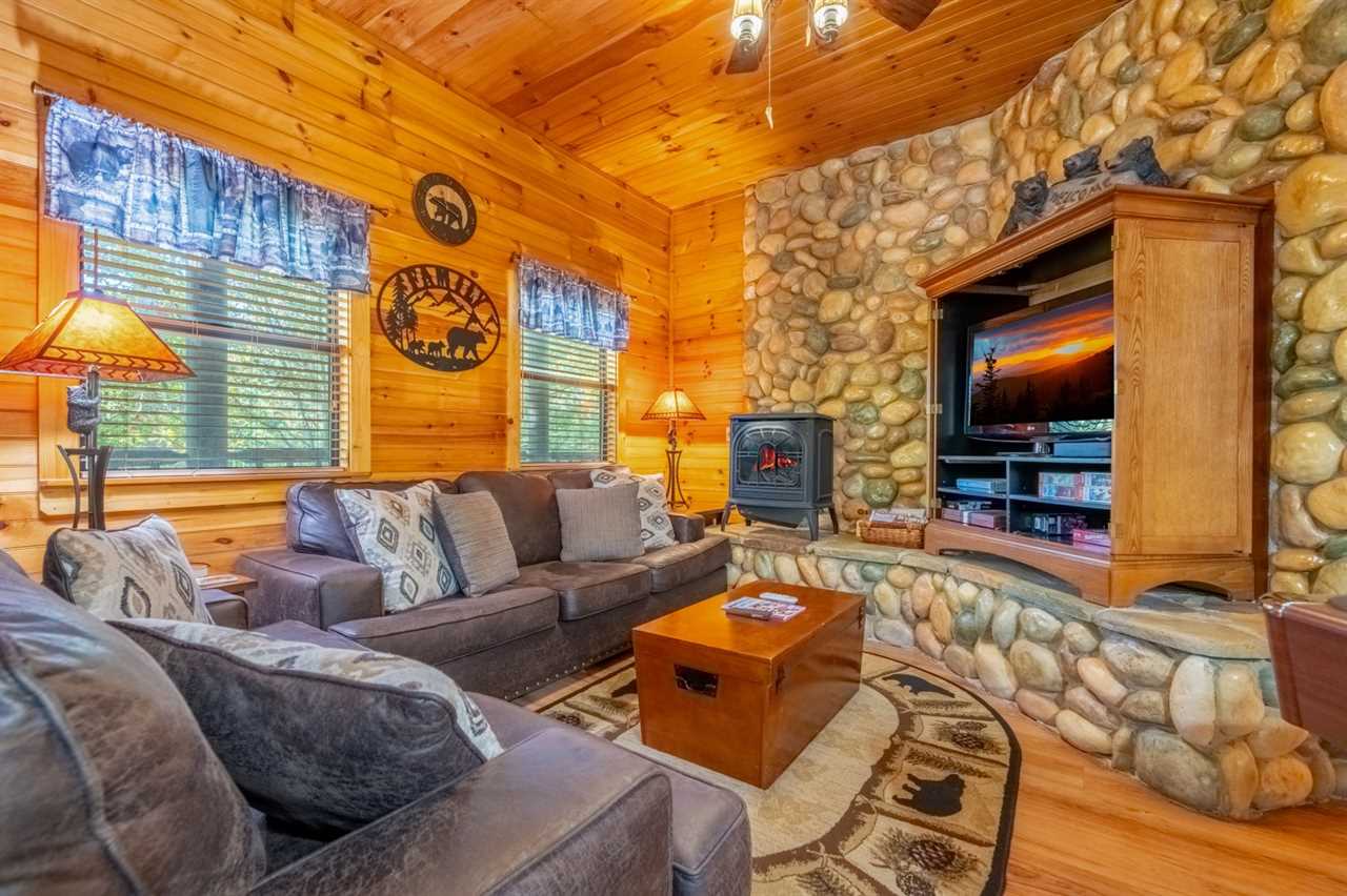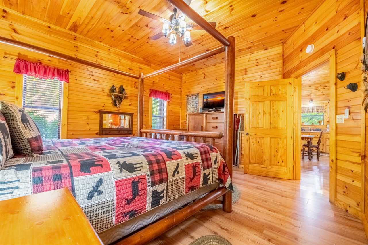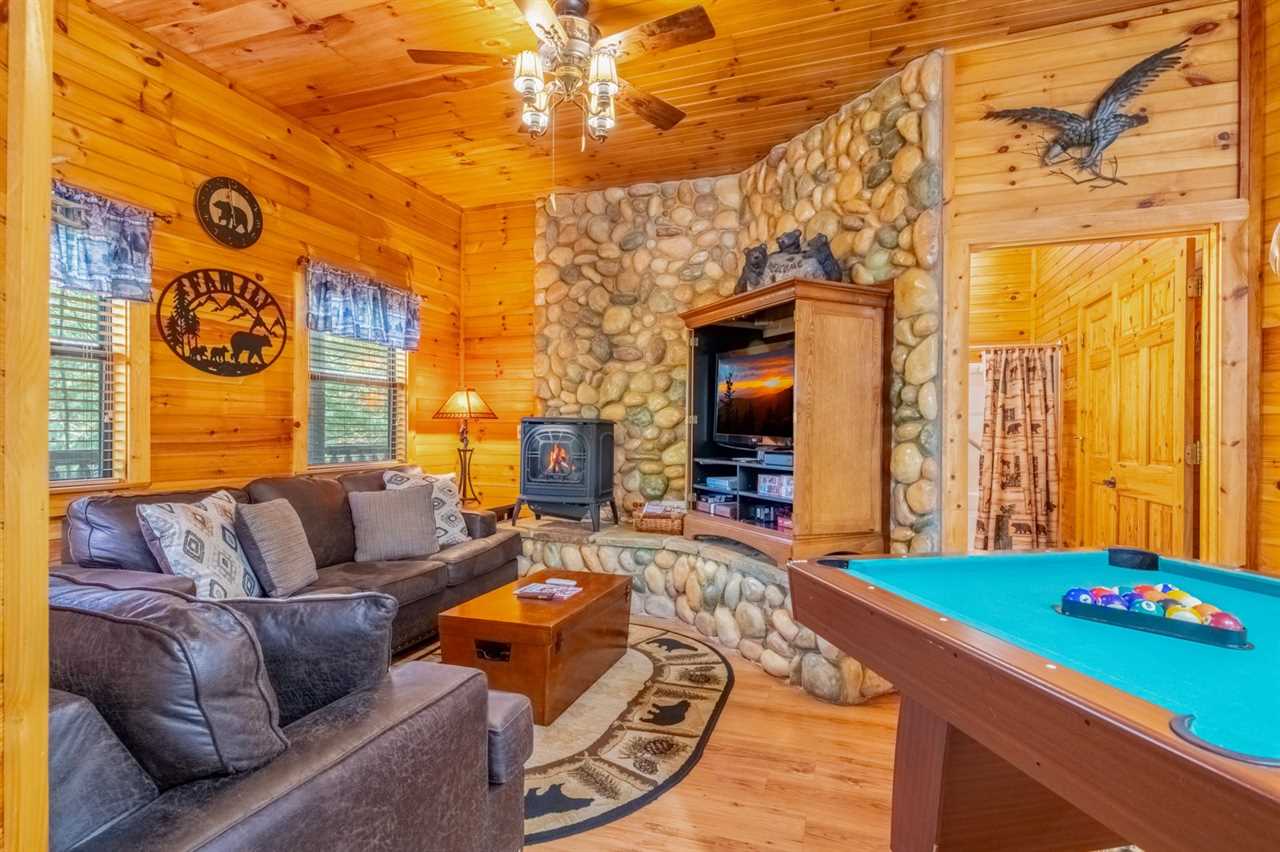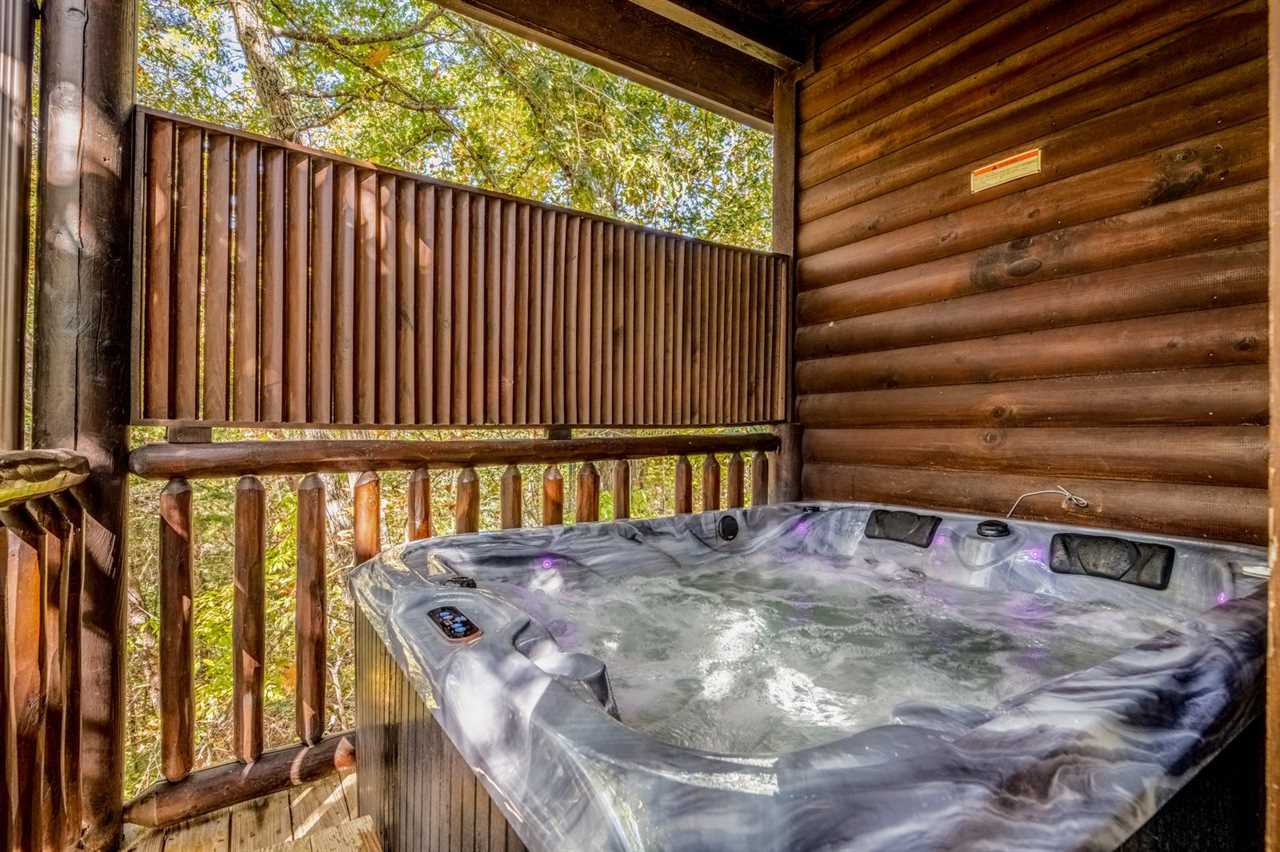 New as of fall 2025: Appalachian decor, updated furnishings & a relaxing hot tub! Peaceful Surroundings, Steamy Soaks & Game Nights Gaze out at tree-studded views from the outdoor table and rockers on the deck at this cozy log cabin. Soak tired muscles in the hot tub after playing in town or hiking in the national park. Shoot pool anytime, play board and card games at the dining table, and watch entertainment on the TV every evening. You can also read in the sitting area or cuddle by the gas heater in the inviting living area. Fun Cookouts, Bubble Baths & Sweet Dreams You'll appreciate a charcoal, picnic-style grill and a gas grill to cook out plus a fully equipped kitchen (with a dishwasher, standard drip coffeemaker, and a Keurig) to prepare meals and snacks. To further unwind, draw yourself a hot bubble bath in the indoor jetted tub before slipping into your king-size, log-style canopy bed. There's also another TV and a ceiling fan to keep you comfortable in the bedroom. For additional accommodations, you'll have a sleeper sofa in the common area. Easy Access to Appalachian Activities Wood interiors, nice amenities, and a convenient location just 5 miles from Parkway attractions, shops, events, and restaurants make Hanky Panky a great place to get away in the Great Smoky Mountains. Nestled in Pigeon Forge, this 1-bedroom, 1-bathroom cabin rental sleeps up to 4 guests and is ideal for honeymoons, anniversary trips, romantic weekends away, or fun vacations with friends or family. Important Notes • Keep in mind this Pigeon Forge cabin runs on well water, which means the water may be slightly discolored at times and produce a sulfuric smell. Well water is safe to use; it just has different minerals from the earth, so it may feel, smell, or look different. • The driveway is flat and paved, so when you want to venture into town, it won't be a hassle. There's parking space for 2 vehicles, and a ramp makes it easy to enter and leave the cabin throughout your stay.