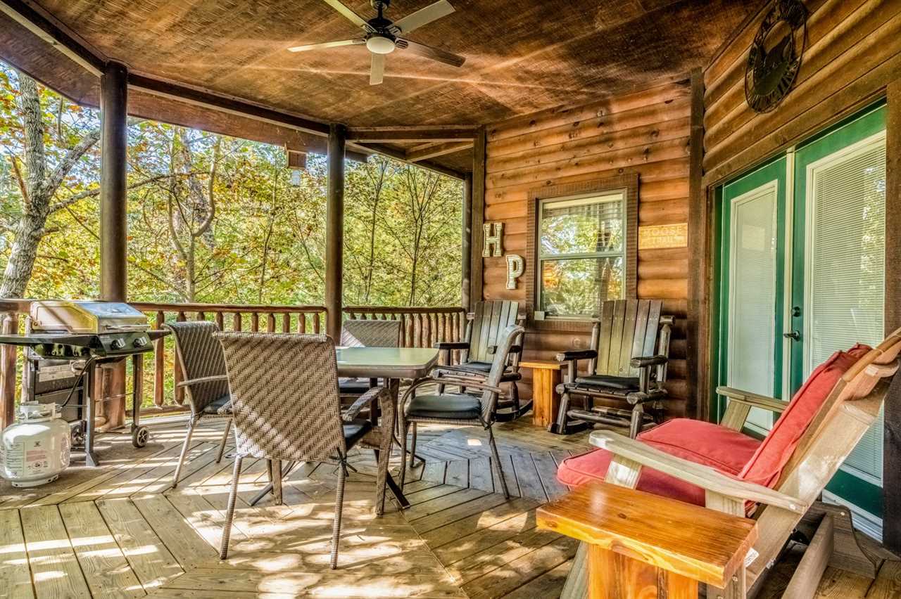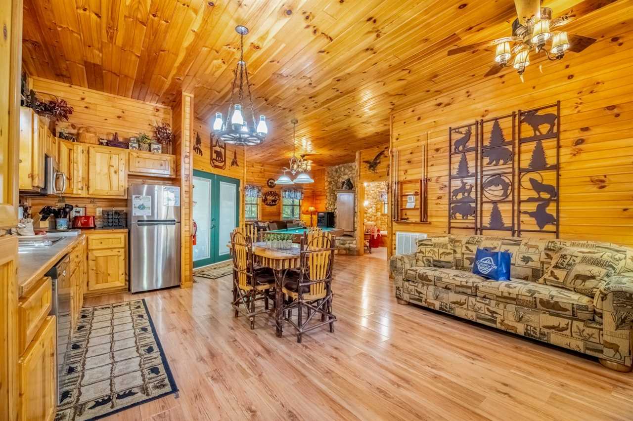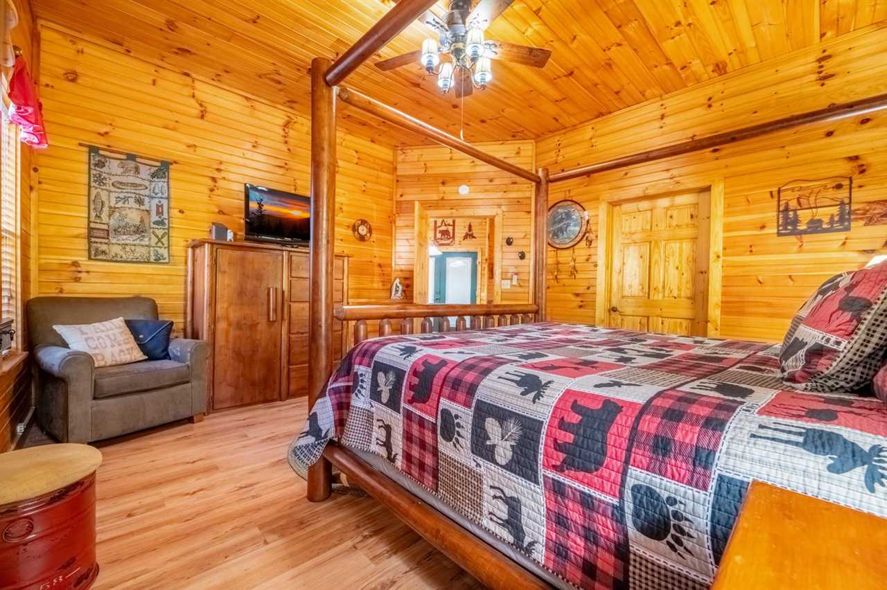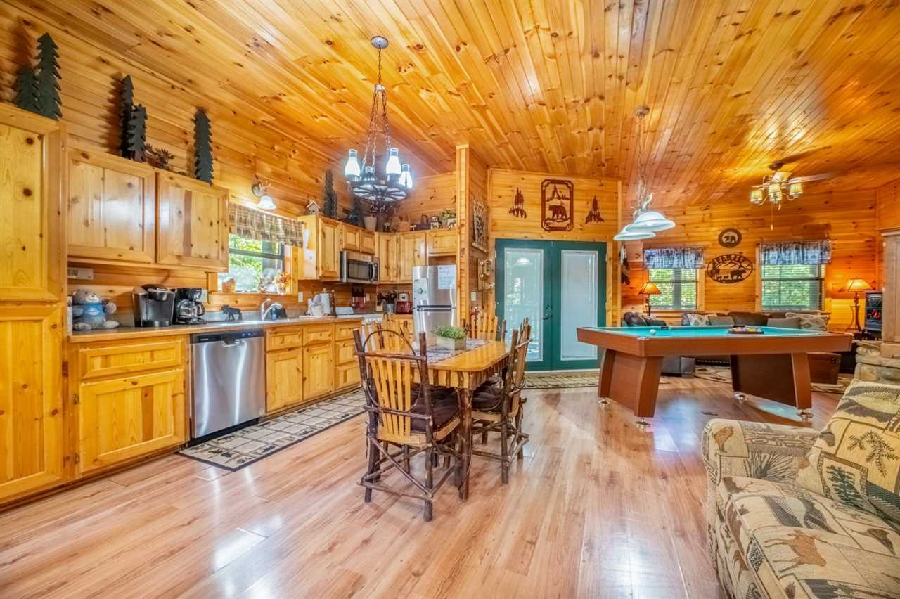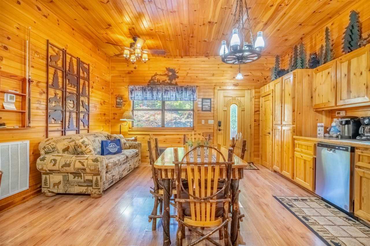 New as of fall 2025: Appalachian decor, updated furnishings & a relaxing hot tub! Peaceful Surroundings, Steamy Soaks & Game Nights Gaze out at tree-studded views from the outdoor table and rockers on the deck at this cozy log cabin. Soak tired muscles in the hot tub after playing in town or hiking in the national park. Shoot pool anytime, play board and card games at the dining table, and watch entertainment on the TV every evening. You can also read in the sitting area or cuddle by the gas heater in the inviting living area. Fun Cookouts, Bubble Baths & Sweet Dreams You'll appreciate a charcoal, picnic-style grill and a gas grill to cook out plus a fully equipped kitchen (with a dishwasher, standard drip coffeemaker, and a Keurig) to prepare meals and snacks. To further unwind, draw yourself a hot bubble bath in the indoor jetted tub before slipping into your king-size, log-style canopy bed. There's also another TV and a ceiling fan to keep you comfortable in the bedroom. For additional accommodations, you'll have a sleeper sofa in the common area. Easy Access to Appalachian Activities Wood interiors, nice amenities, and a convenient location just 5 miles from Parkway attractions, shops, events, and restaurants make Hanky Panky a great place to get away in the Great Smoky Mountains. Nestled in Pigeon Forge, this 1-bedroom, 1-bathroom cabin rental sleeps up to 4 guests and is ideal for honeymoons, anniversary trips, romantic weekends away, or fun vacations with friends or family. Important Notes • Keep in mind this Pigeon Forge cabin runs on well water, which means the water may be slightly discolored at times and produce a sulfuric smell. Well water is safe to use; it just has different minerals from the earth, so it may feel, smell, or look different. • The driveway is flat and paved, so when you want to venture into town, it won't be a hassle. There's parking space for 2 vehicles, and a ramp makes it easy to enter and leave the cabin throughout your stay.