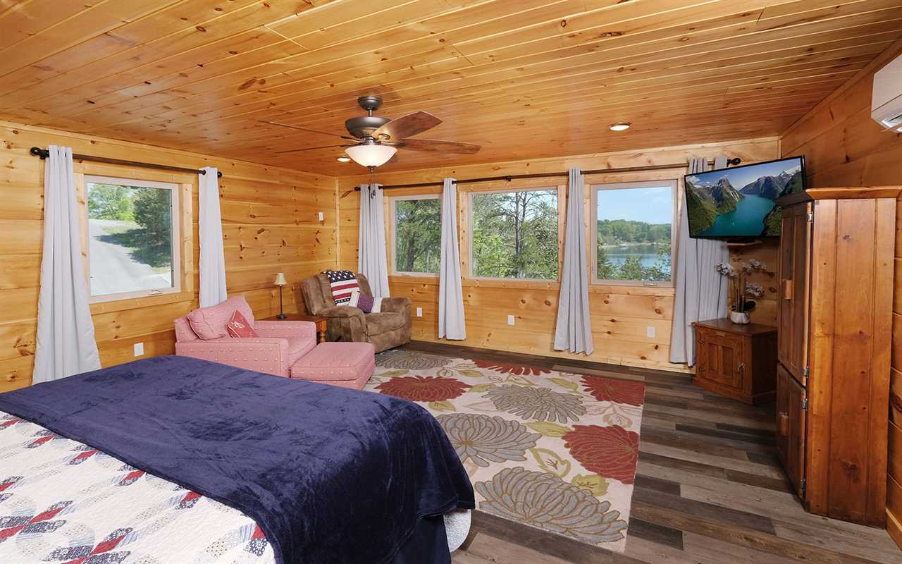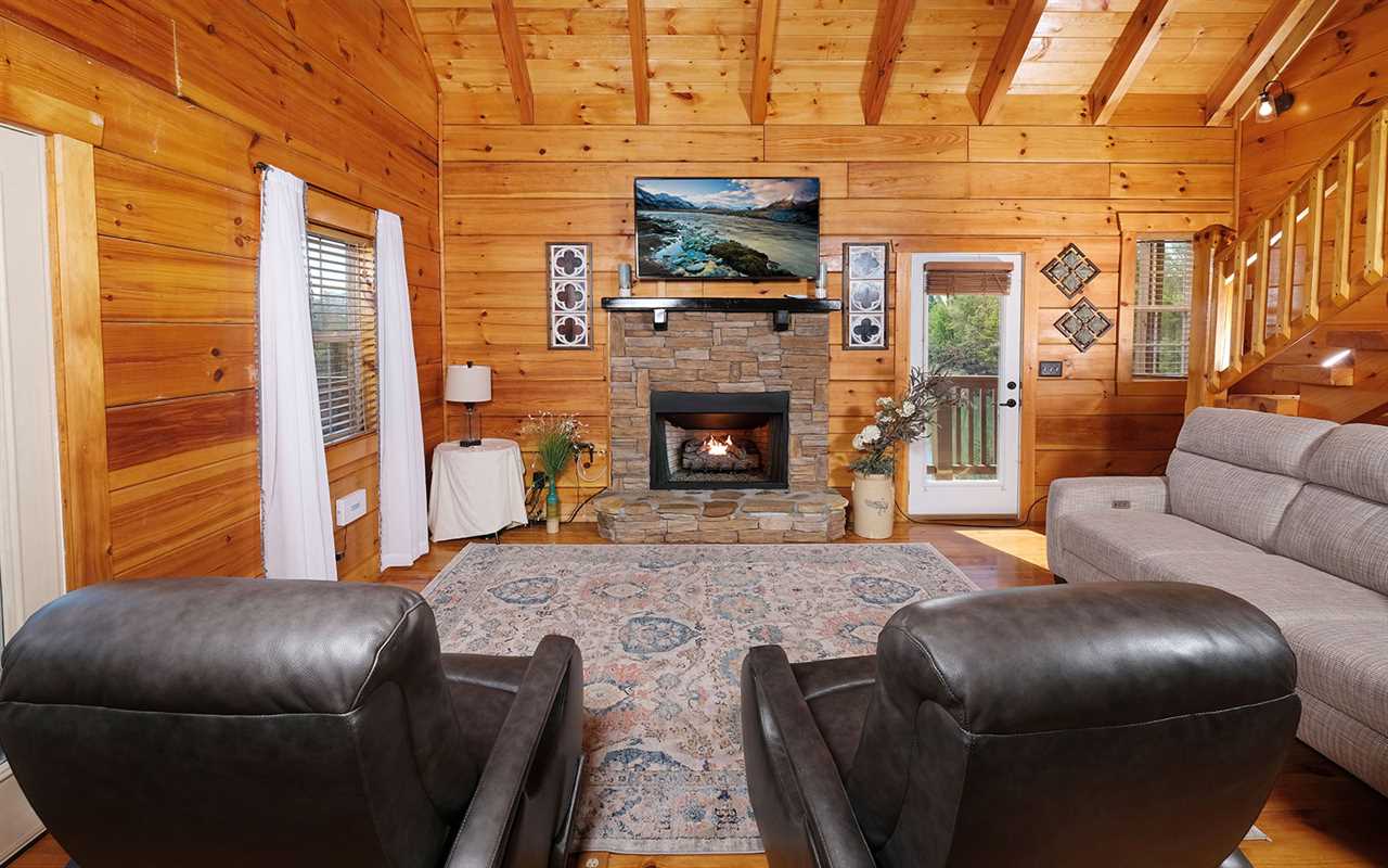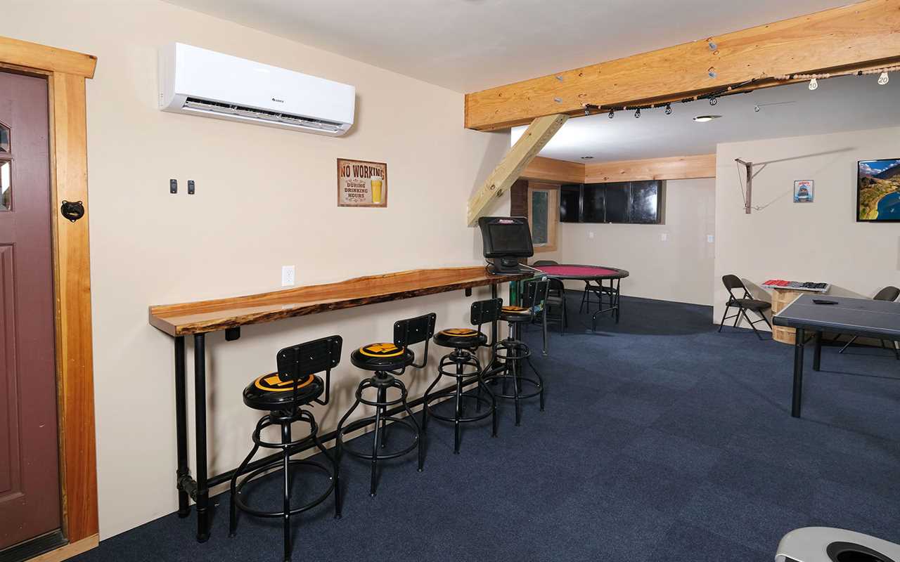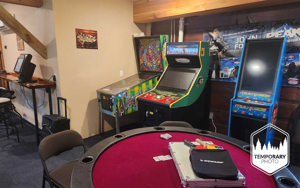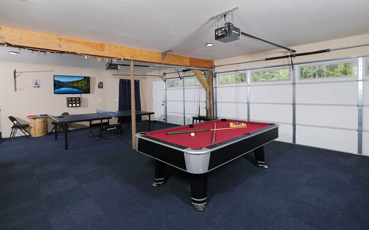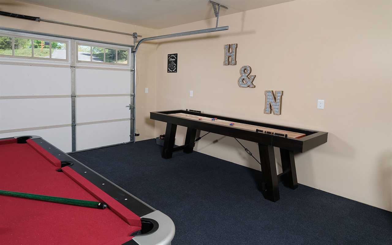 After splashing in the lake, dry off and fire up the gas grill for a fun cookout. Hang out in the rockers on the deck or soak tired muscles in the bubbly hot tub. For more fun, you can beat arcade games, play Golden Tee, shoot pool, or play shuffleboard. There's also a big screen TV and a movie library where you can choose DVDs or Blu-rays for movie nights! On chilly evenings, switch on the gas fireplace to keep cozy and chat with a loved one on the sofa. You can read a captivating book or tap into the high speed Wi-Fi for a browse on the web.