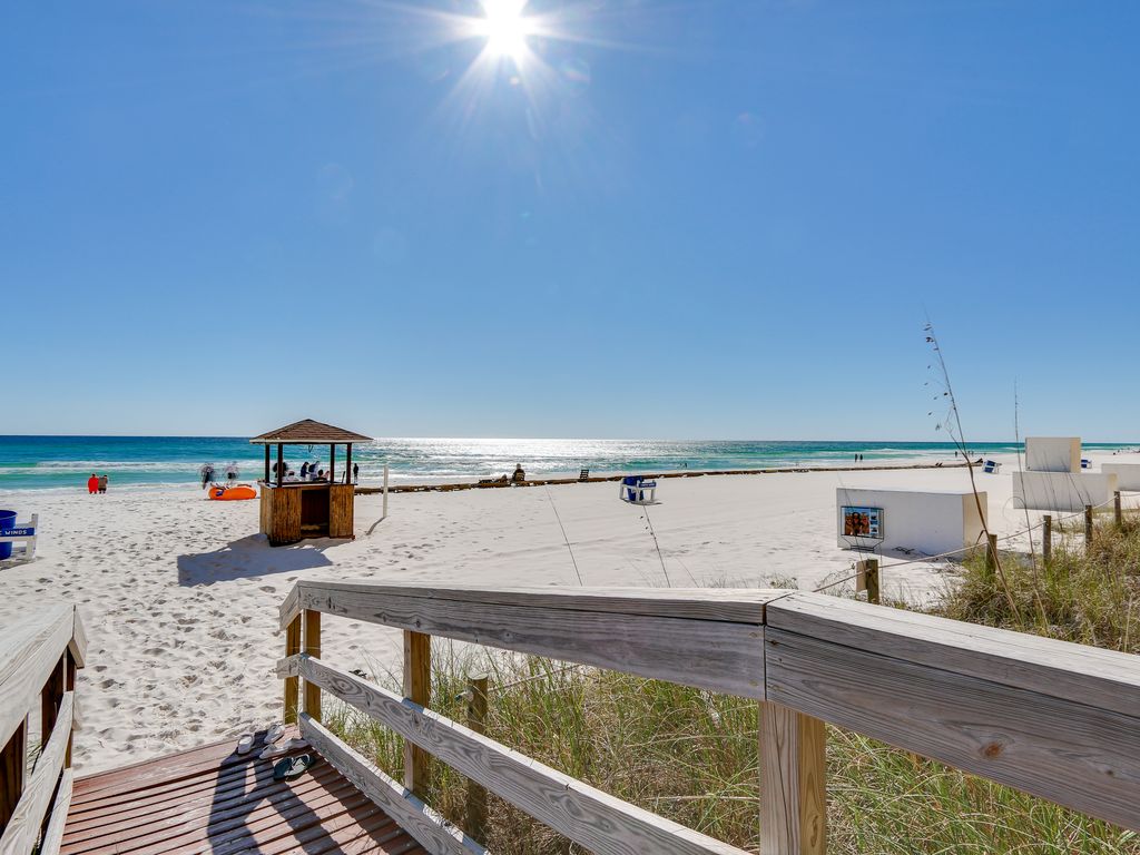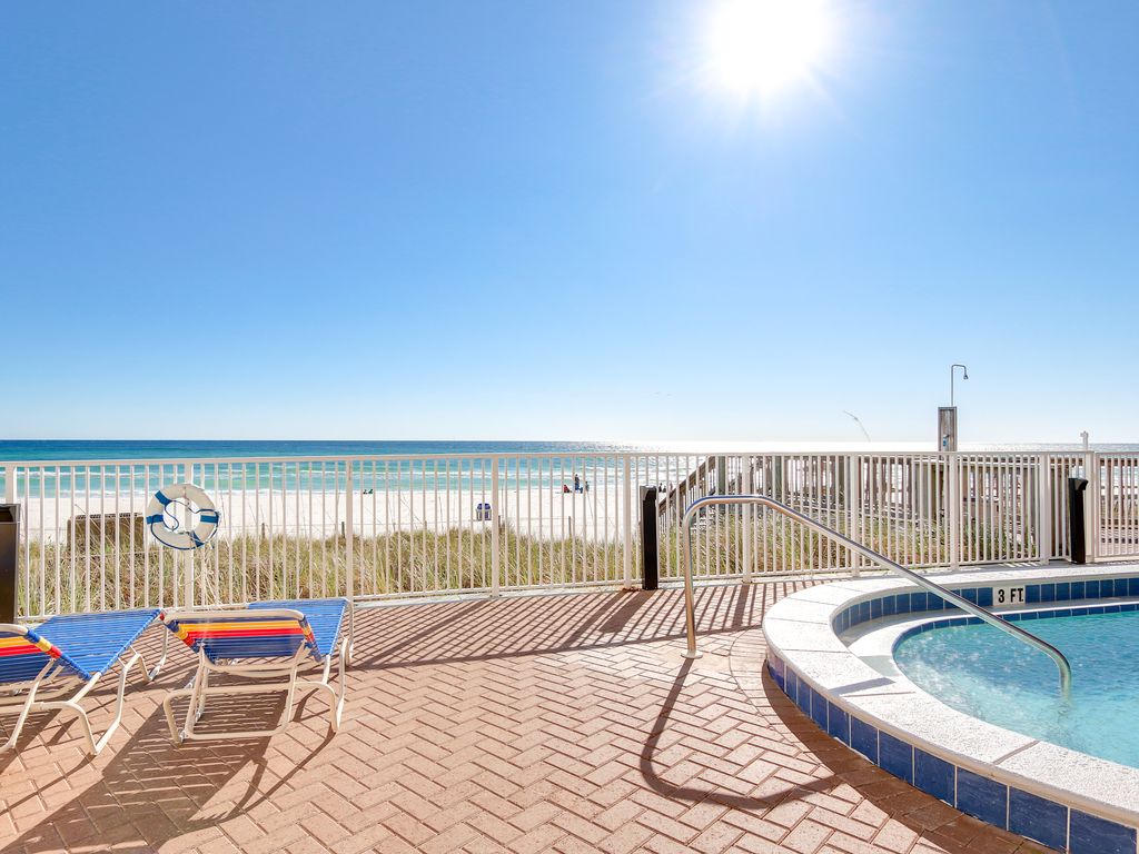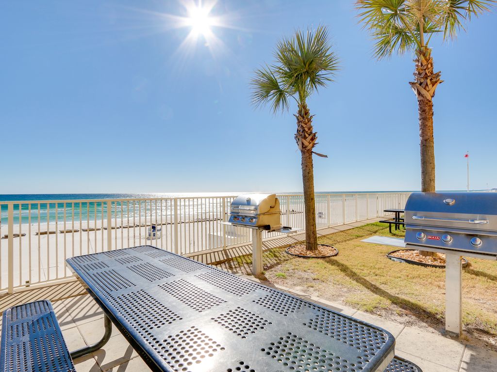 This Tropic Winds Condo is located directly on the beach and has 3 Bedrooms & 3 Full Bathrooms, Located on the 6th floor the condo has Beachfront views that you just dream of. The very oversized, 10' x 28' balcony is amazing!! Just minutes from the new Northwest Florida Beaches International Airport. We are located less than 2 miles west of Pier Park on the quiet west end of the beach. It is a perfect retreat whether your looking for family time, a fun filled vacation, a relaxing quiet time or a romantic getaway.