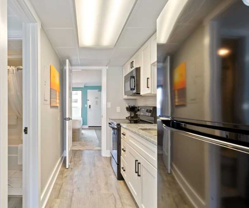 Guests enjoy complimentary Wi-Fi, basic resort cable, and free parking, all within a beautifully renovated space that blends luxury, comfort, and unforgettable coastal flair.