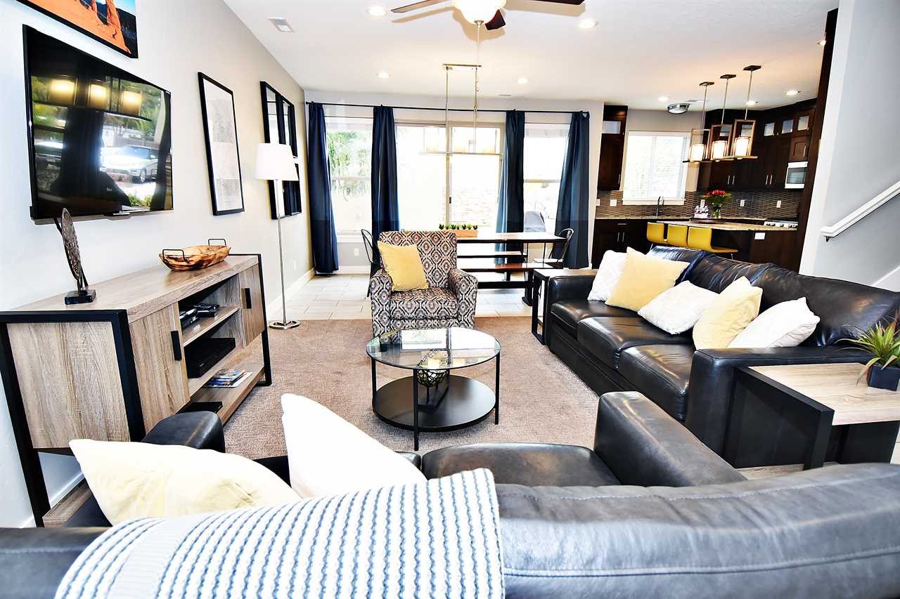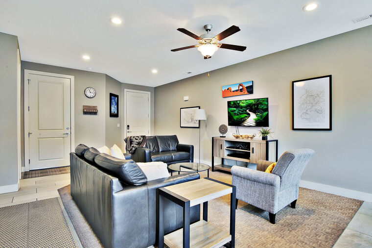 Outside, you're surrounded by landscaped grounds and a great view of surrounding Moab with access to the community pool and spa. These Moab UT vacation rentals are just a few blocks from downtown, and a short drive to various indoor and outdoor activities, including Arches National Park, Canyonlands National Park, and Dead Horse State Park, allowing you to experience the ultimate vacation in Moab.