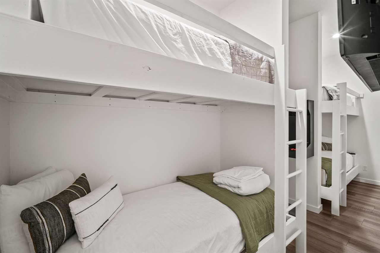 ✦ ✦ Bedroom 4 (Upper Level): Two twin-over-twin bunk beds, arcade game, hall bath access