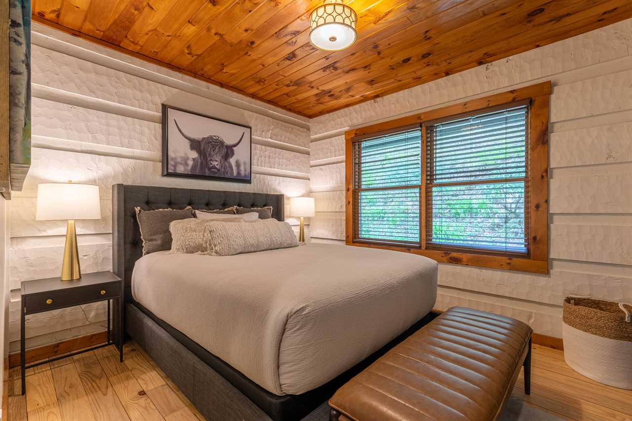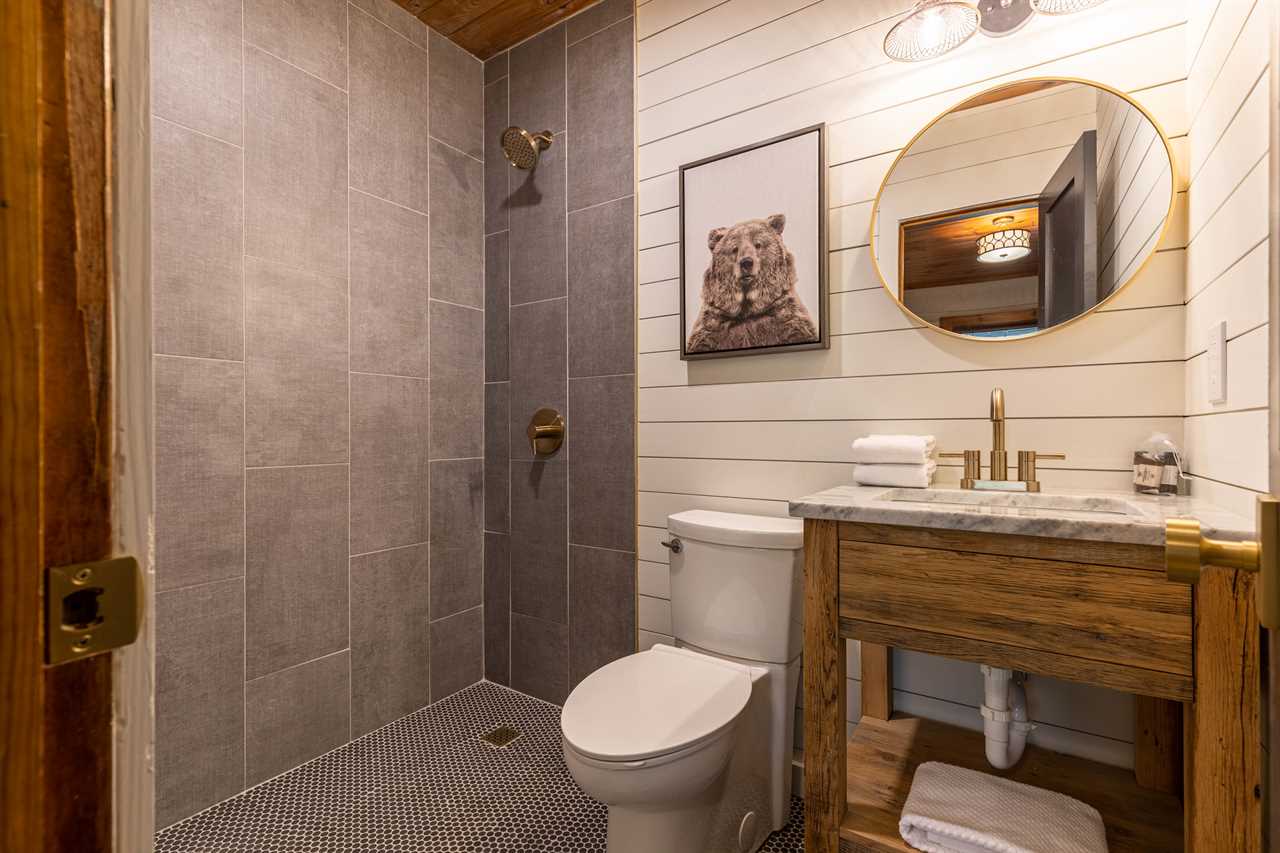 Time for bed? River Run Cabin offers two beautiful bedrooms, one on the main floor and one on the upper level, both with a Queen bed. There's also a loft upstairs with a full bed and single twin bed. The sleeping area on the main floor has an ensuite private bath with shower, and upstairs the loft and Queen bedroom share a full bath with tub/shower.