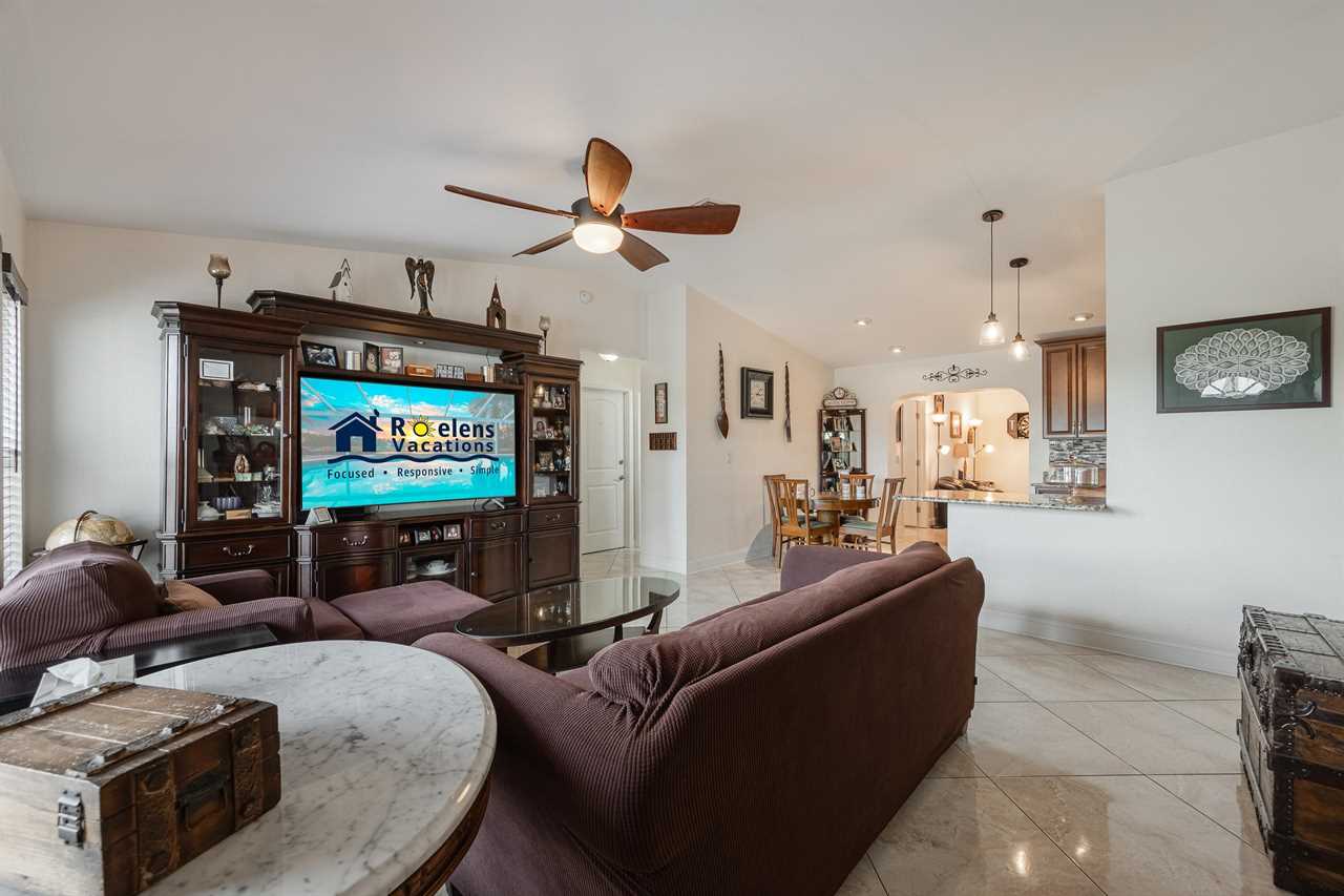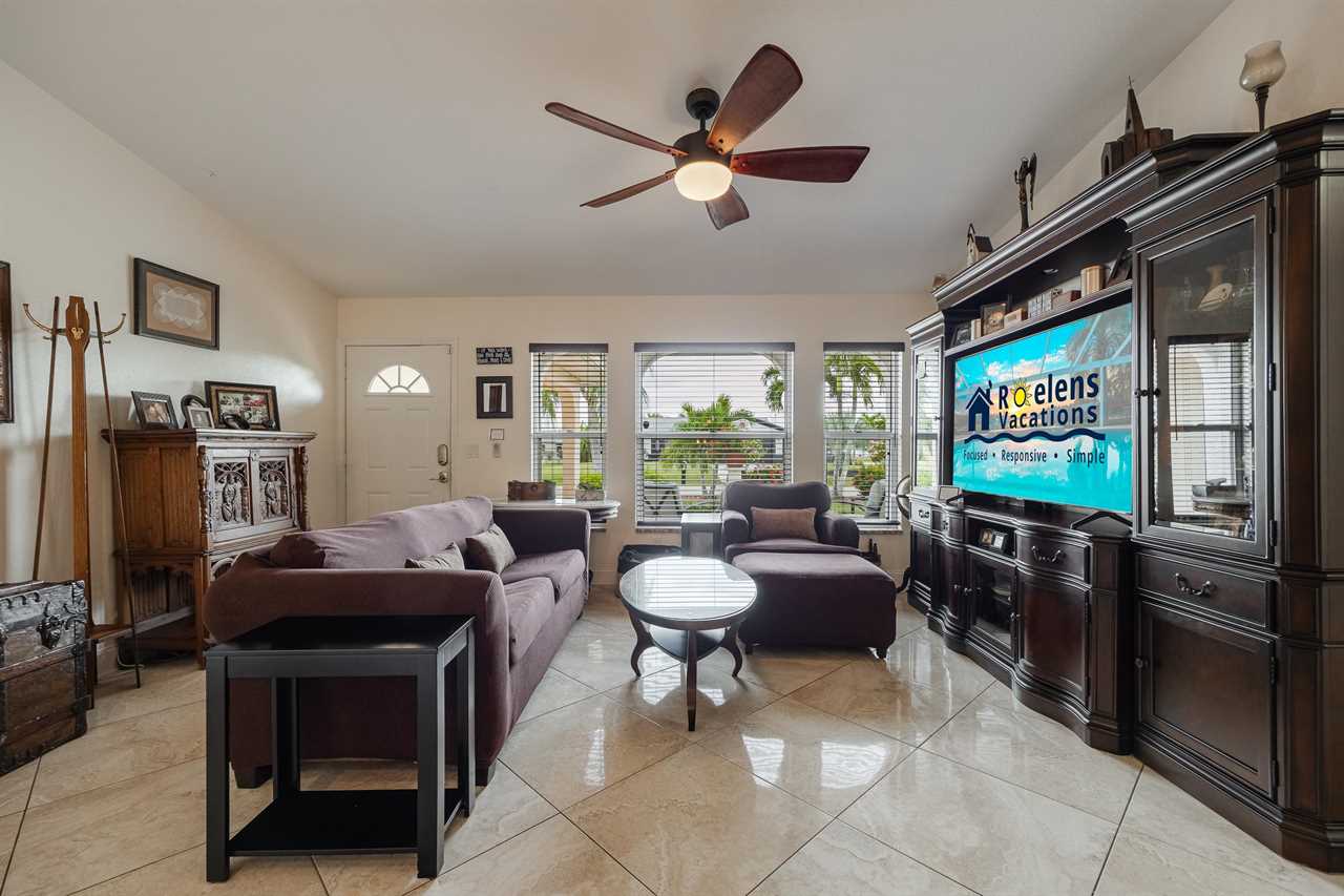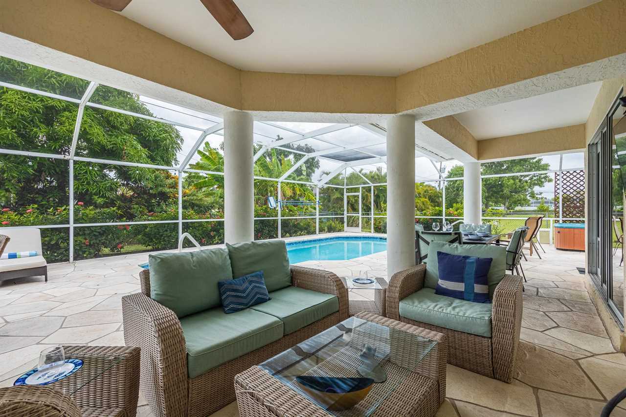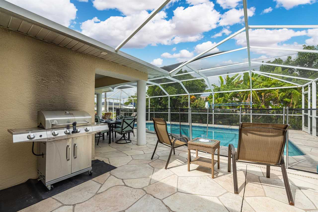 If you have not completely fallen for this villa yet, there is more. The outdoor entertainment area is amazing! With large flat screen TV, 3 separate outdoor seating areas, and features dog doors to the fenced backyard. This Villa is perfect for you and your pets! Looking for more? Serenity NOW is located in a prime SE Cape Coral neighborhood. So, whether you want to wander along a sandy hiking trail on the many local beaches, take a relaxing boating excursion, go on a sightseeing adventure or just enjoy a fine dining experience – Villa Serenity NOW is the perfect villa for you! This Villa does NOT offer garage access.