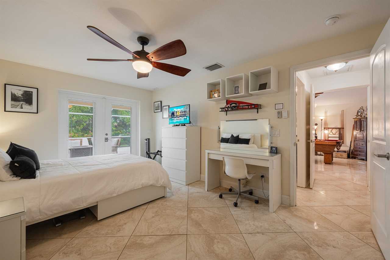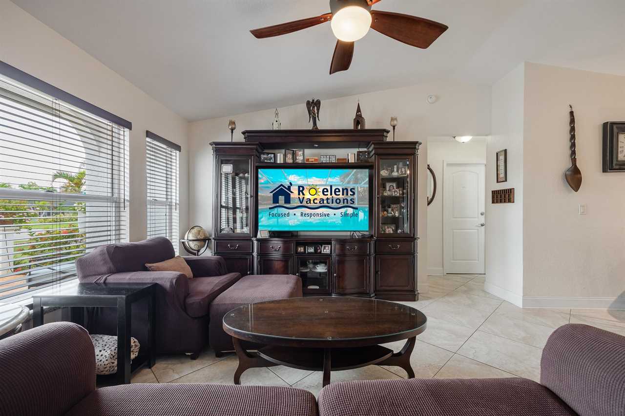 There are TWO master suites! The first master bedroom with queen-size, adjustable-based bed and gorgeous en-suite will have you immersed in relaxation night after night. Being its own spacious retreat, this bedroom offers amazing natural lighting, French doors out to your luxury hot tub, and a separate makeup vanity. The en-suite is stunning with tile throughout and large tiled walk in shower. The second master suite is located at the back of the Villa and has direct access to the pool area with a Queen-size bed. The guest room offers a full-size tempur pedic topped bed and a make up vanity. Decorated in cool tones and tons of natural lighting, these rooms are perfect for your loved ones! The guest room is just as spacious as the master suites with flat screen TVs. Looking for more family time? Relax and enjoy the large TV in the striking living room, with an open floor plan leading to the kitchen and dining area. This room also features a large sleeper sofa. Or use any of your devices with the free WiFi throughout.