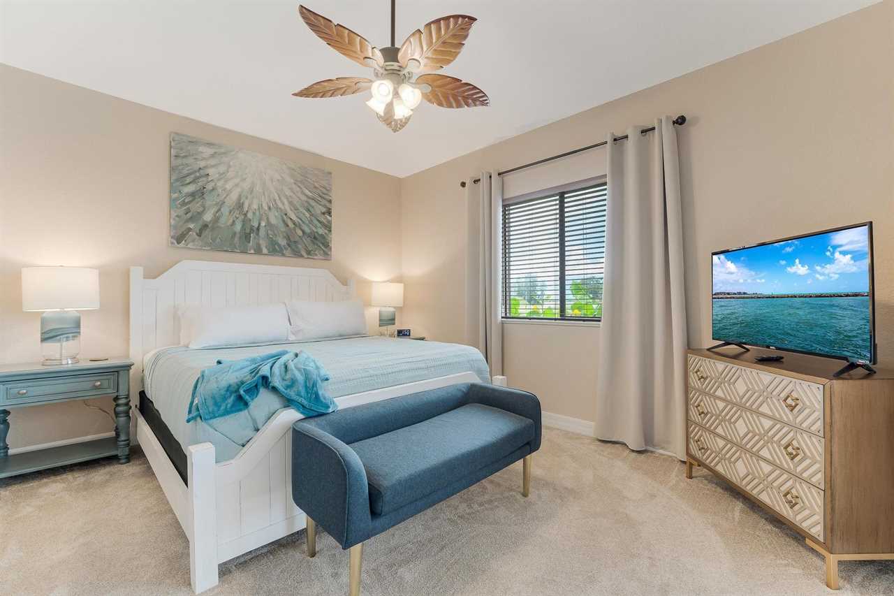 Master Suite: King bed, Smart TV, direct lanai access, ensuite bathroom