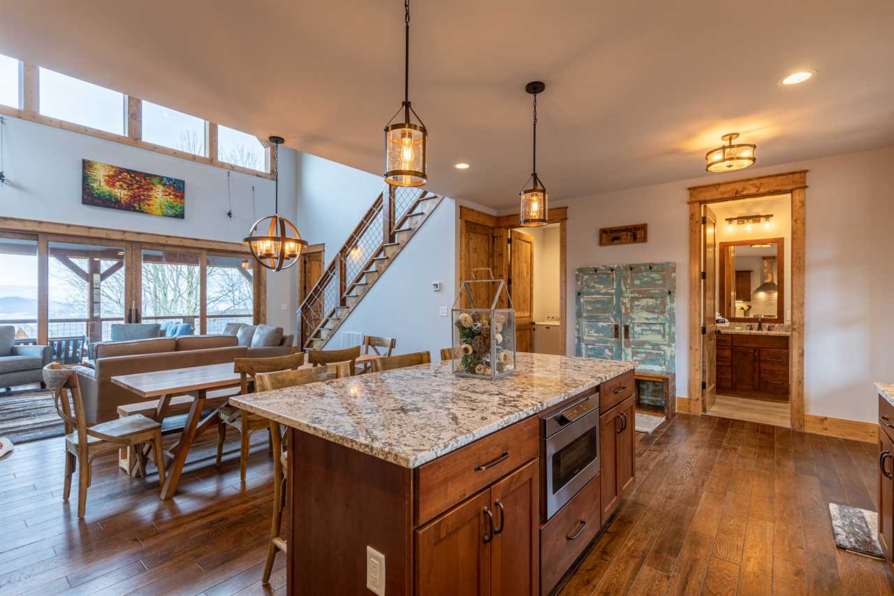 Time for bed? Pick out a book from the in-house lending library and cozy up in one of the 3 bedrooms. The main level has a King suite with private bath with a tiled shower and there's another full bath with tub/shower off the kitchen. Upstairs is a loft with a queen sized sleeper sofa as well as a King bedroom and a third bedroom with two sets of built in twin bunk beds, and a third full bathroom is between them with tub/shower. Each of the King bedrooms have their own SmartTV, and there's a TV in the loft as well.