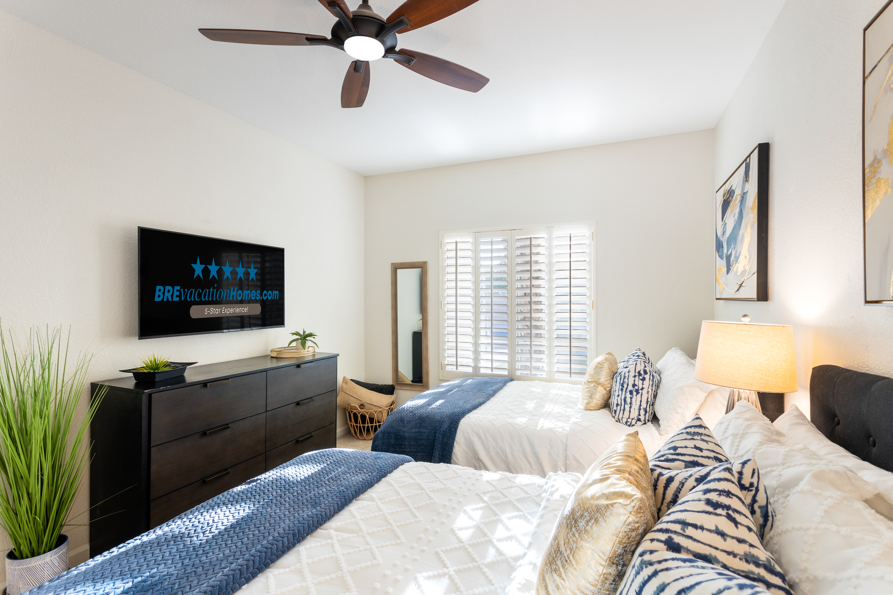 - Bedroom 3 (Sleeps 4): Two Queen Beds, 1 large dresser, 2 night stands, 50" Smart TV