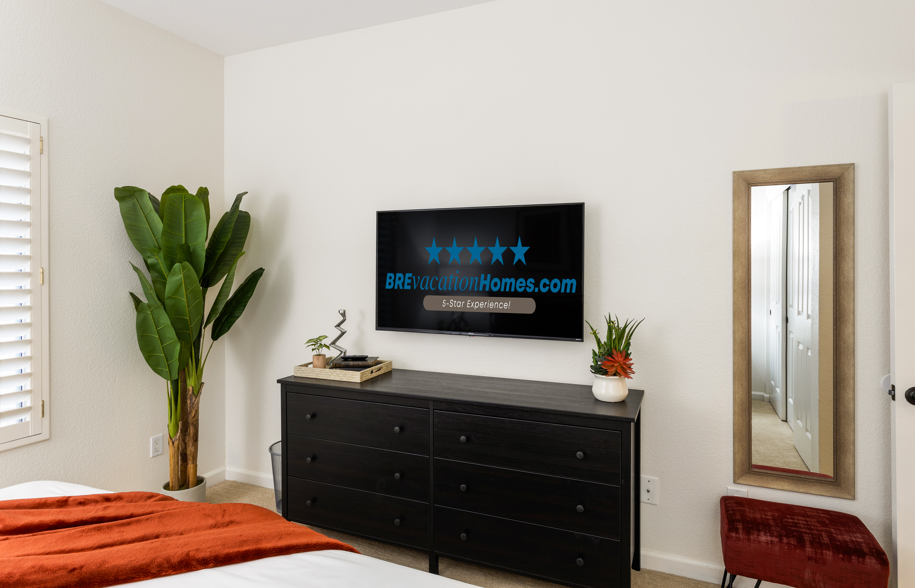 - Primary Bedroom (Sleeps 2): One King Size Bed, 2 dressers, 2 night stands, 65" Smart TV