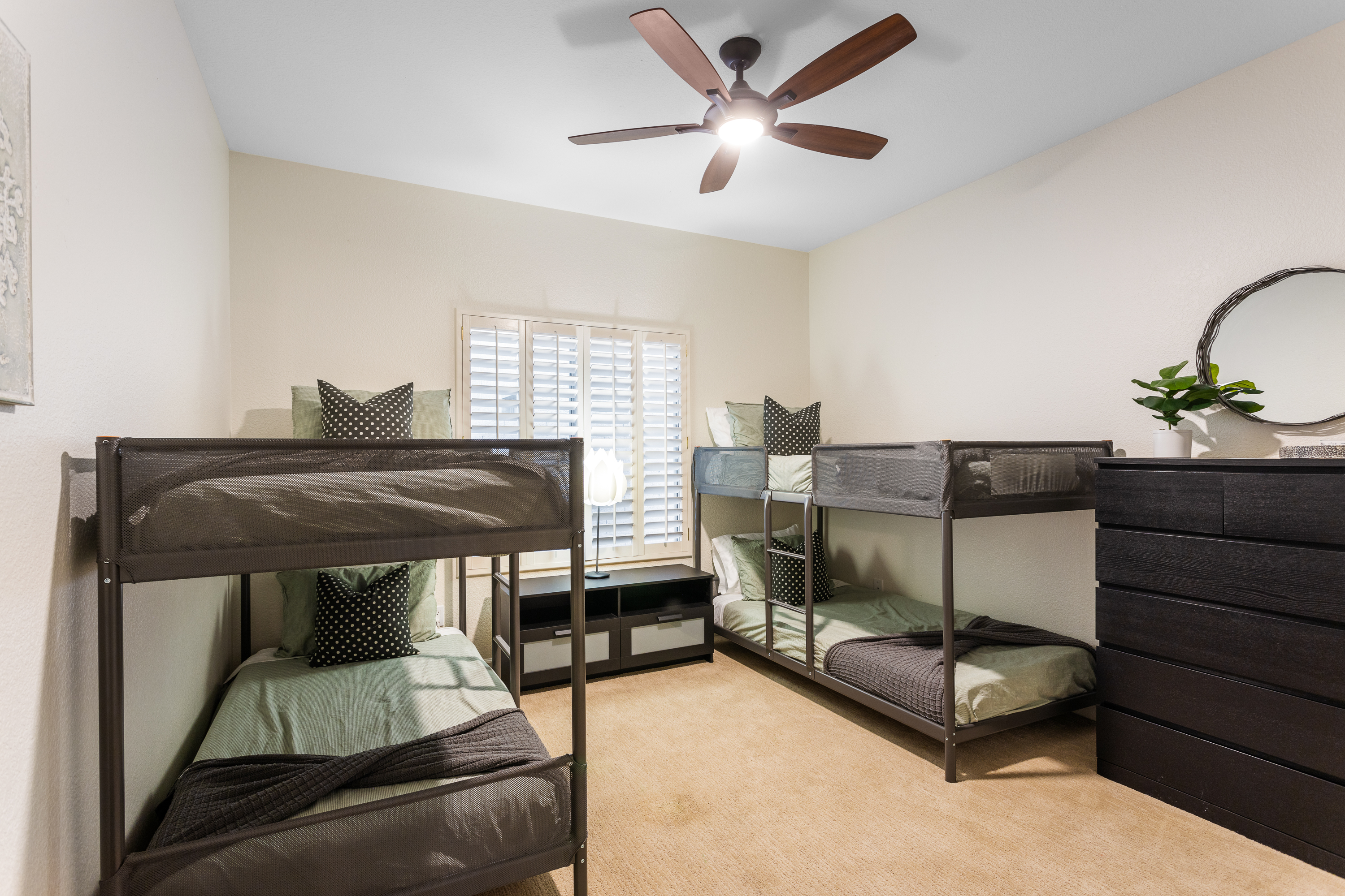 - Bedroom 4 (Sleeps 4): Two Twin over Twin Bunk Beds (new mattresses) + 1 dresser + night stand