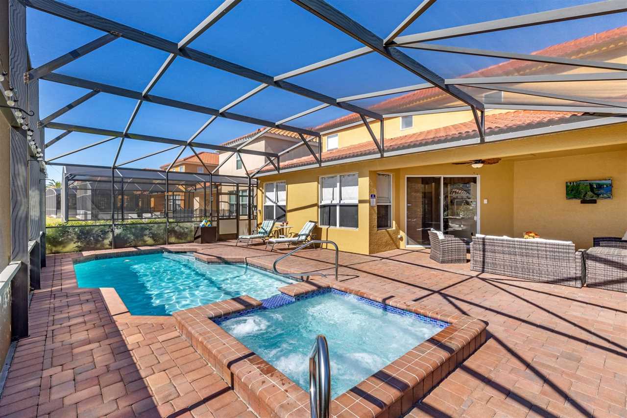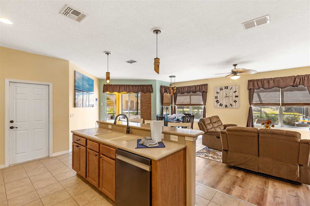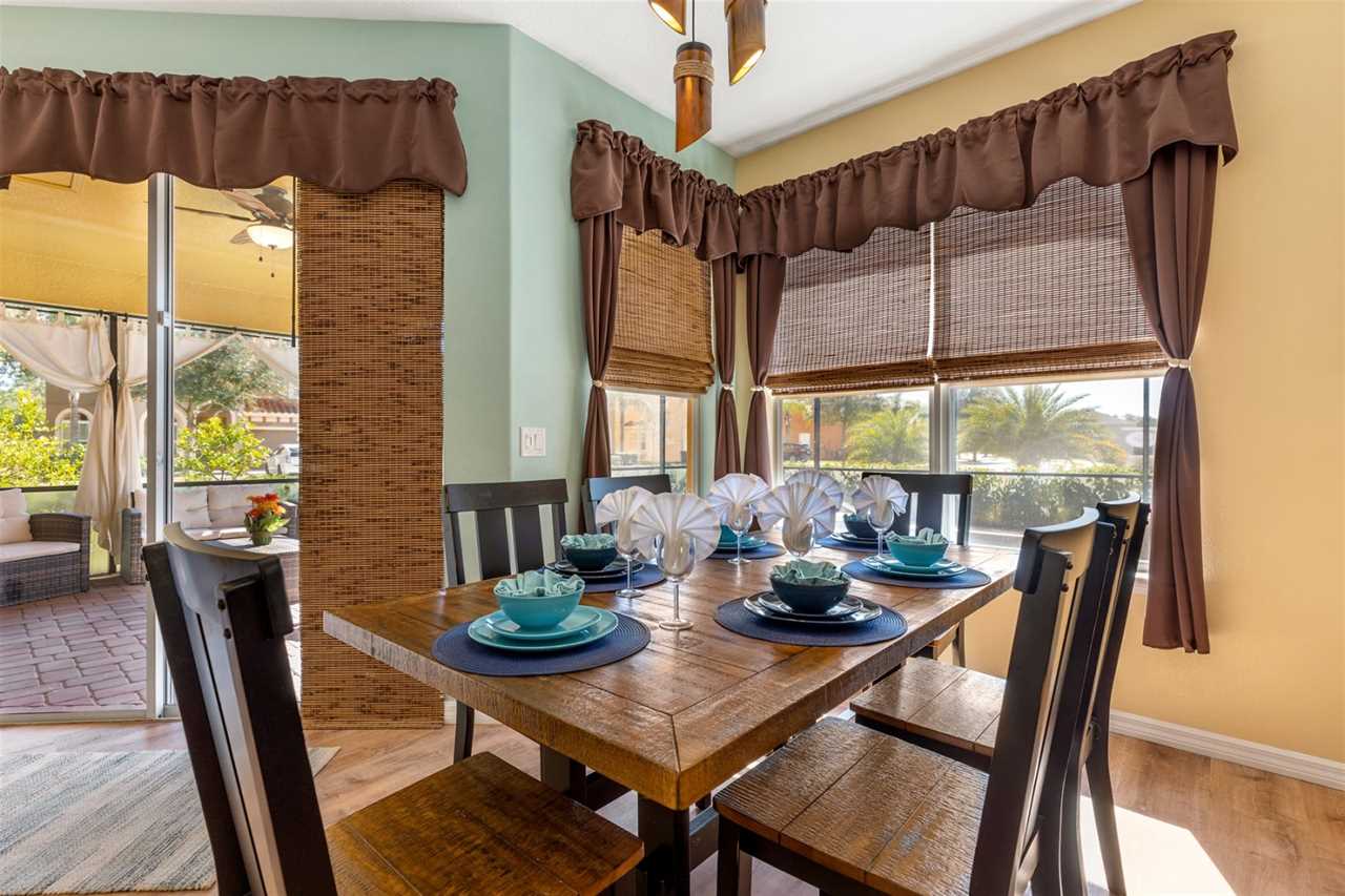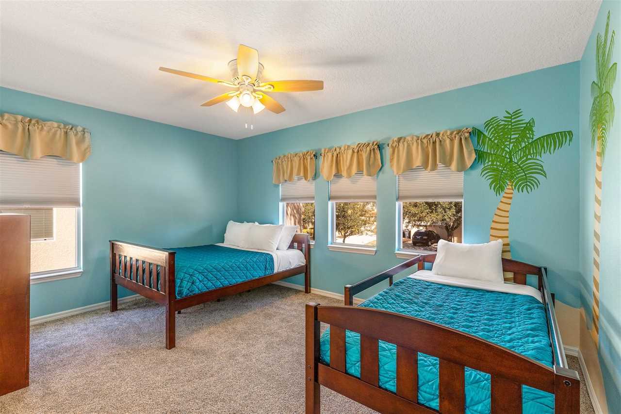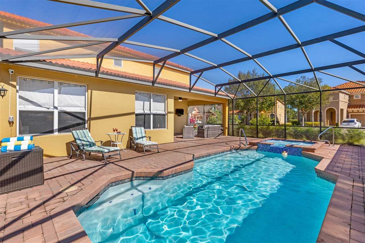 Beautifully maintained family oriented 4 bedroom, 4 bath home located in the fabulous resort style gated community of Watersong. This home away from home is perfect for rest and relaxation. Situated on a corner lot with no rear neighbors, overlooking a conservation area. Beautifully paved lanai with smart tv and enclosed heated pool and spa are just where you want to be! This up to date home features 4 bedrooms with 4 en-suite bathrooms. First floor bedroom features Queen bed and TV. 3 additional bedrooms on 2nd floor: Queen with TV, full and twin with tv , pyramid bunk with full and twin in final bedroom. A loveseat has also been added to the upstairs queen for additional seating. This home features all the luxuries of home to include fully equipped kitchen, washer and dryer. Family board games, air hockey table, Golden Tee golf, pool toys, pack and play, stroller and high chair. Easy highway access and close to Orlando, this property is sure to suit all your needs.