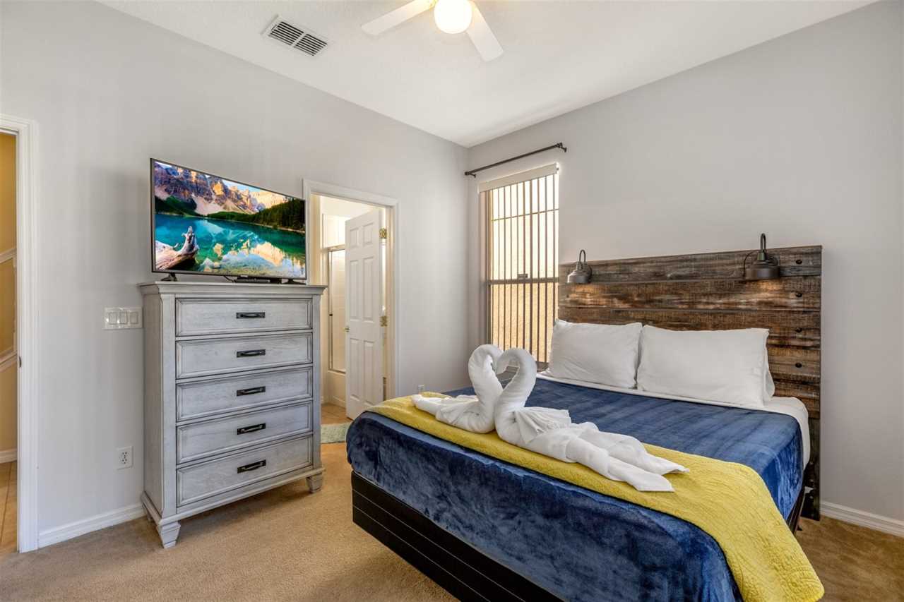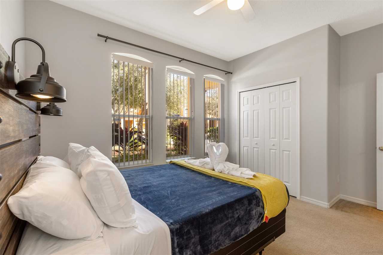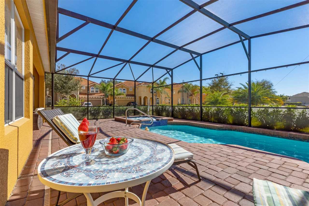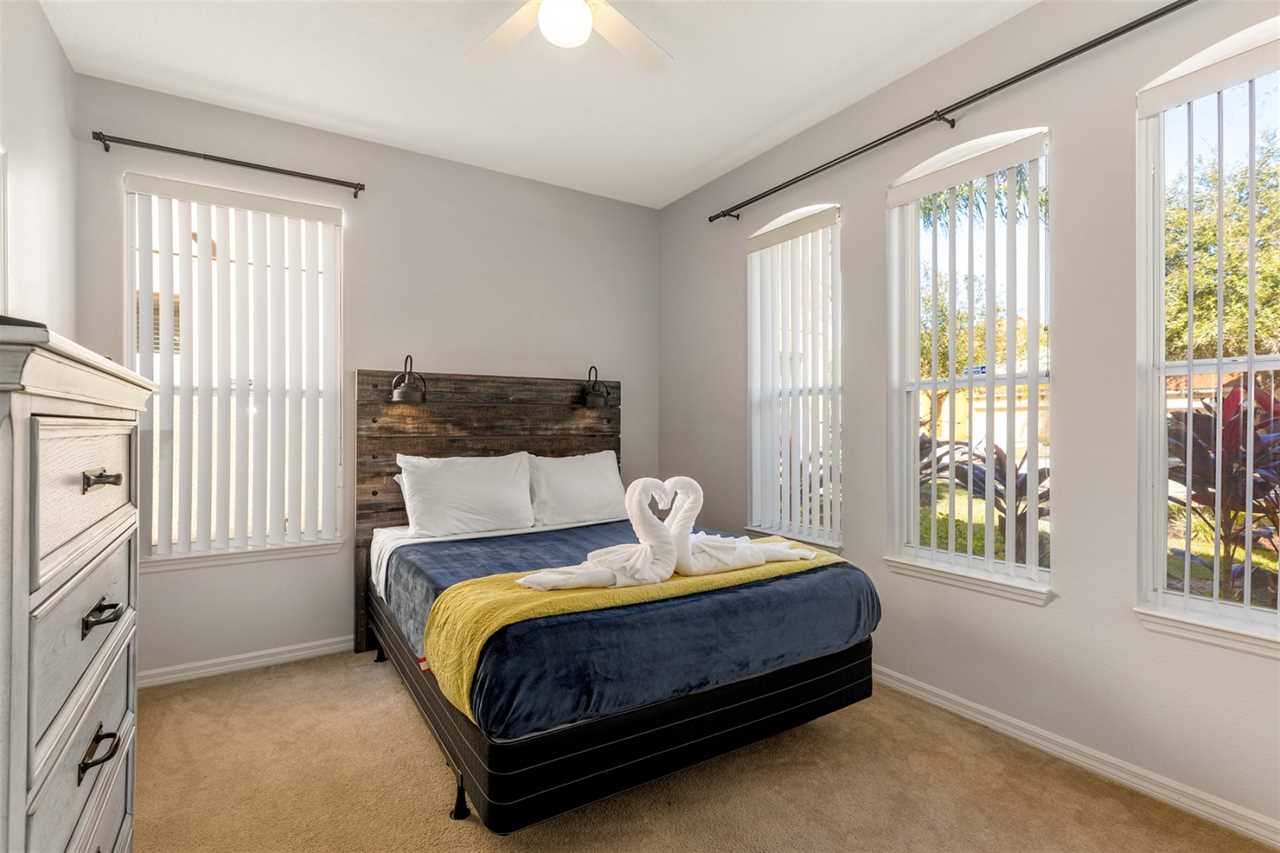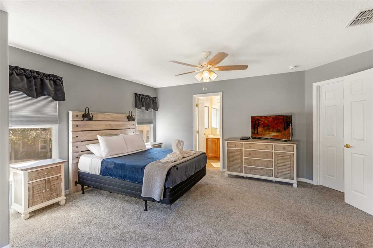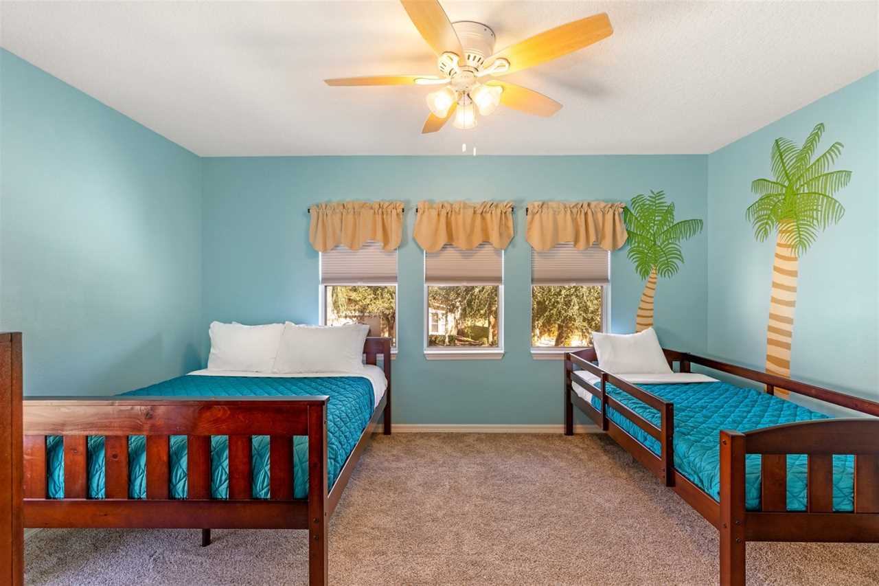Beautifully maintained family oriented 4 bedroom, 4 bath home located in the fabulous resort style gated community of Watersong. This home away from home is perfect for rest and relaxation. Situated on a corner lot with no rear neighbors, overlooking a conservation area. Beautifully paved lanai with smart tv and enclosed heated pool and spa are just where you want to be! This up to date home features 4 bedrooms with 4 en-suite bathrooms. First floor bedroom features Queen bed and TV. 3 additional bedrooms on 2nd floor: Queen with TV, full and twin with tv , pyramid bunk with full and twin in final bedroom. A loveseat has also been added to the upstairs queen for additional seating. This home features all the luxuries of home to include fully equipped kitchen, washer and dryer. Family board games, air hockey table, Golden Tee golf, pool toys, pack and play, stroller and high chair. Easy highway access and close to Orlando, this property is sure to suit all your needs.