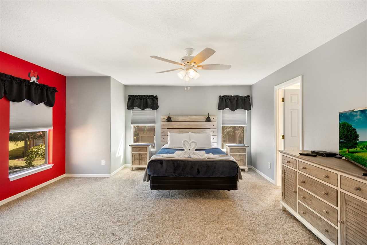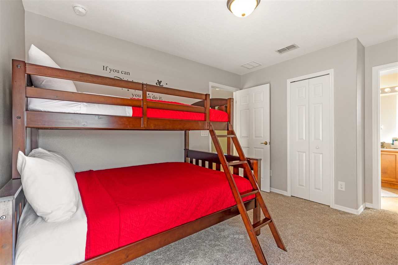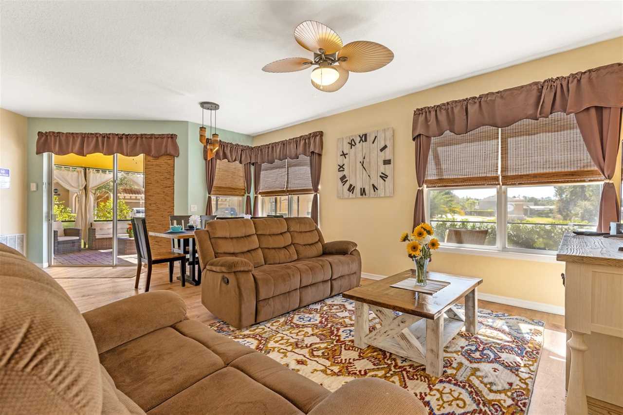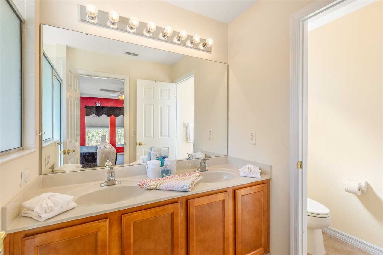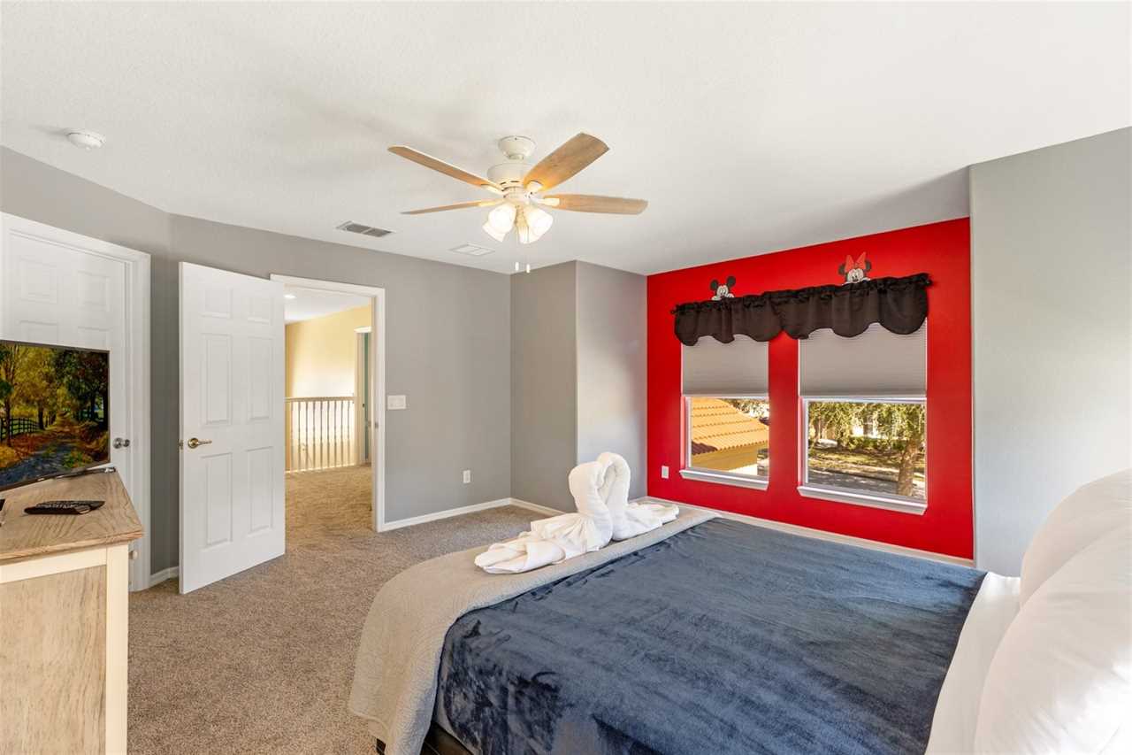 Beautifully maintained family oriented 4 bedroom, 4 bath home located in the fabulous resort style gated community of Watersong. This home away from home is perfect for rest and relaxation. Situated on a corner lot with no rear neighbors, overlooking a conservation area. Beautifully paved lanai with smart tv and enclosed heated pool and spa are just where you want to be! This up to date home features 4 bedrooms with 4 en-suite bathrooms. First floor bedroom features Queen bed and TV. 3 additional bedrooms on 2nd floor: Queen with TV, full and twin with tv , pyramid bunk with full and twin in final bedroom. A loveseat has also been added to the upstairs queen for additional seating. This home features all the luxuries of home to include fully equipped kitchen, washer and dryer. Family board games, air hockey table, Golden Tee golf, pool toys, pack and play, stroller and high chair. Easy highway access and close to Orlando, this property is sure to suit all your needs.