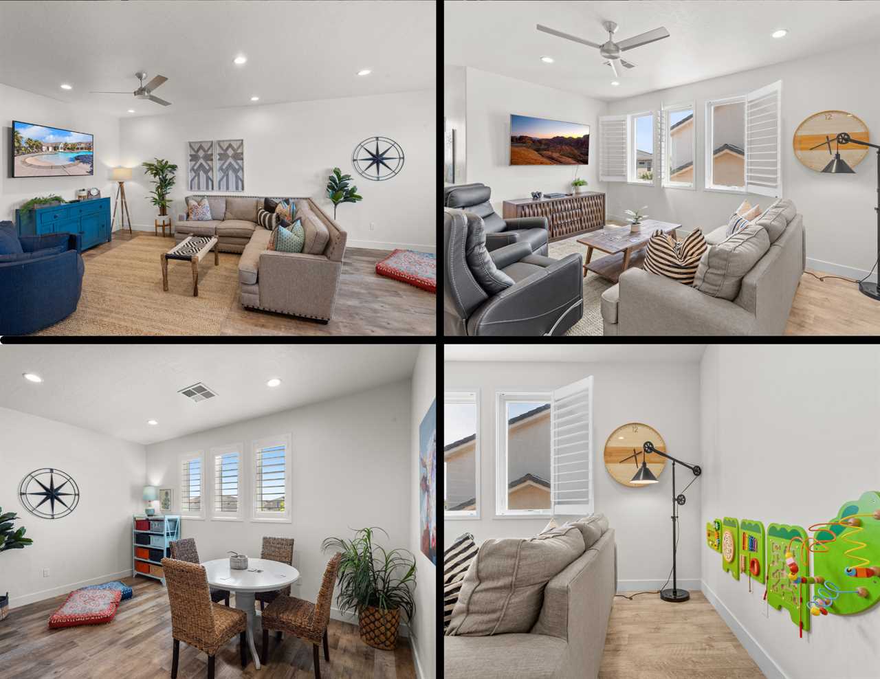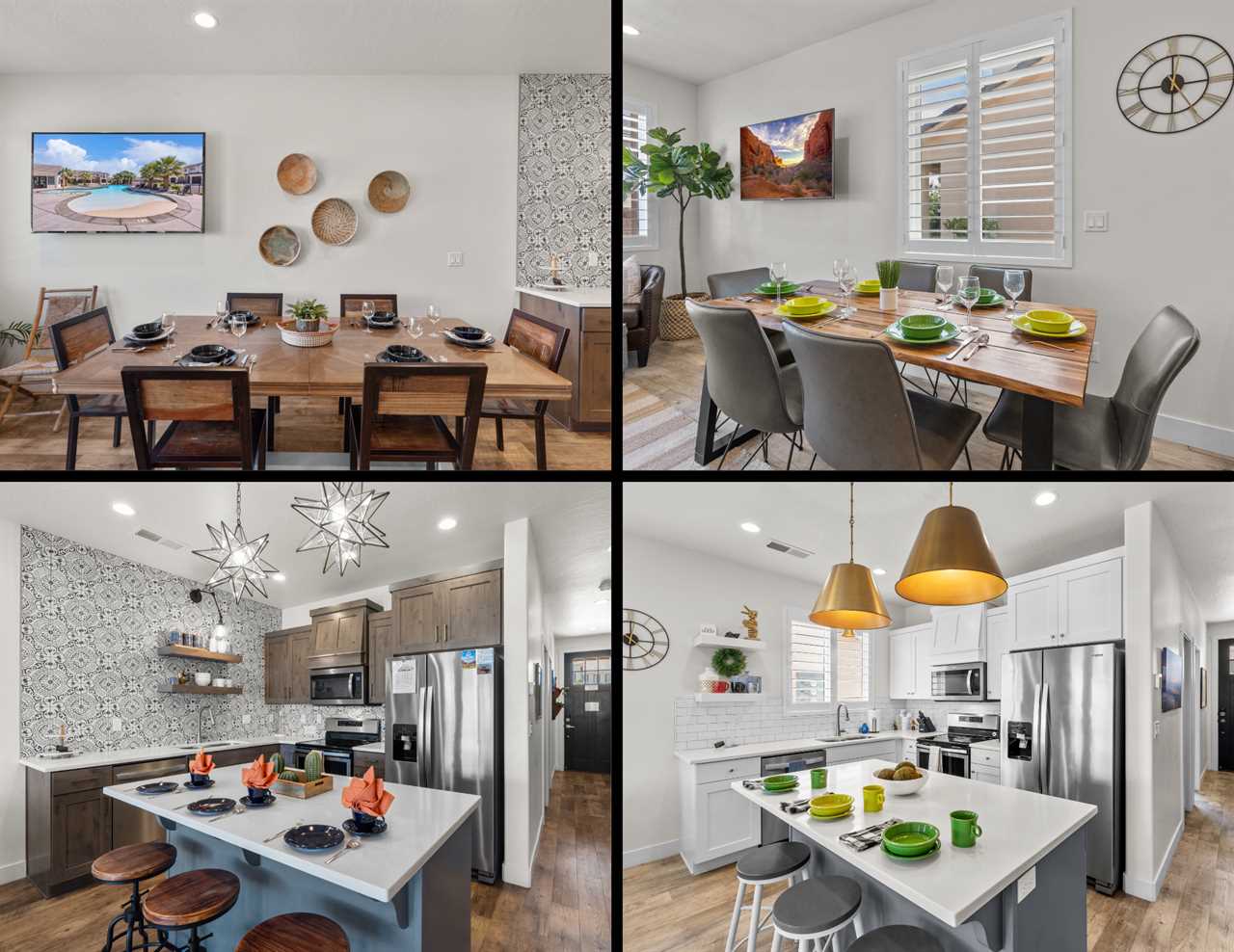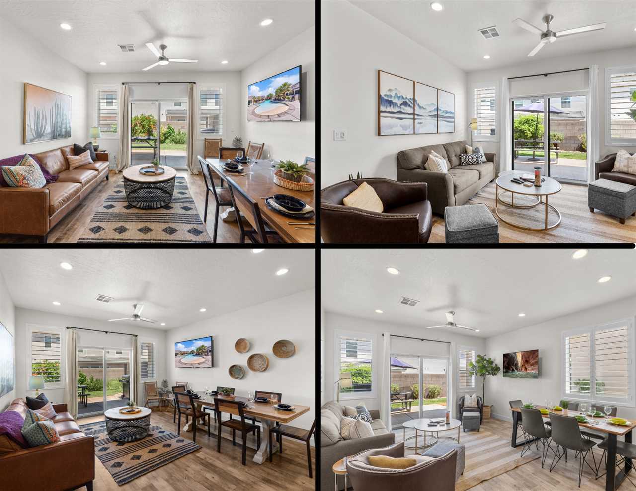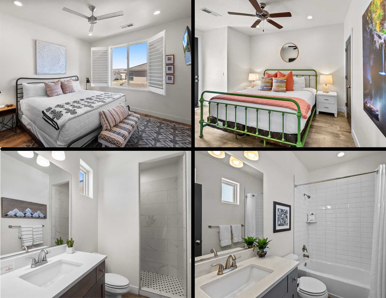 With four bedrooms and four bathrooms, high-end bedding, a private backyard patio equipped with a BBQ grill, and dining space for 11 people, this home will not disappoint. Perfect for birthdays, family gatherings, reunions, and other get-togethers, this house has room for everyone and is kid-friendly. Completely furnished and stocked, we've thought through the small details, so you can enjoy your stay worry-free. This property is located in the Freedom Village Community and includes access to the clubhouse, pool, spa, gym, and more. We are conveniently located in the St. George area, with many restaurants, golf courses, spas, museums, theaters, and shopping centers nearby. Just minutes away from hundreds of picturesque hikes, we are in the perfect location for an active vacation or for unwinding and relaxation. Visit the historic downtown in St. George, one of the many nearby golf courses, or one of the four state parks surrounding us. The nearby state parks include Sand Hollow State Park, Quail Creek State Park, Snow Canyon State Park, and Gunlock State Park. Conveniently located off a major road, we are the gateway to multiple national parks. While here, visit Zion National Park, Bryce Canyon National Park, and the Grand Canyon National Park. With such a favorable location, this home is the ideal vacation spot.