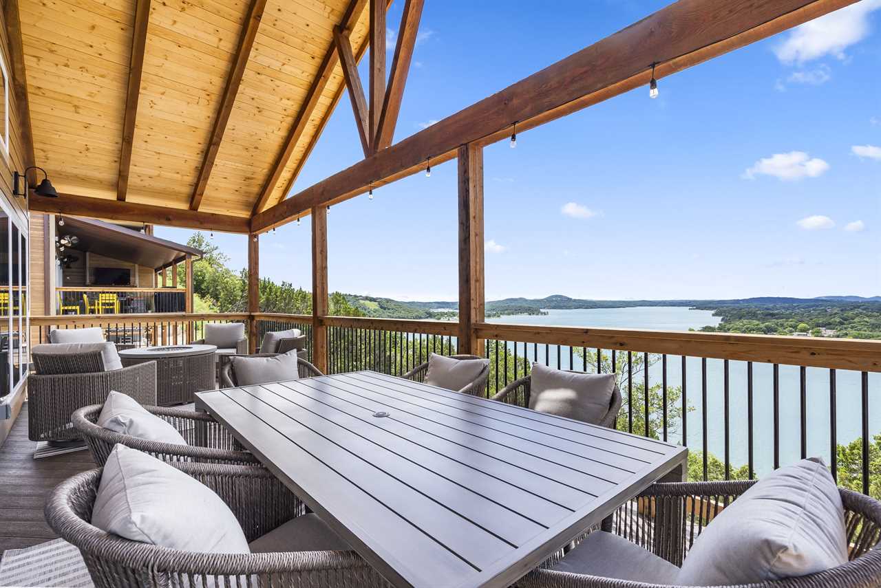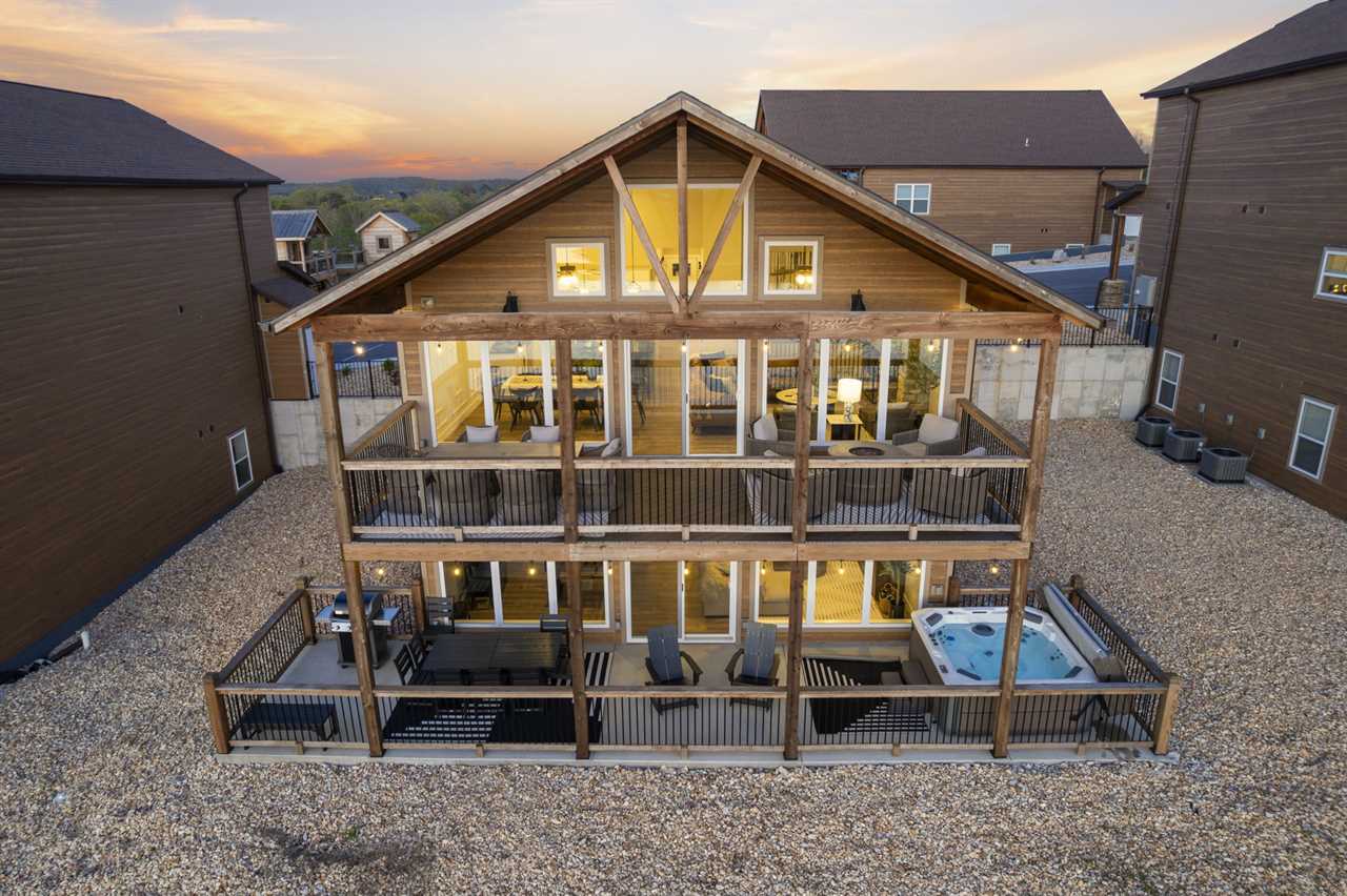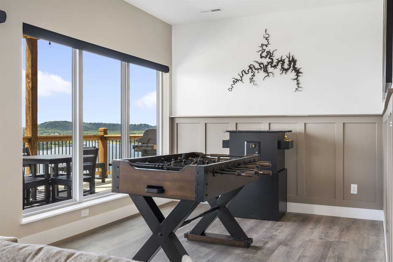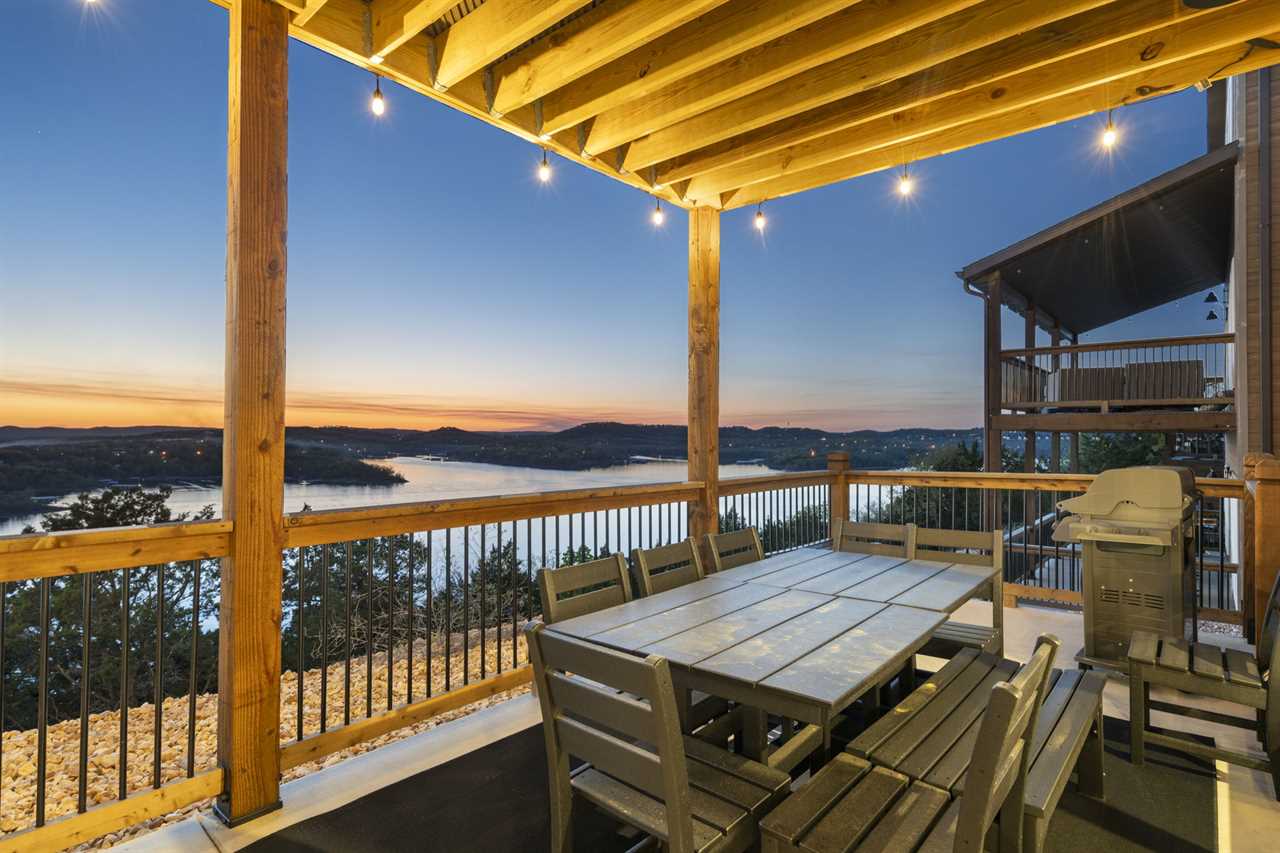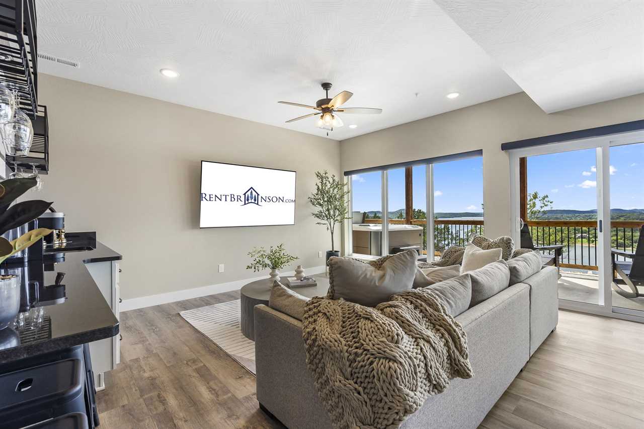 The home has been carefully designed to take advantage of the breathtaking lake view, with large windows throughout the open-concept living areas that provide stunning views of the water. You can enjoy the beautiful scenery while cooking in the well-appointed kitchen, which features high-end appliances, custom cabinetry, and ample counter space for preparing delicious meals. One of the highlights of Sunset Salut is the large deck spaces, perfect for relaxing and soaking in the natural beauty of the surrounding area. Imagine sipping your morning coffee with the lake view as your backdrop, or pouring a glass of wine from your wet bar to enjoy with loved ones as the sun sets over the water. Downstairs, you will have an additional living area with a large flat-screen TV and sectional, making it an ideal spot to stream your favorite shows or movies. Sunset Salut is an ideal vacation destination for families, groups of friends, and anyone seeking a luxurious and comfortable stay.