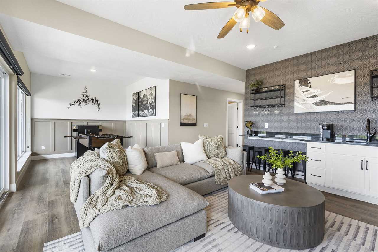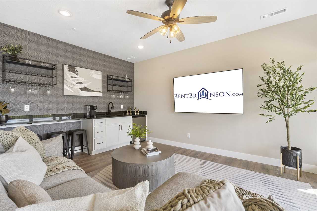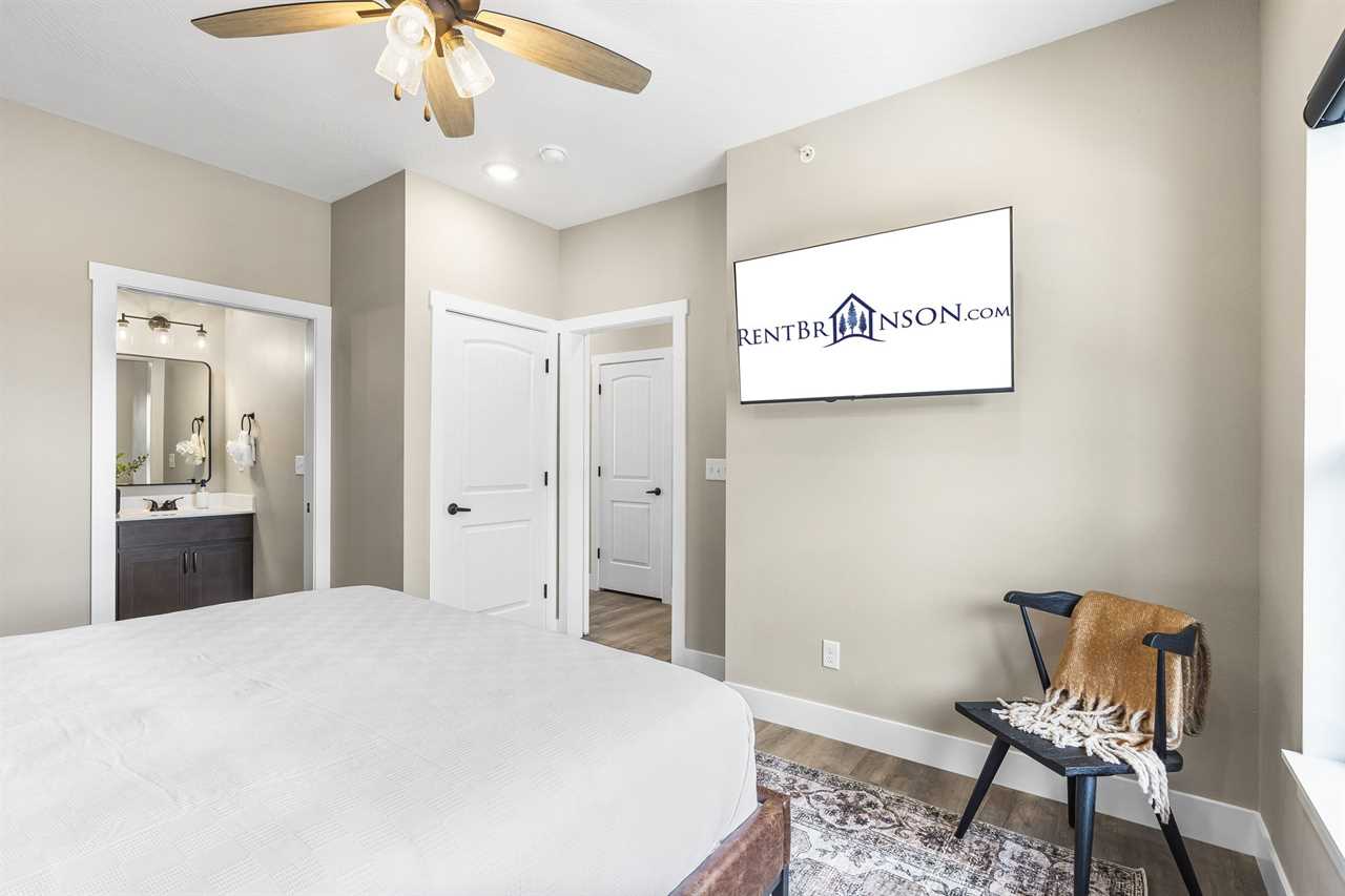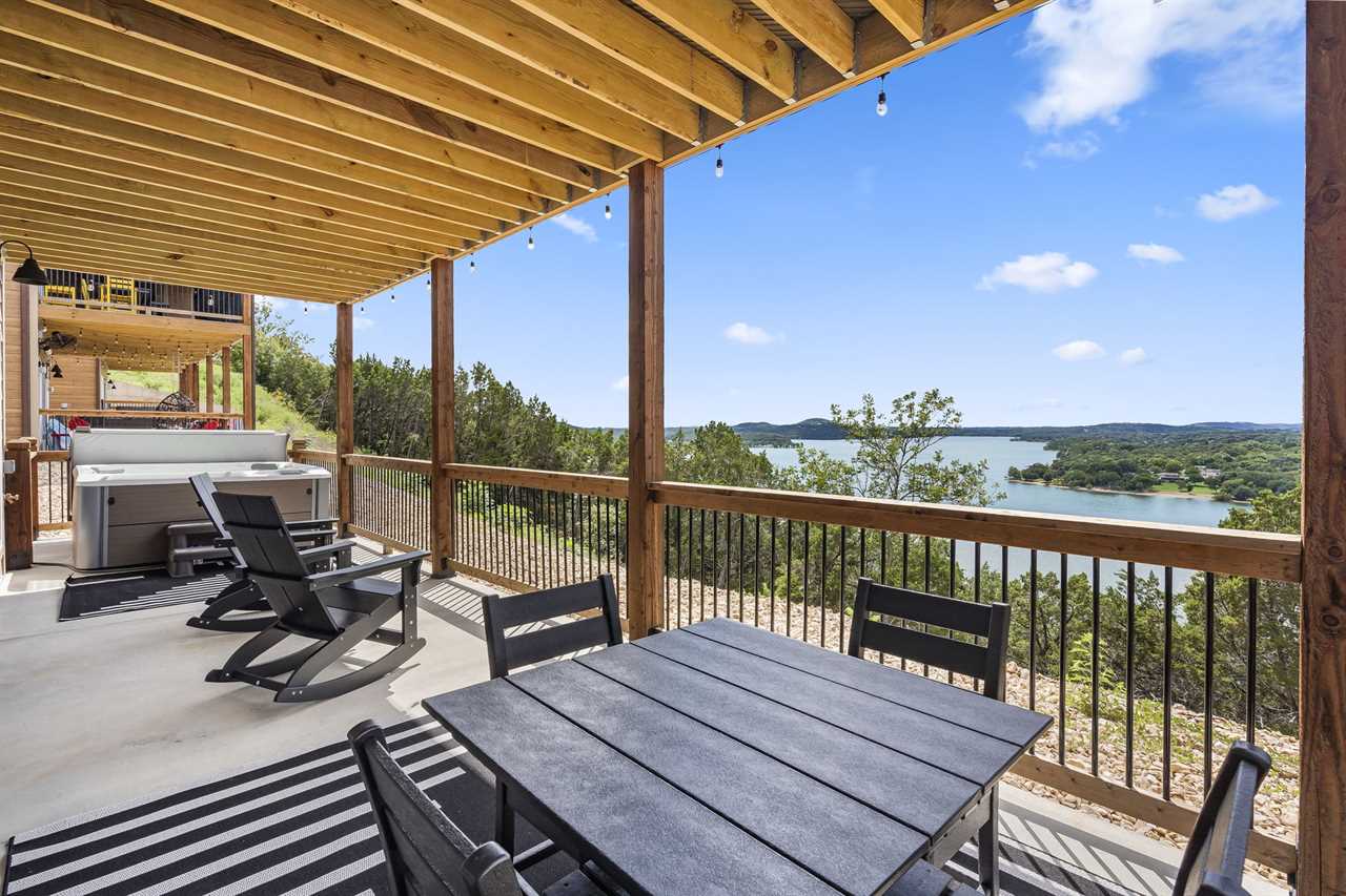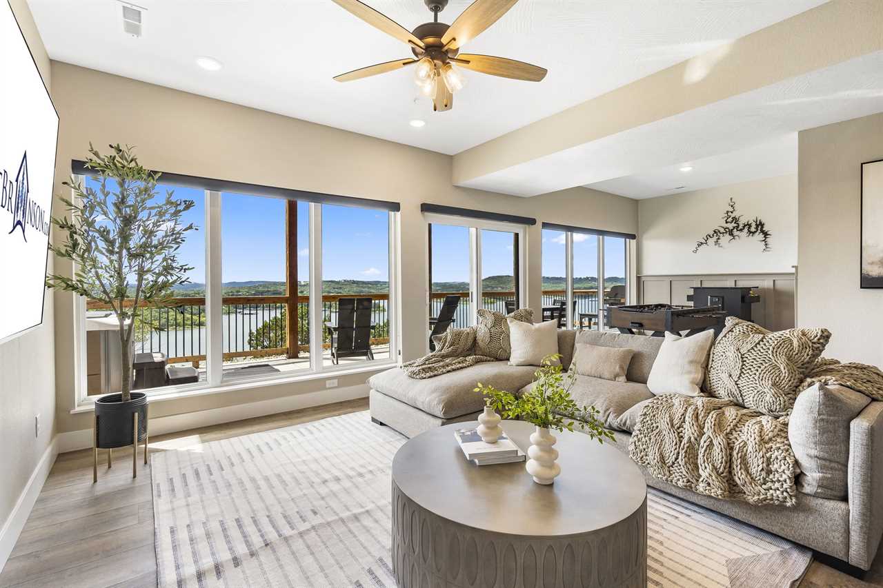 The home has been carefully designed to take advantage of the breathtaking lake view, with large windows throughout the open-concept living areas that provide stunning views of the water. You can enjoy the beautiful scenery while cooking in the well-appointed kitchen, which features high-end appliances, custom cabinetry, and ample counter space for preparing delicious meals. One of the highlights of Sunset Salut is the large deck spaces, perfect for relaxing and soaking in the natural beauty of the surrounding area. Imagine sipping your morning coffee with the lake view as your backdrop, or pouring a glass of wine from your wet bar to enjoy with loved ones as the sun sets over the water. Downstairs, you will have an additional living area with a large flat-screen TV and sectional, making it an ideal spot to stream your favorite shows or movies. Sunset Salut is an ideal vacation destination for families, groups of friends, and anyone seeking a luxurious and comfortable stay.