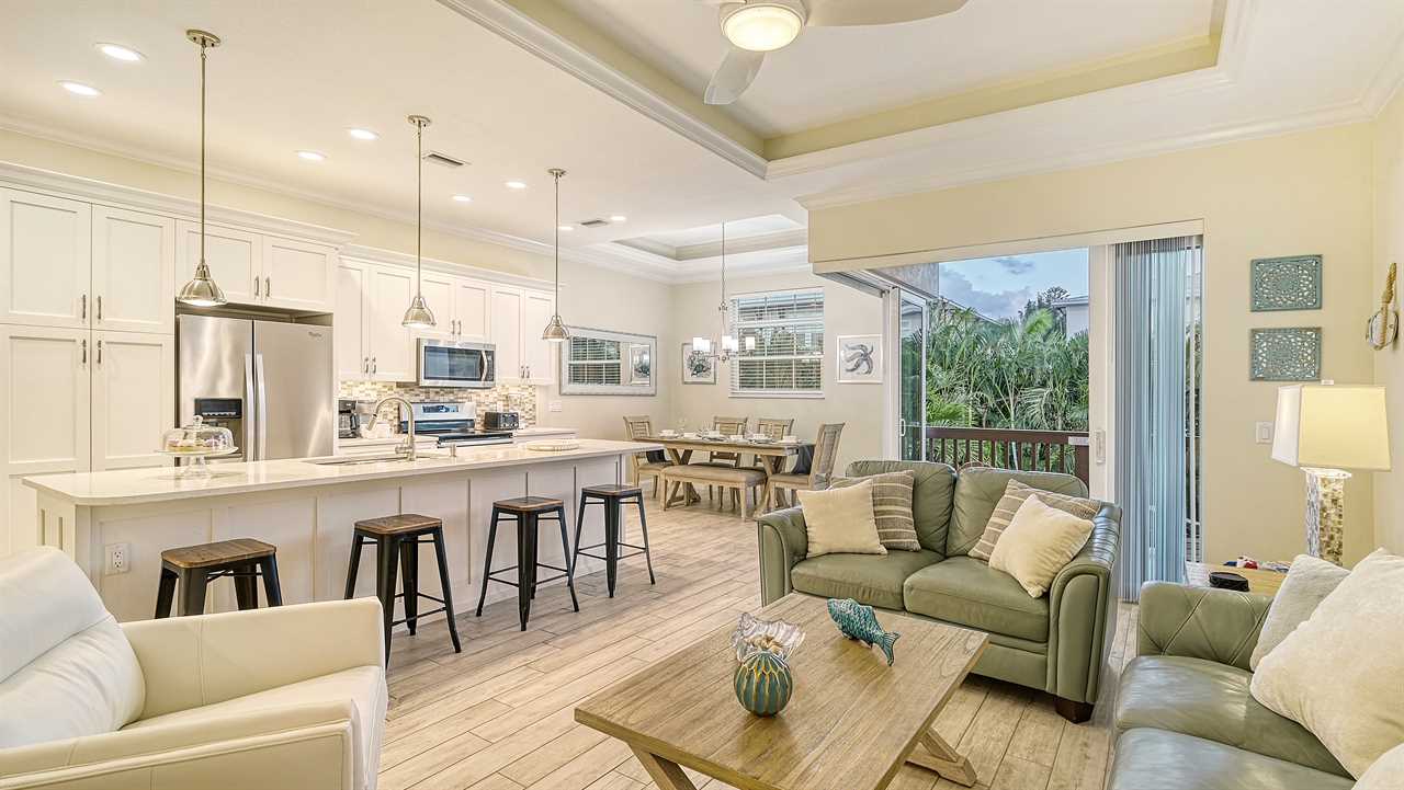 Welcome to Casa Junonia, a gorgeous vacation rental duplex located on the Southern end of Siesta Key. This spacious and airy property is adorned with coastal decor and offers a plentiful amount of natural light, creating a relaxed and welcoming atmosphere.