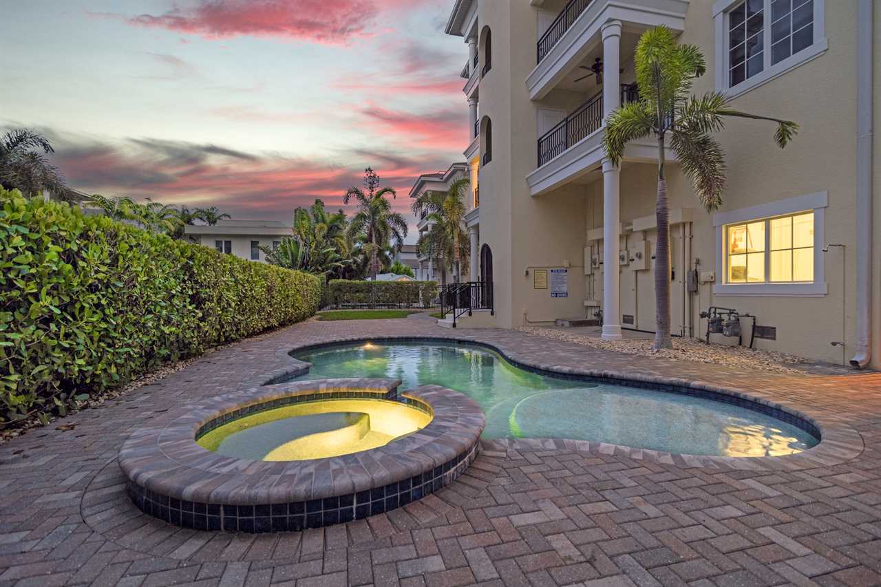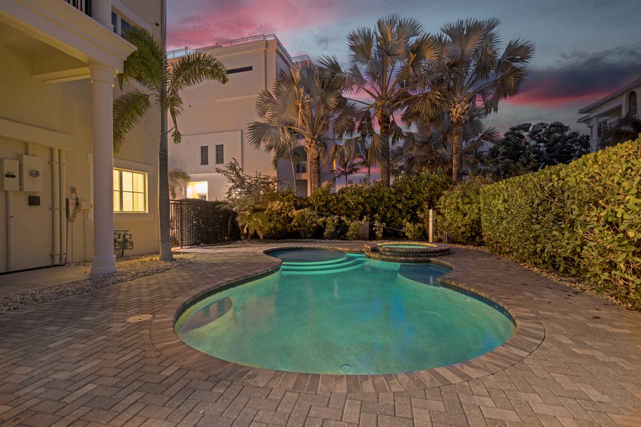 Start your day sipping coffee on one of your private balconies, listening to the gentle rustle of palms. After a leisurely breakfast prepared in your gourmet-grade kitchen, grab the provided beach gear and stroll just two minutes to sink your toes into Siesta Key's renowned quartz sands. Spend your afternoon splashing in the Gulf, building sandcastles, or simply unwinding under the sun. Return to your serene retreat for a refreshing dip in the semi-private heated pool and spa, then fire up the gas grill for an alfresco dinner by the poolside. As evening approaches, take a short walk into Siesta Key Village to explore local boutiques, enjoy fresh seafood at a charming restaurant, or discover live music. End your perfect day back on the balcony, watching the sunset paint the sky with vibrant hues.