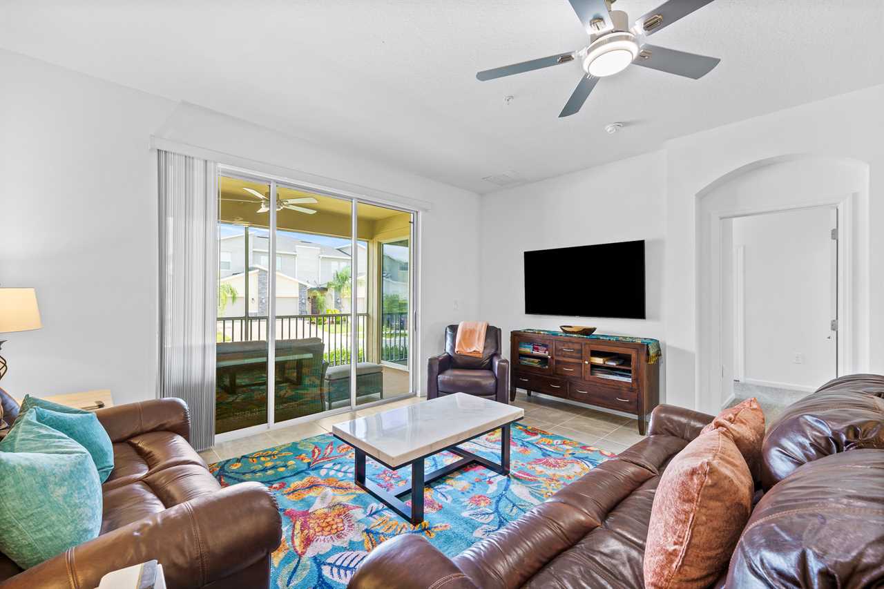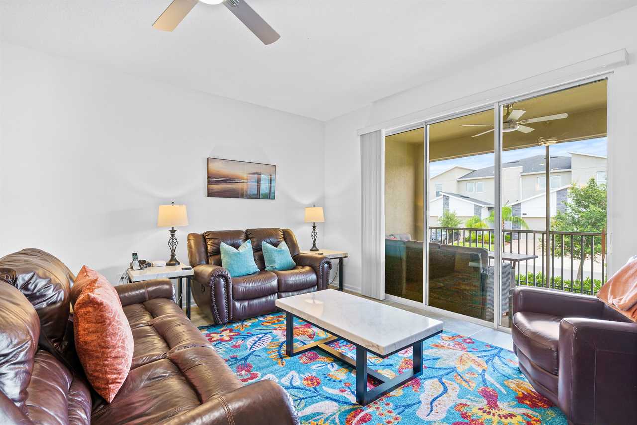 Step outside to the screened-in patio and immerse yourself in outdoor living at its finest. Relax in the comfortable sectional living area, ideal for lounging and enjoying the beautiful Florida weather. A table provides the perfect spot for al fresco dining or enjoying a morning cup of coffee.