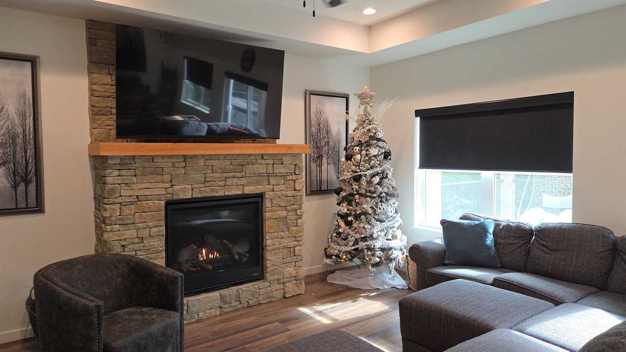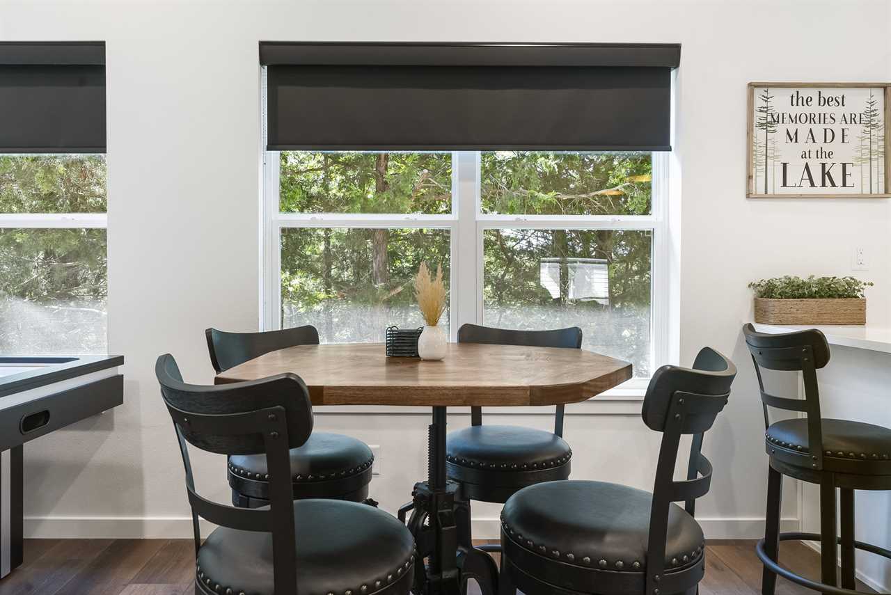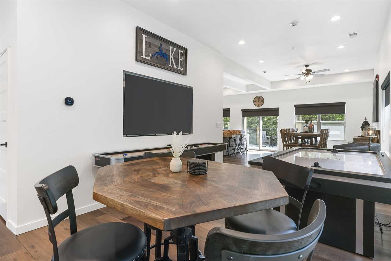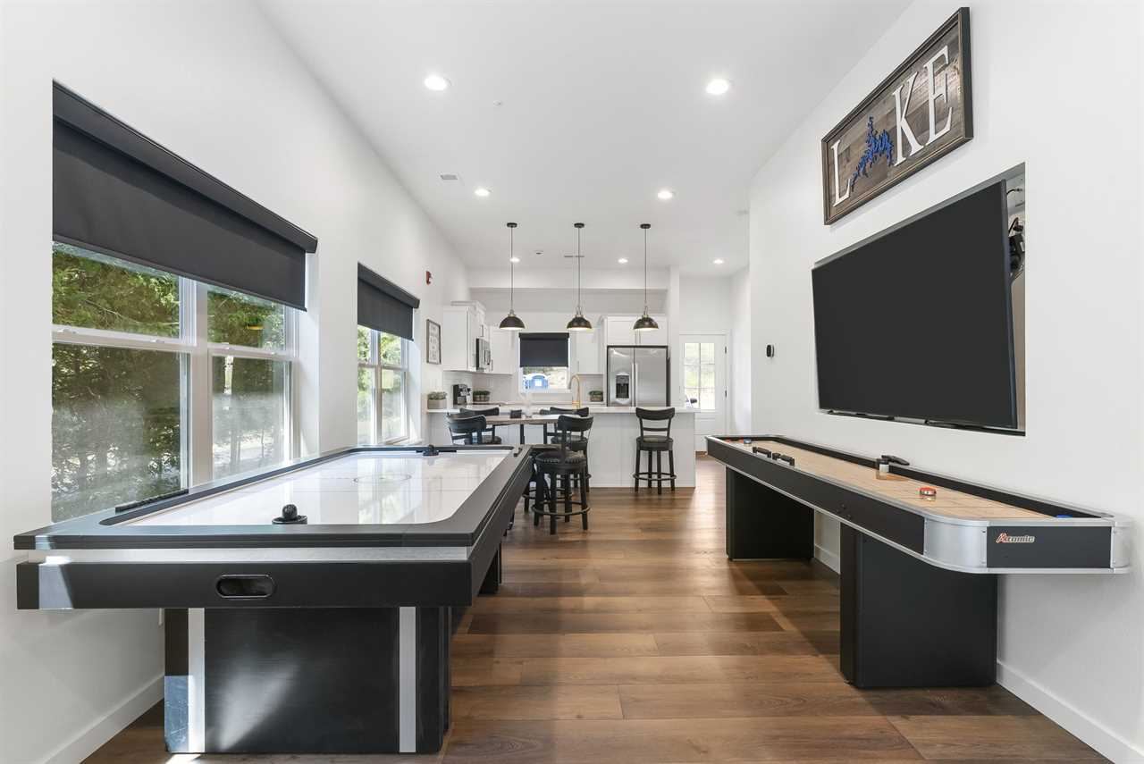 Step into a spacious great room with soaring ceilings, a cozy fireplace, and large windows that frame breathtaking lake vistas. The gourmet kitchen, complete with stainless steel appliances and ample dining space, makes mealtime gatherings a joy. Enjoy friendly competition with air hockey, shuffleboard, and a multi-game arcade, or relax in the sunroom and take in the scenery.