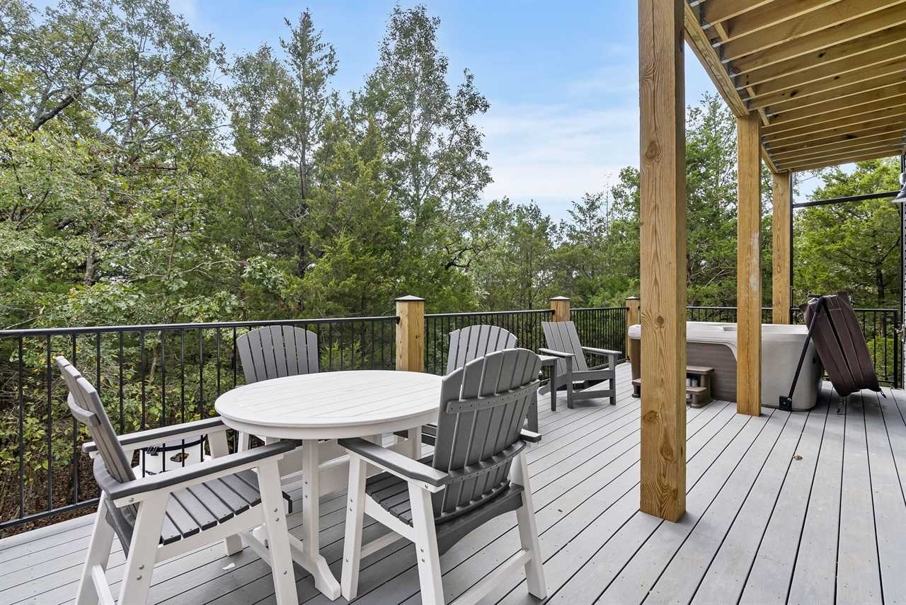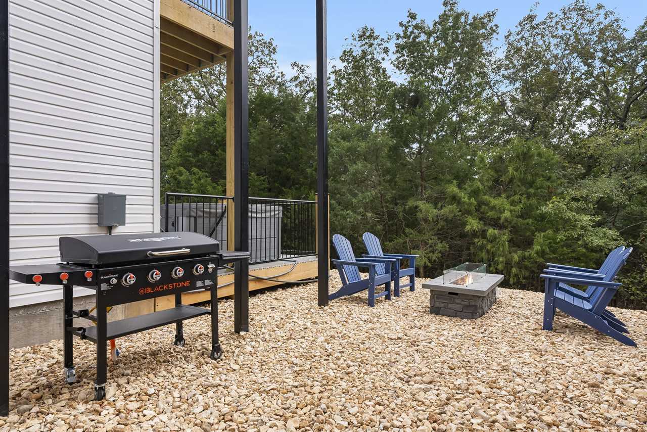 Outside, unwind on the main-level patio with a private hot tub, Blackstone grill, and fire pit — ideal for marshmallow roasting and laughter under the stars. The rooftop deck takes it up a notch, with an outdoor kitchen, TV, and plenty of seating for sunset cocktails and unforgettable views of Table Rock Lake 🌇.