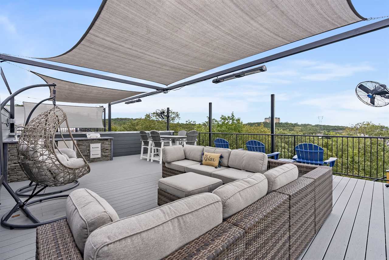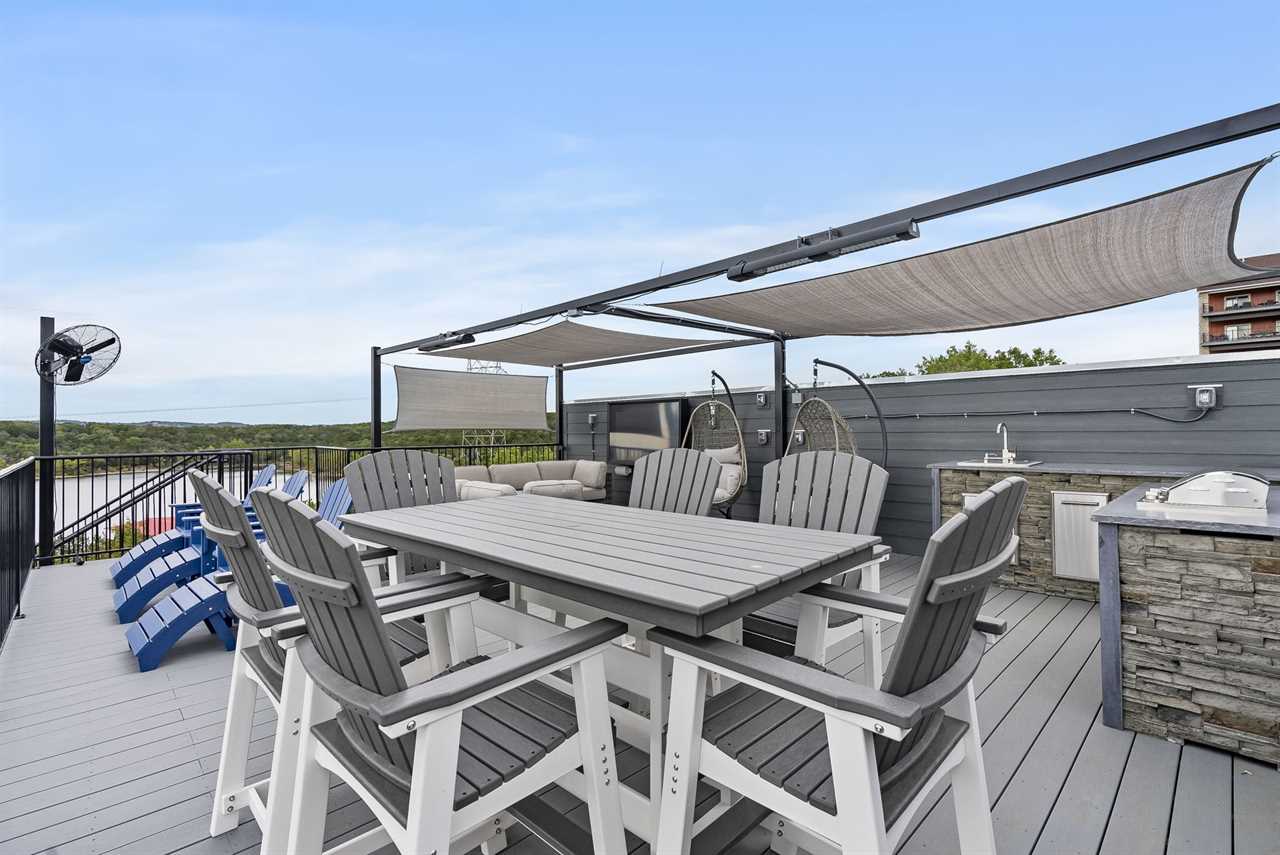 ✦ ✦ Private rooftop deck with outdoor kitchen, seating, and incredible lake vistas