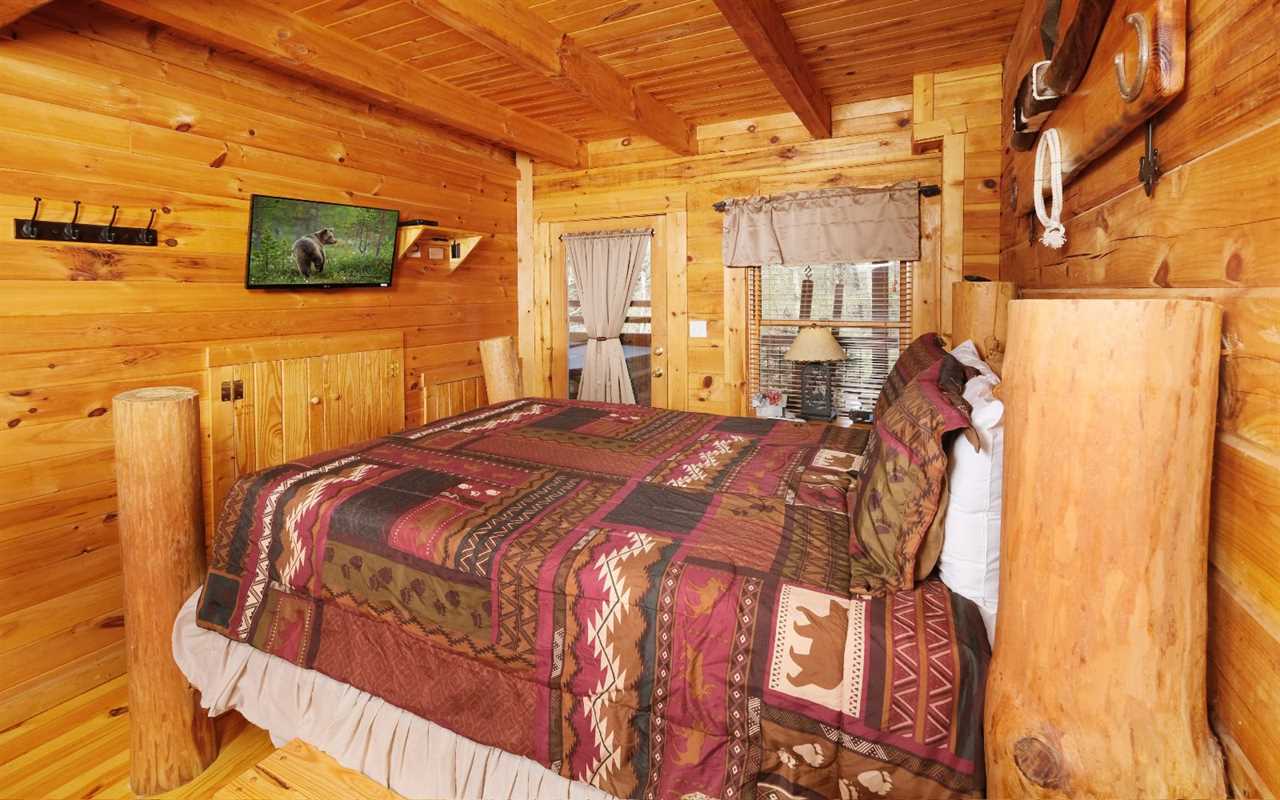 Challenge someone to a game of pool, browse via the Wi-Fi, watch TV in bed, sip a drink in the rocking chairs, and take a bath in the indoor jetted tub before bed. The cabin also has a grill for barbecues, access to a community pool, queen beds, and keyless entry for simple self check-in.