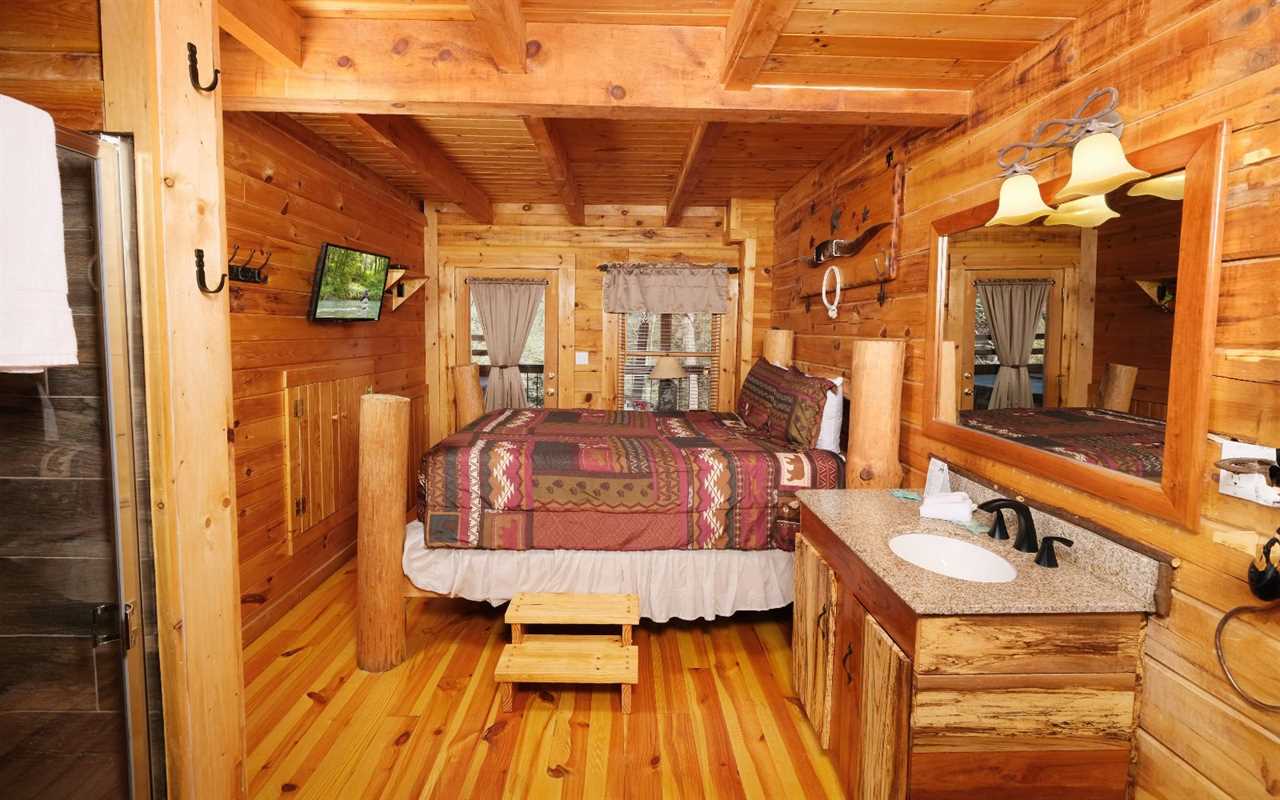 Welcome home to Tennessee Treasure, a charming 1-bedroom log cabin tucked among the trees of the Brother's Cove Resort. Here you'll spend days soaking in the outdoor hot tub, relaxing in the rocking chairs, enjoying nature, and spending quality time with family and friends.