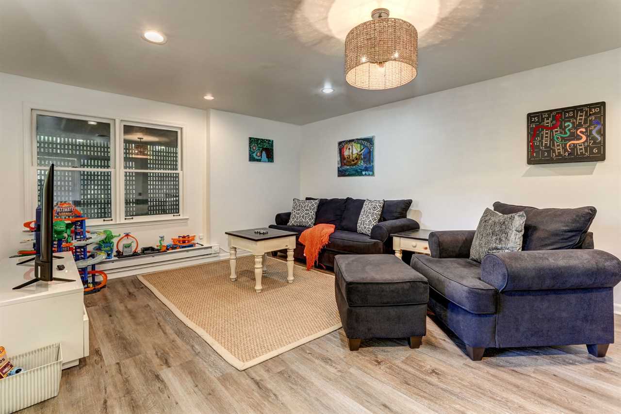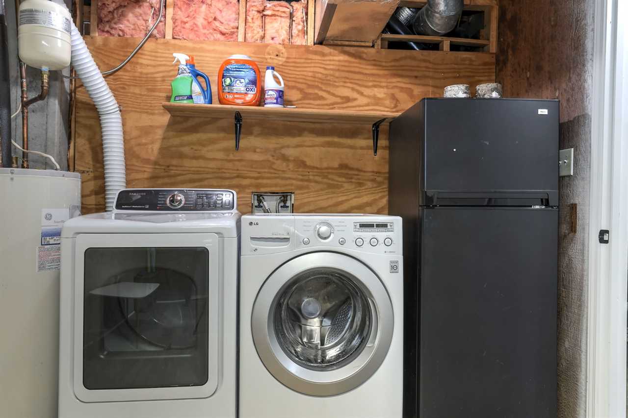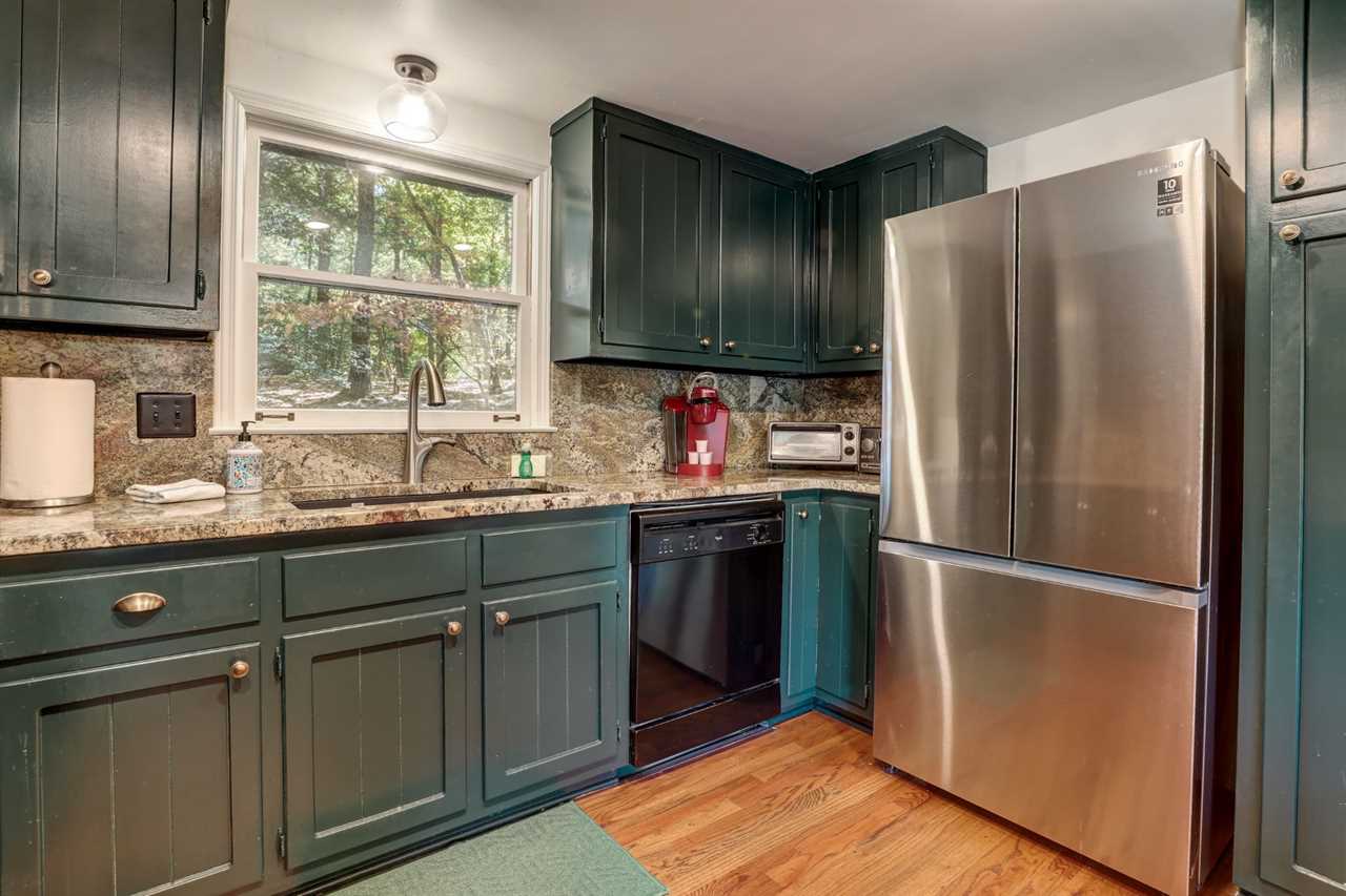 The flat, paved driveway makes arrivals easy, and the home has Wi-Fi, a fully equipped kitchen, a big screen TV and fireplace, a beautiful living room, a washer/dryer, and a loft with shuffleboard, board games, toys, and a big screen TV.