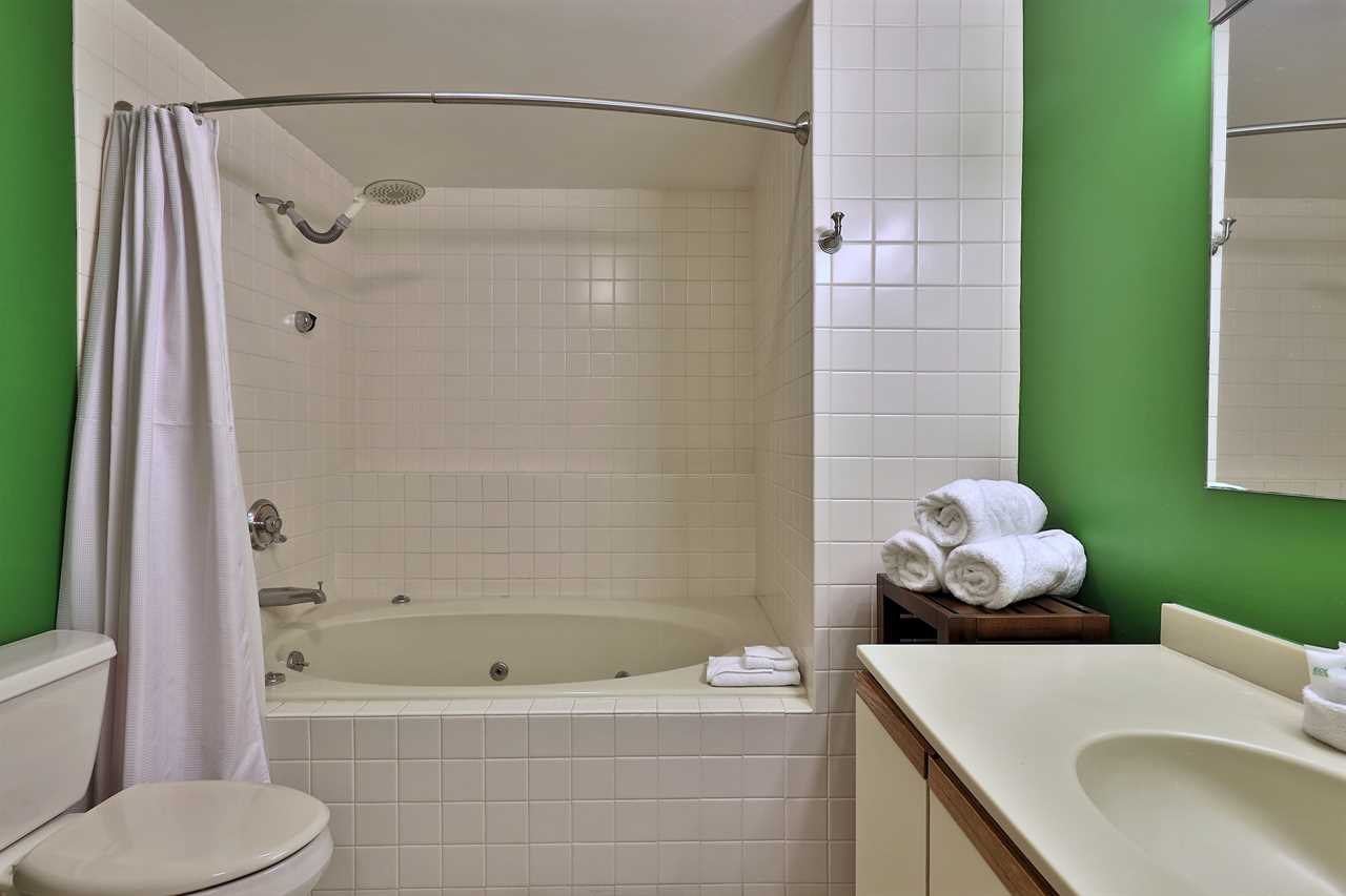 Our one bedroom, one bathroom condo sleeps up to 2 people on a king bed in the bedroom.