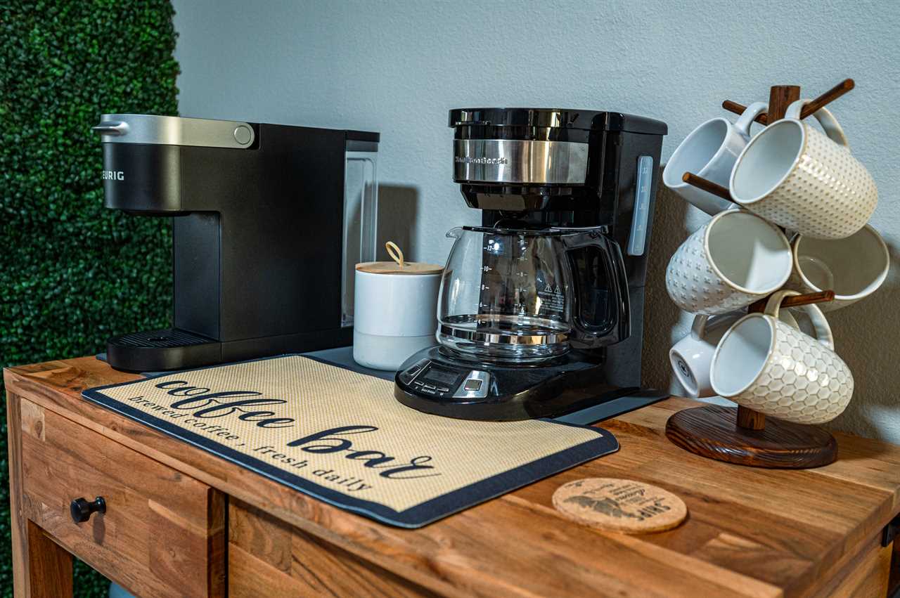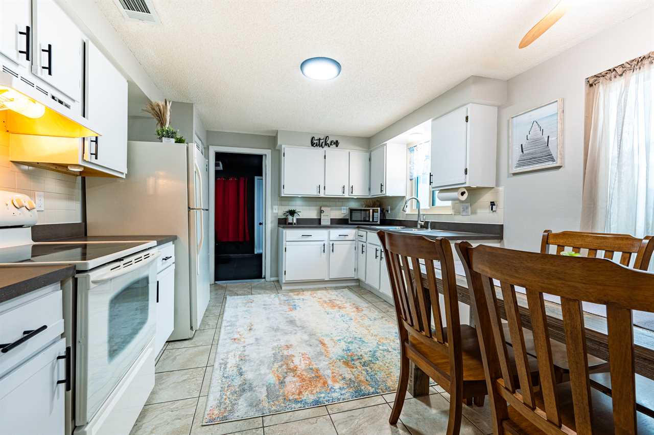 Just around the corner, the kitchen is fully equipped with everything you will need to make your favorite home-cooked meals, making it a breeze to prepare meals and snacks during your stay. Whether you prefer a quick breakfast or a gourmet dinner, you will find everything you need right at your fingertips.