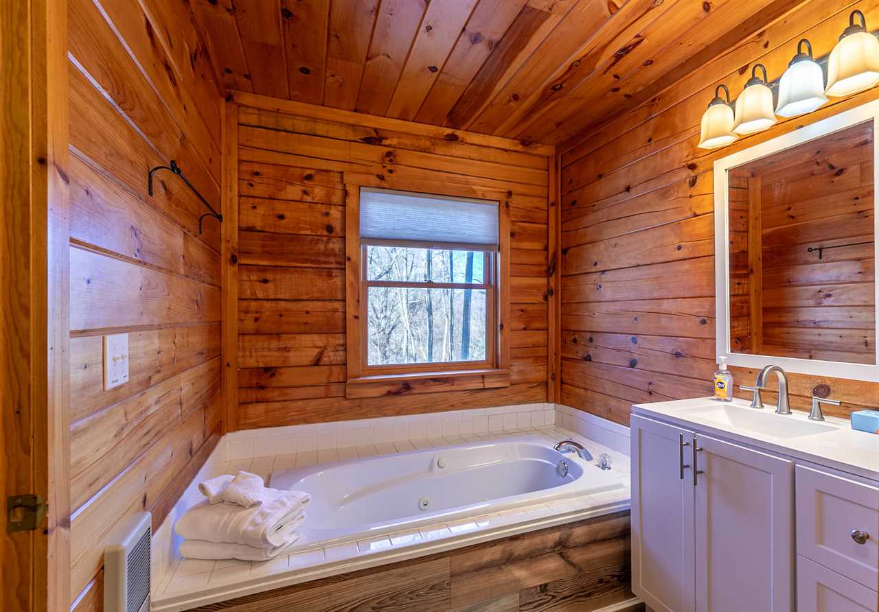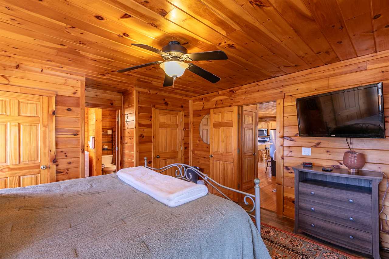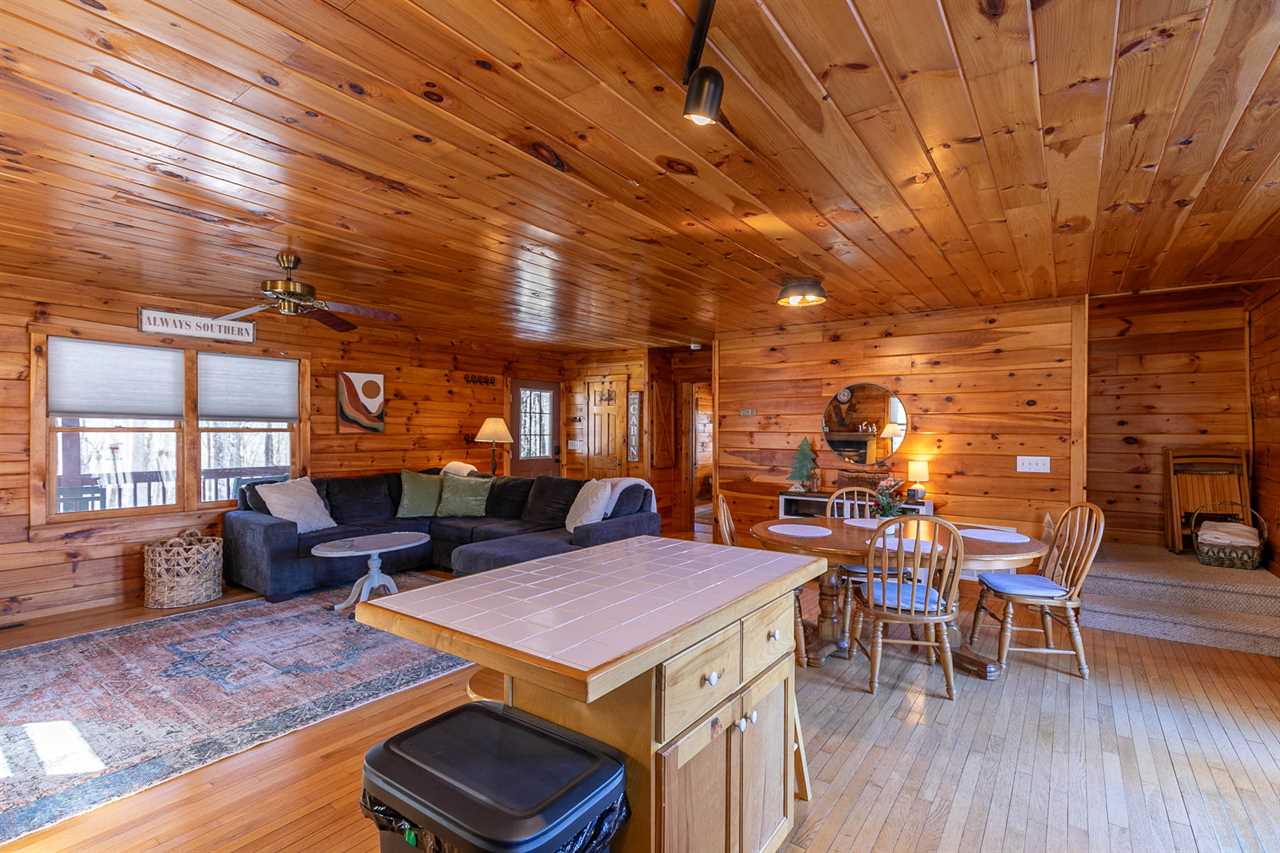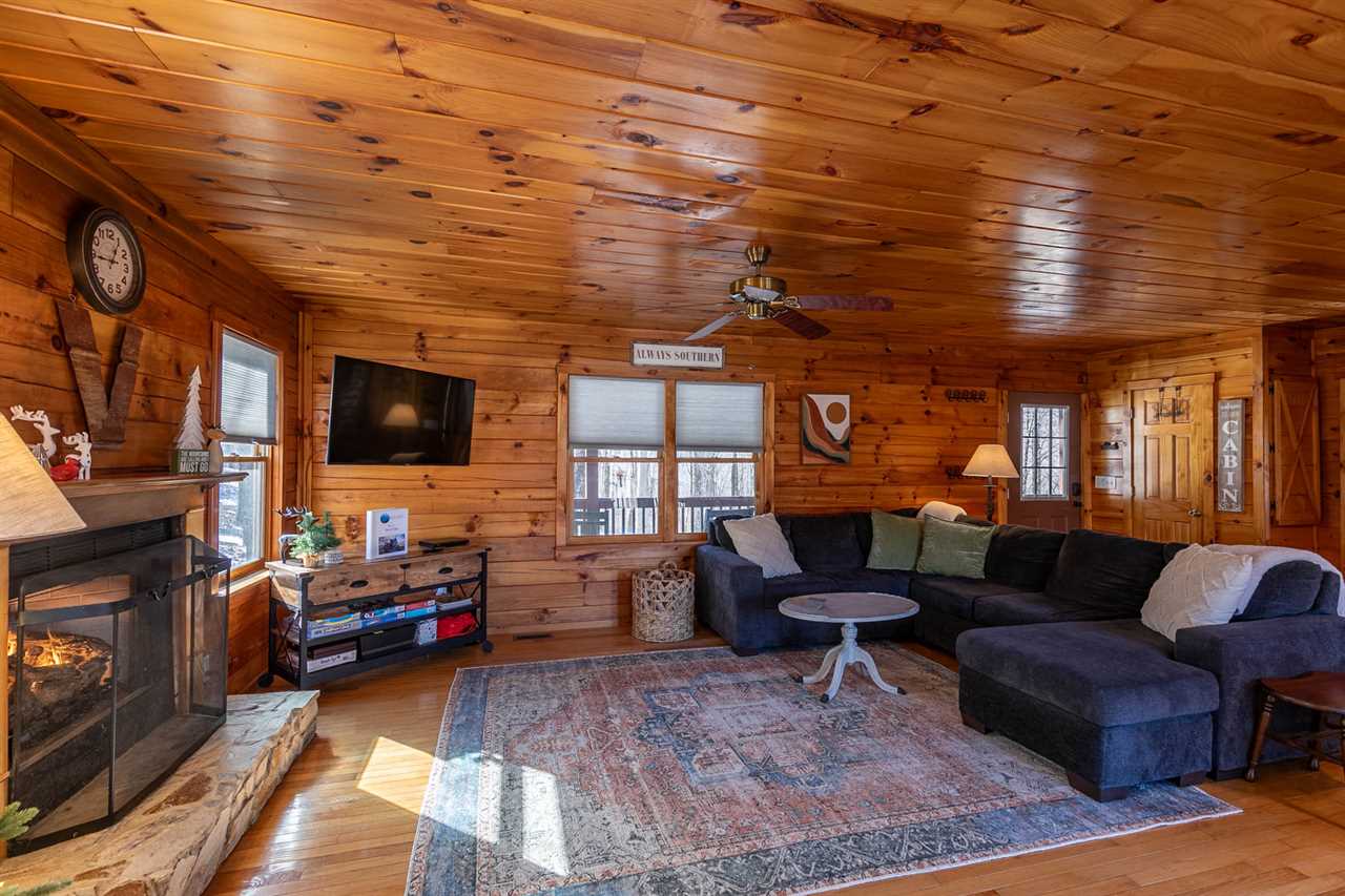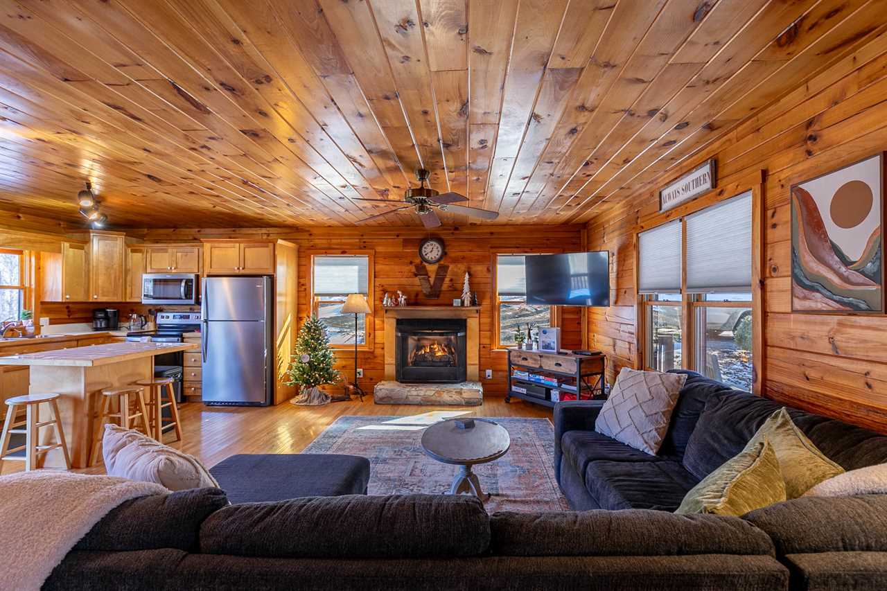 The cabin is situated on 3 acres and offers guests 3 bedrooms, 2 bathrooms, a fully equipped kitchen, gas log fireplace, hot tub, new Smart HD TV's in every room and a washer/dryer. There is an assortment of family games to enjoy and a fire pit outside, perfect for making smores! Wake up to the soft glow of morning light filtering through the windows, and step onto the deck to savor a cup of coffee while taking in the panoramic views