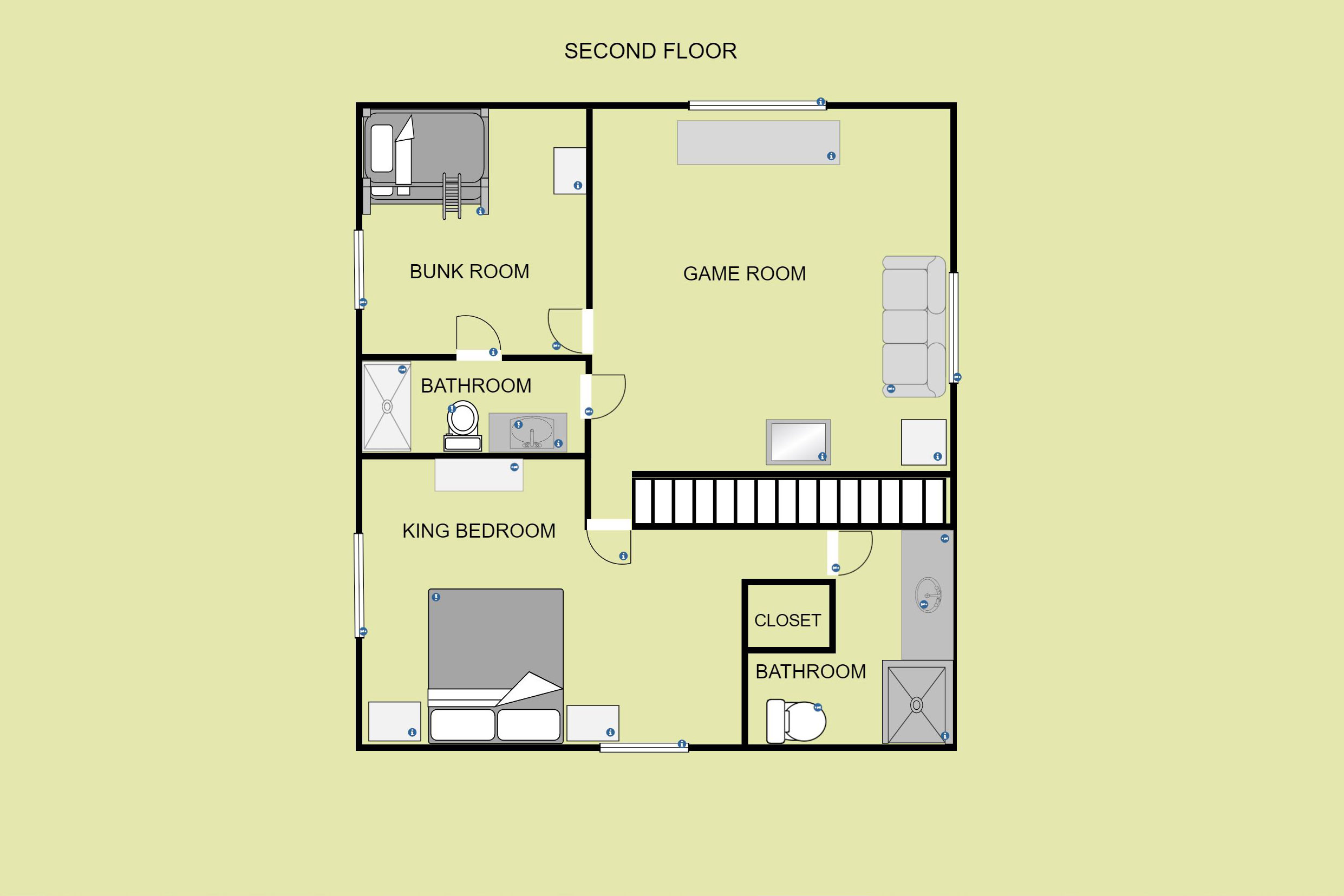 • Bunk and game room share a bathroom
