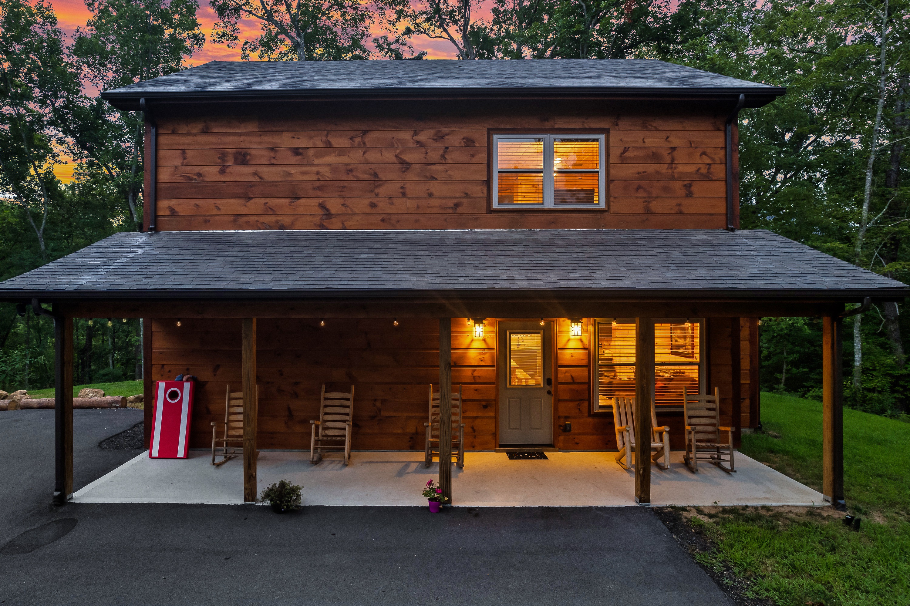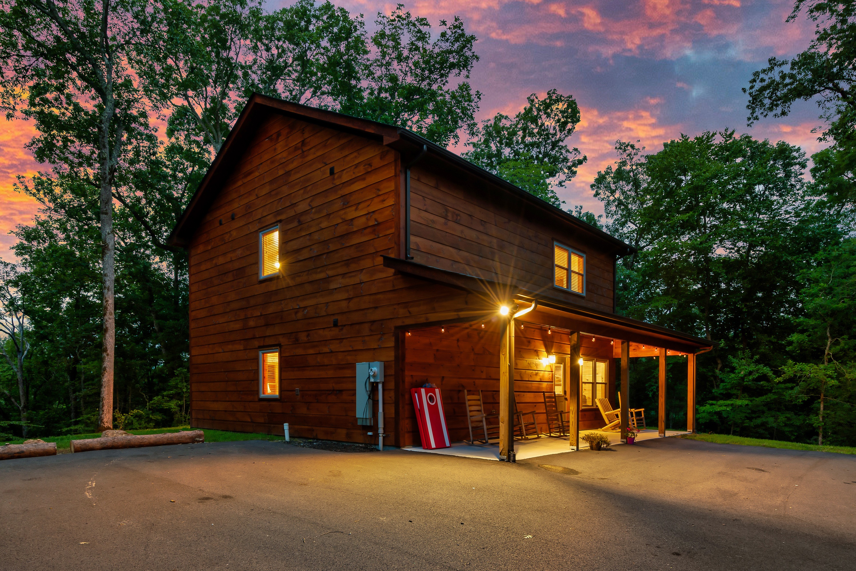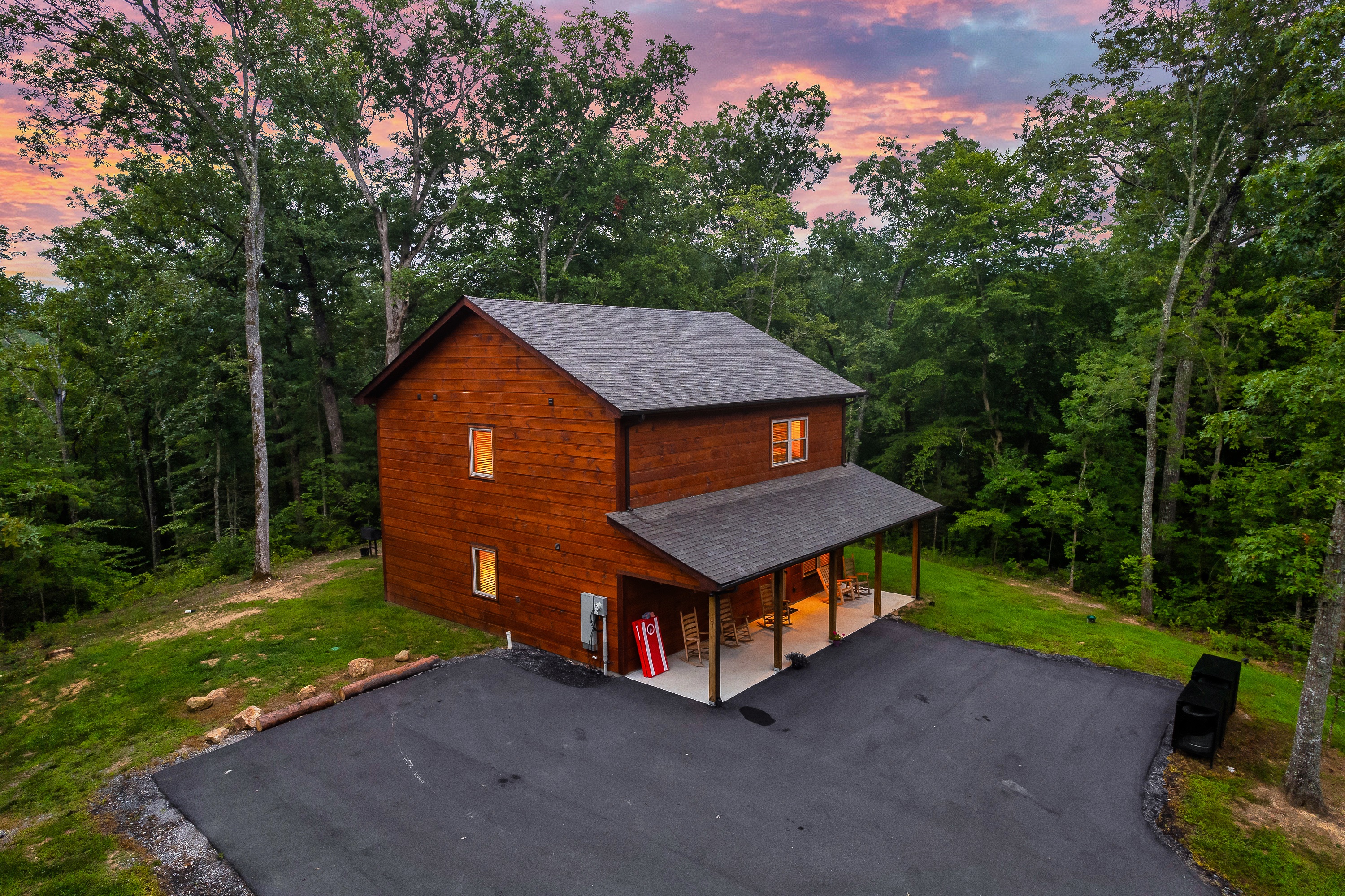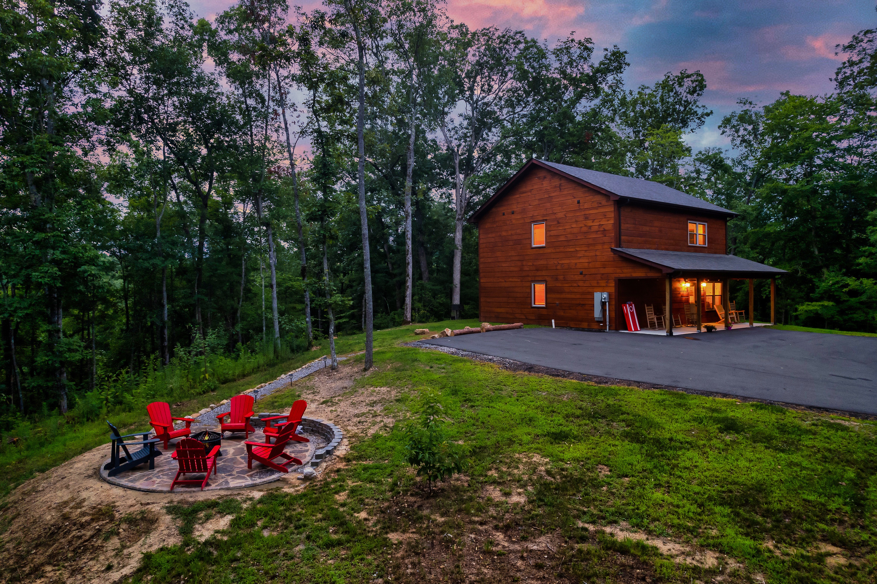 - A security camera is outside and only points towards the driveway. It is used for emergency purposes only. You have your privacy everywhere else outside (porch, hot tub, fire pit). There are no cameras or any other monitoring devices inside of the cabin.