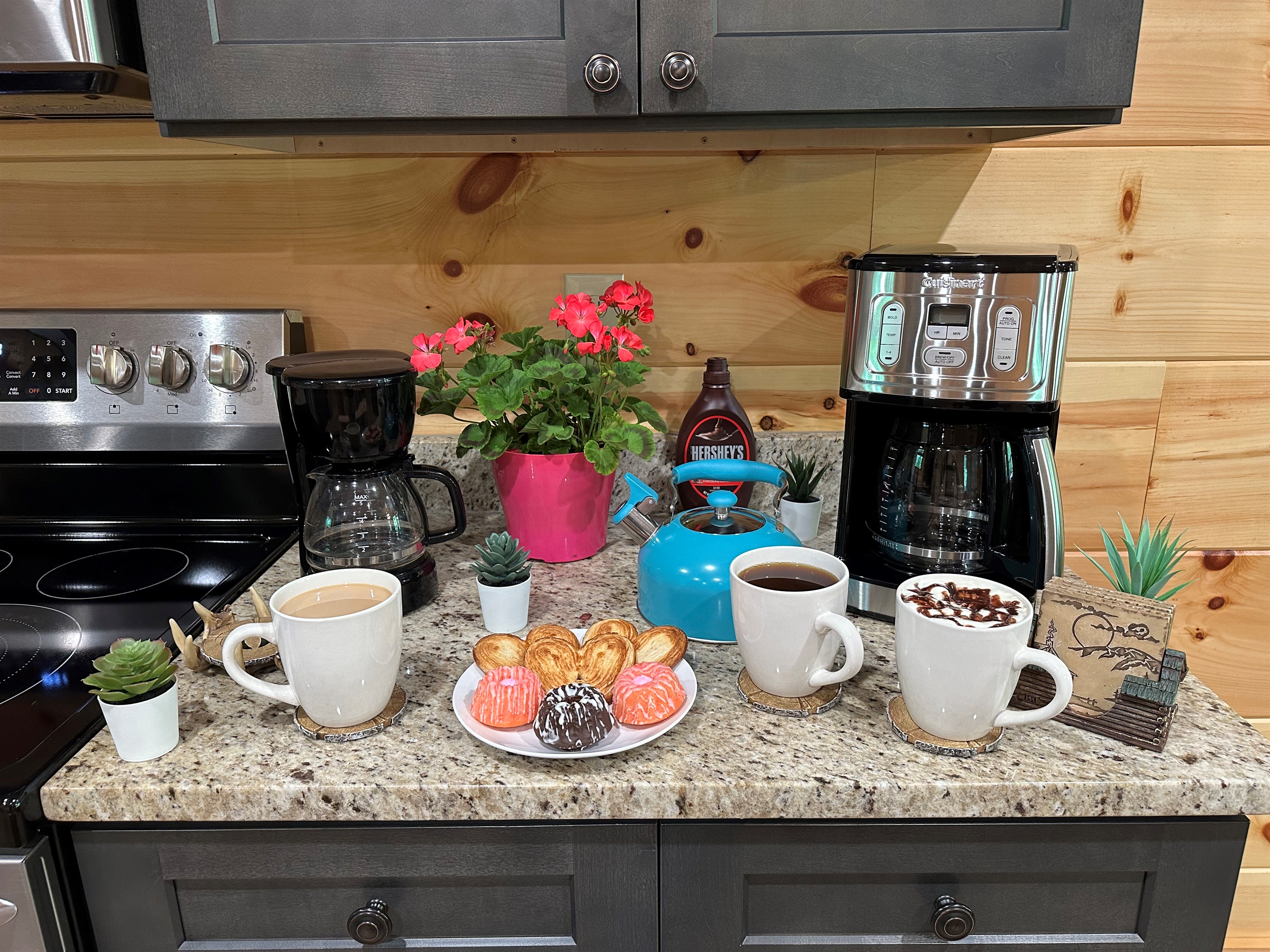 - Coffee maker + fully stocked kitchen