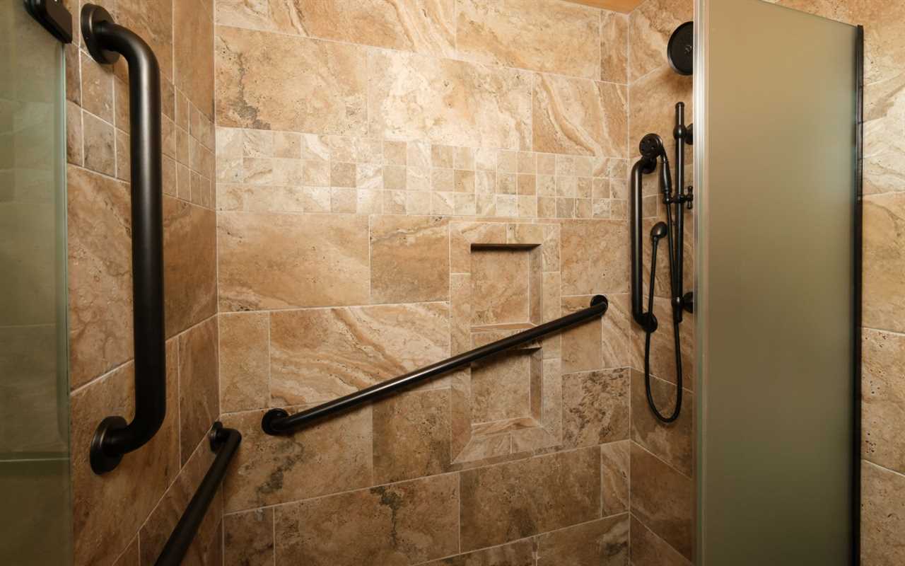 • Grab bars, walk-in shower, and shower chair
