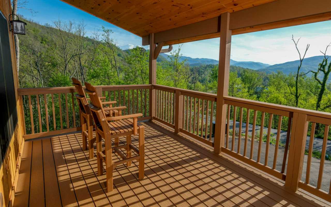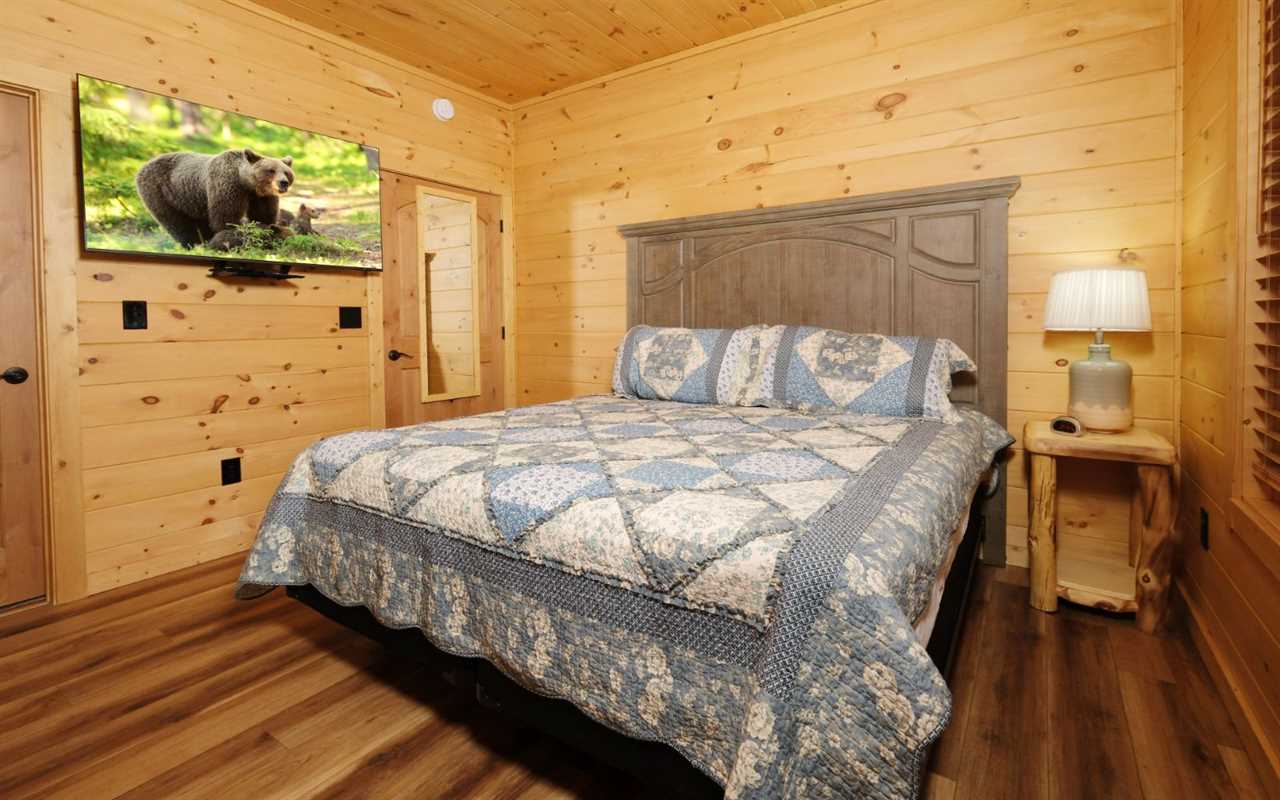 After a day of exploring, rest comfortably in one of three cozy bedrooms — each with views of the Smoky Mountains and its own TV. Two of the upstairs bedrooms feature access to a shared outdoor deck.