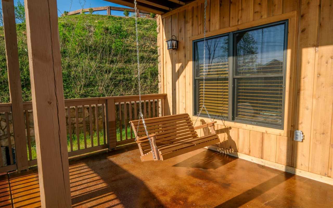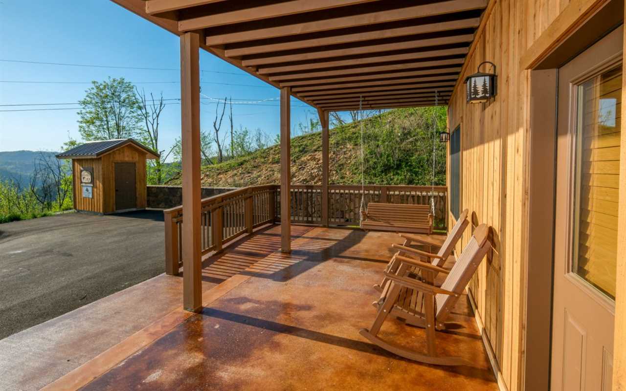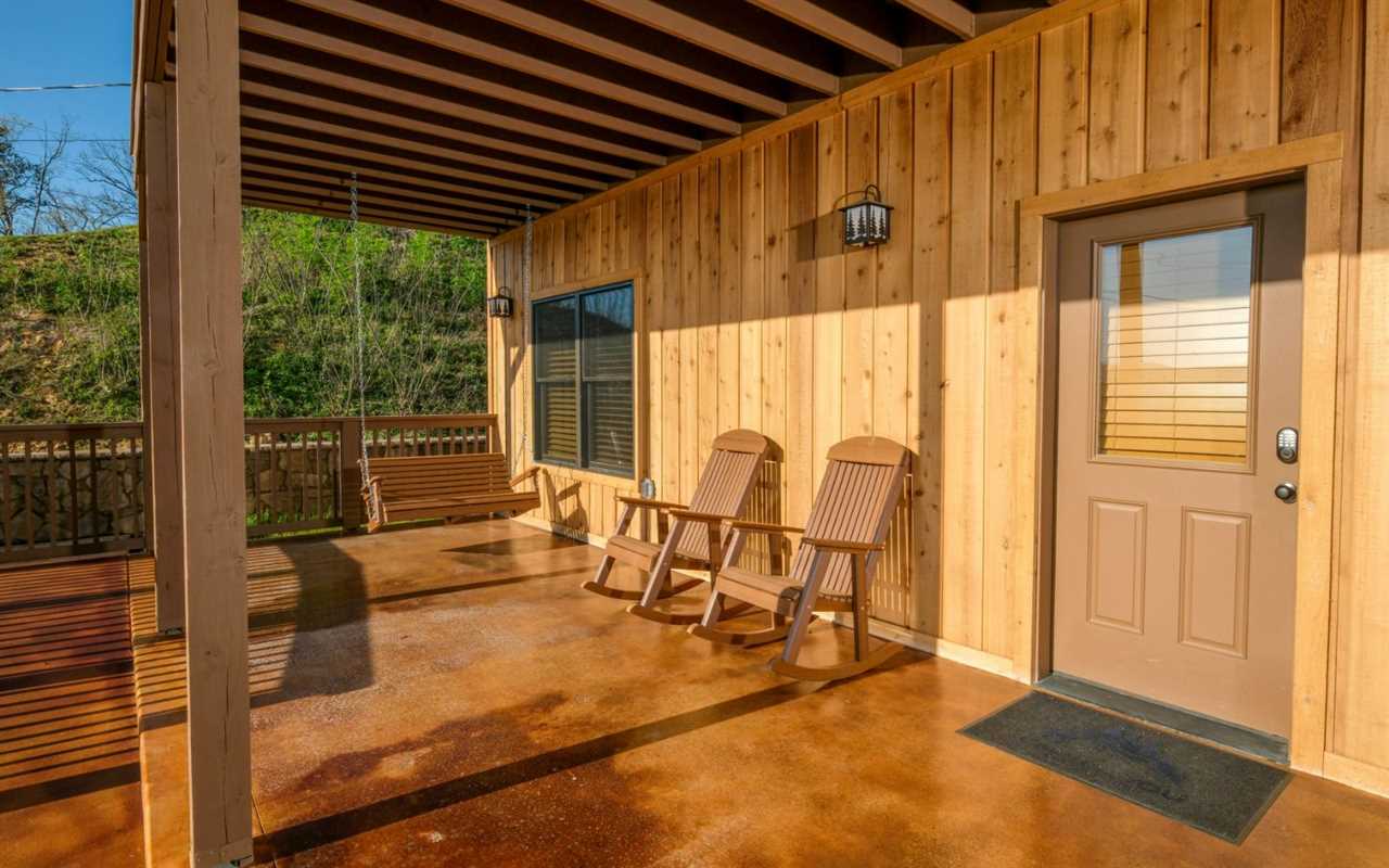 • Rocking chairs, porch swing, and high-top seating