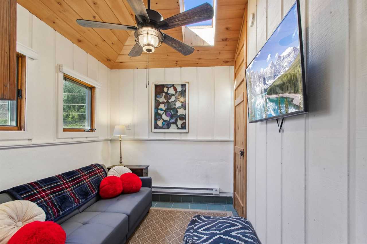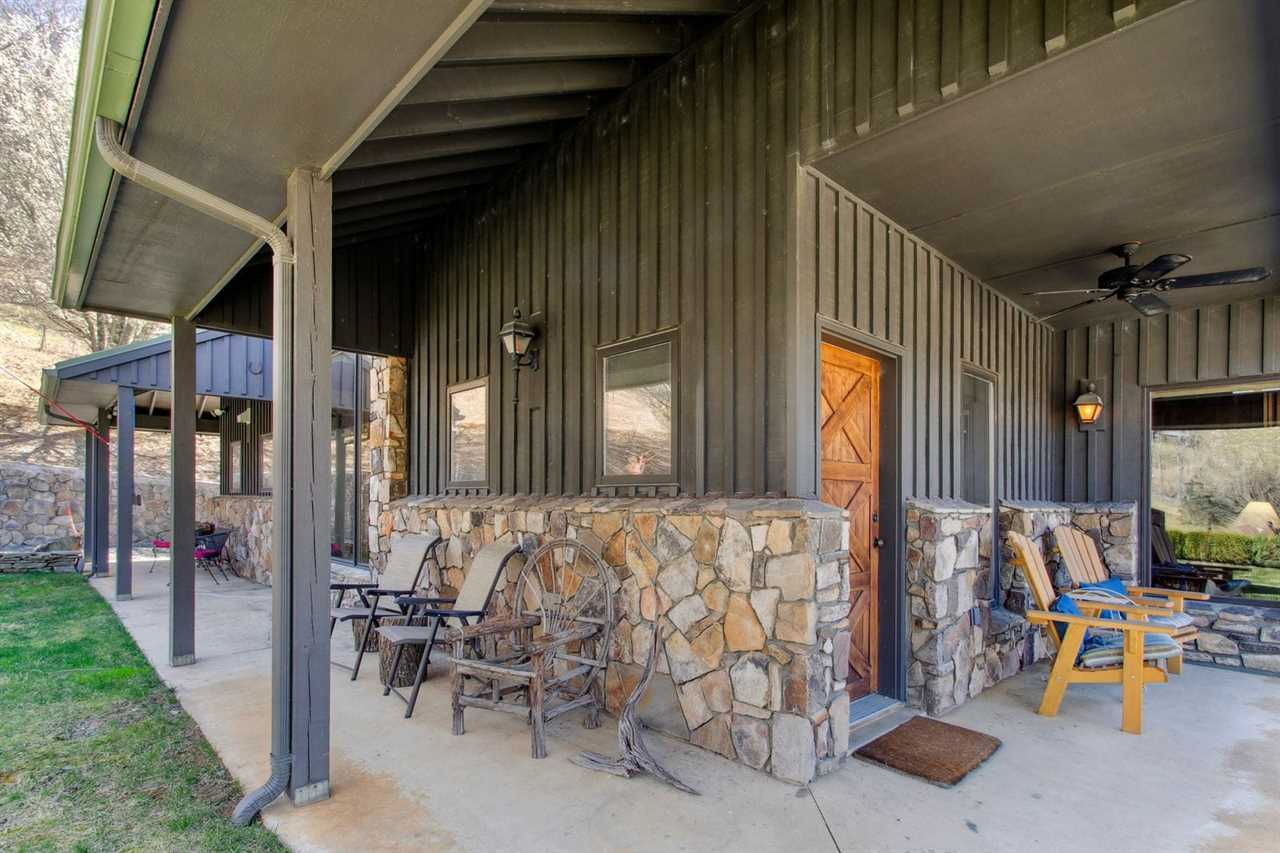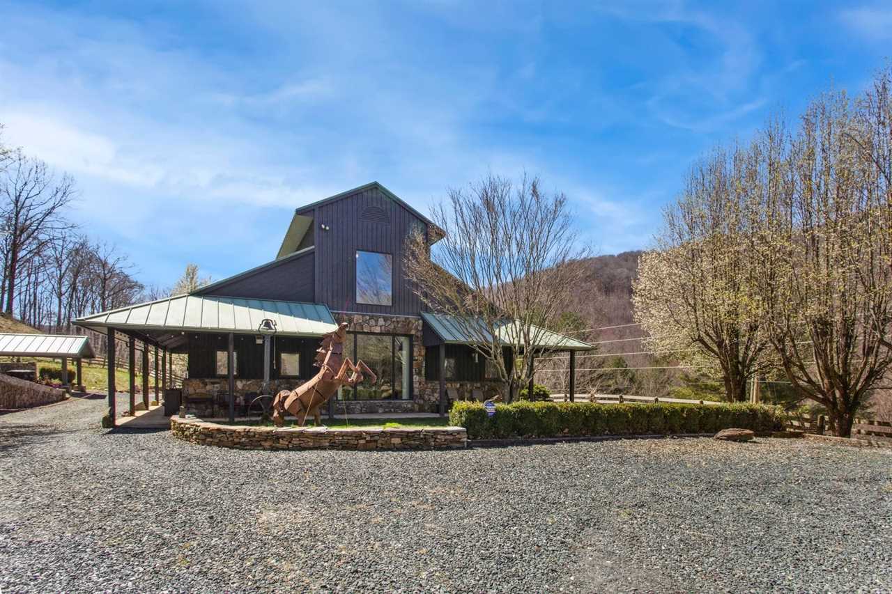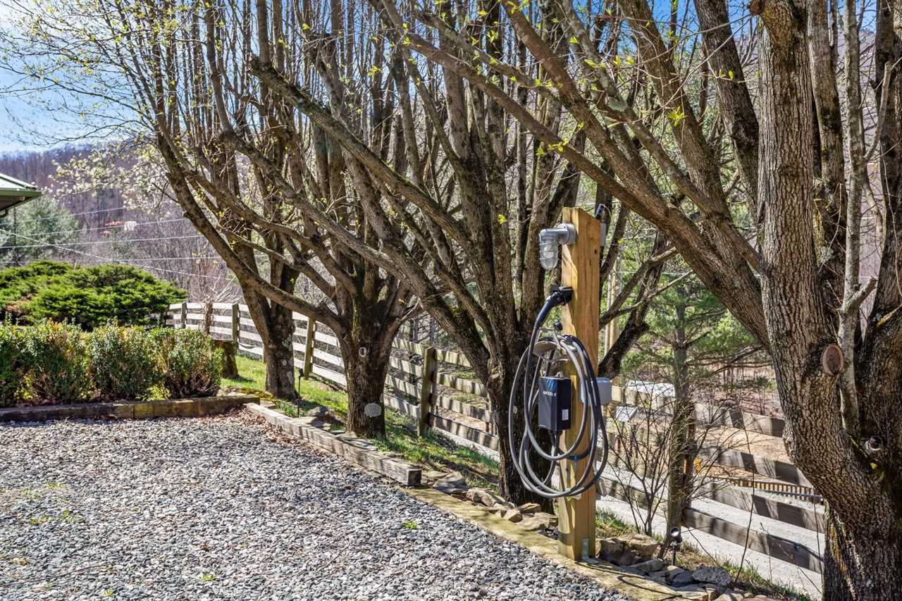 This wonderful mountain home provides, WiFi, central heating and air conditioning, and a washer and dryer. Live TV is offered through Direct TV and guests can log into their own streaming accounts on the smart TVs. The sitting area off the entertainment room features a full futon for sleeping for an additional guest. Please note there are exterior security cameras that capture the parking area, the front porch and side bedroom exterior door, the carport, and the backyard. The gravel driveway leads to large level gravel parking area with a conveniently located EV charger. Pets are not allowed at Bluff View Farm. 4WD or AWD and tire chains are recommended for winter traveling.