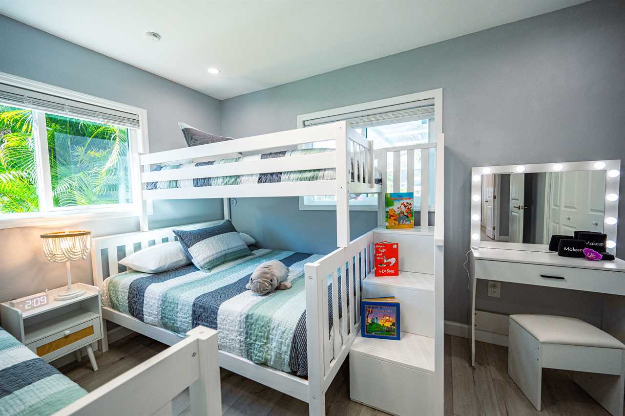 Bedroom 3: 2 Twin-Over-Double Bunk Beds, Makeup Vanity