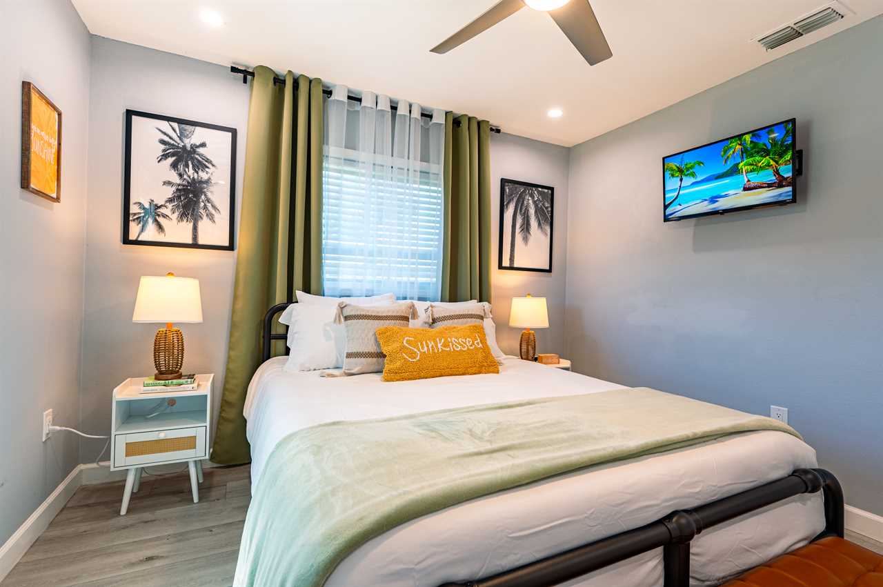 Bedroom 2: Queen Bed, Smart TV, Makeup Vanity