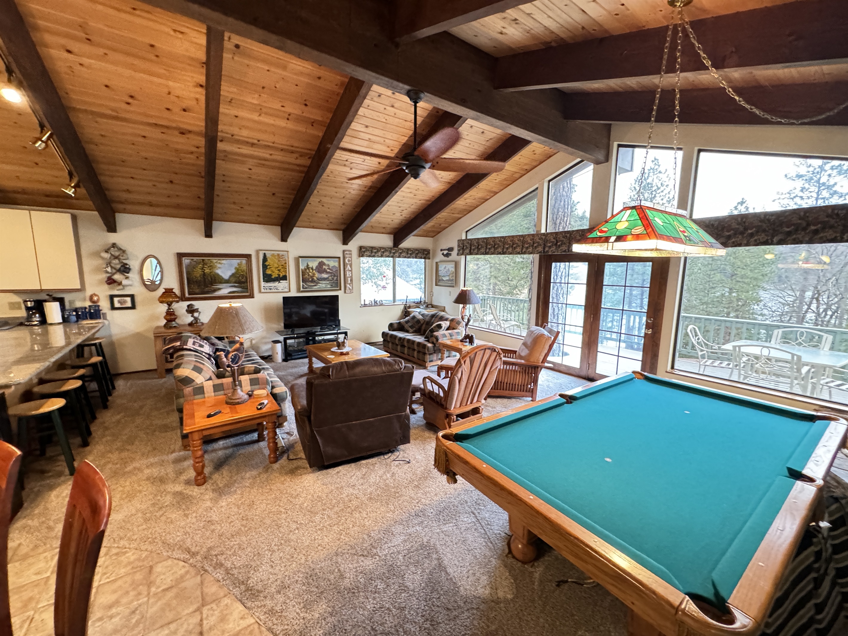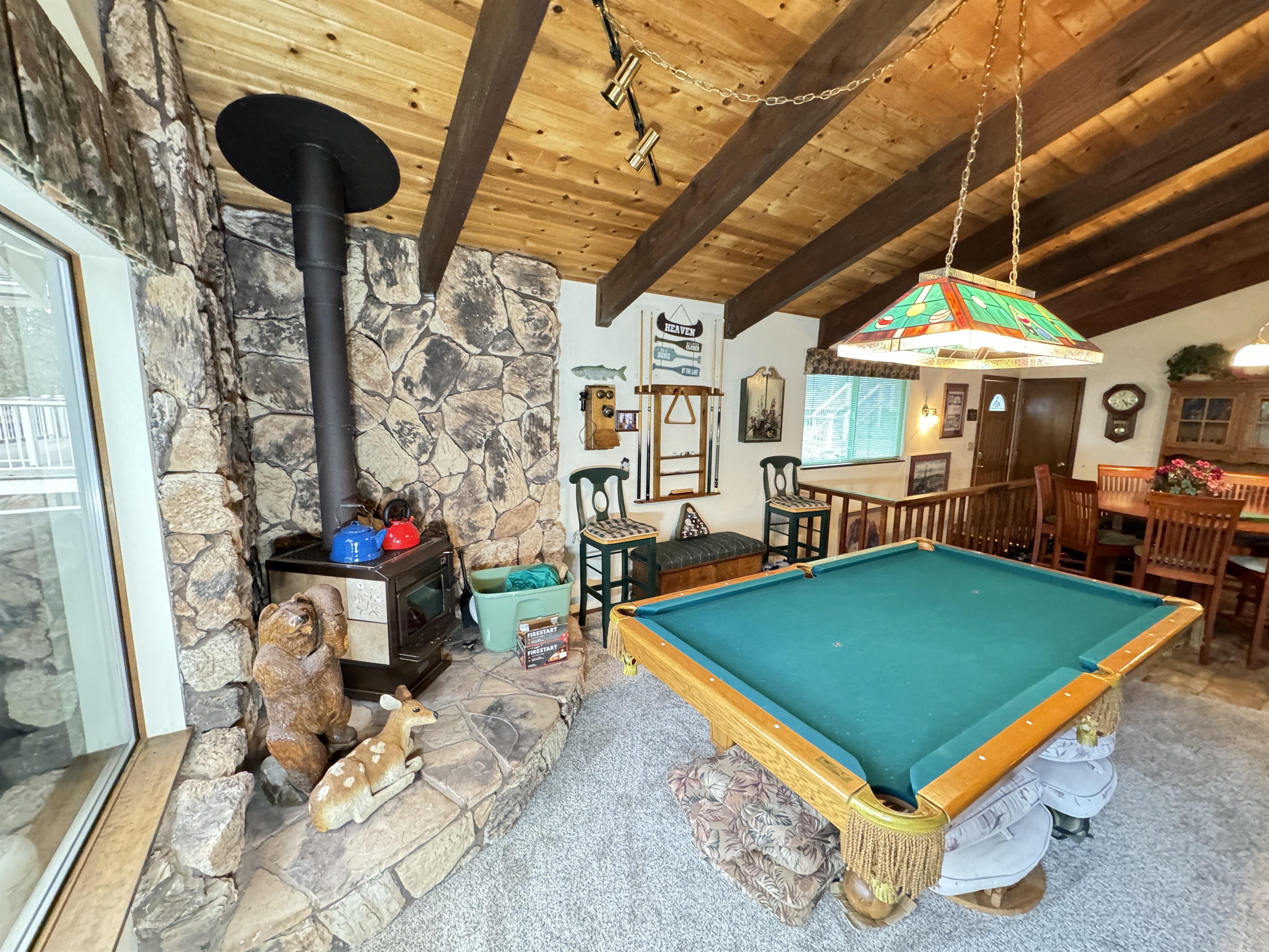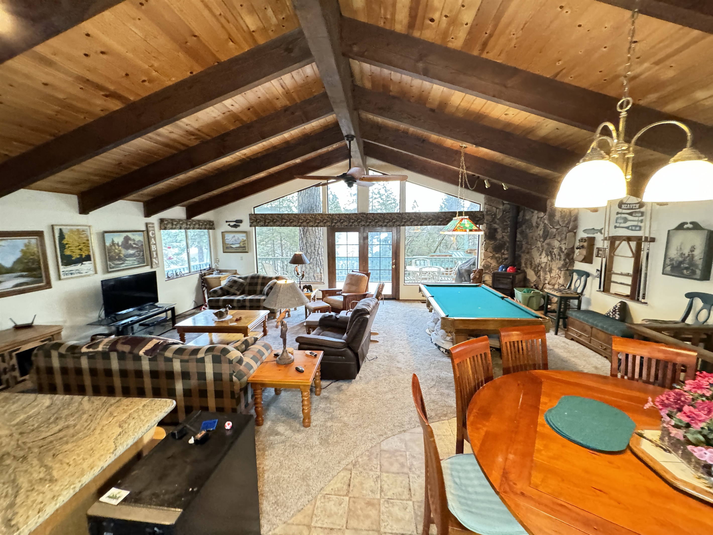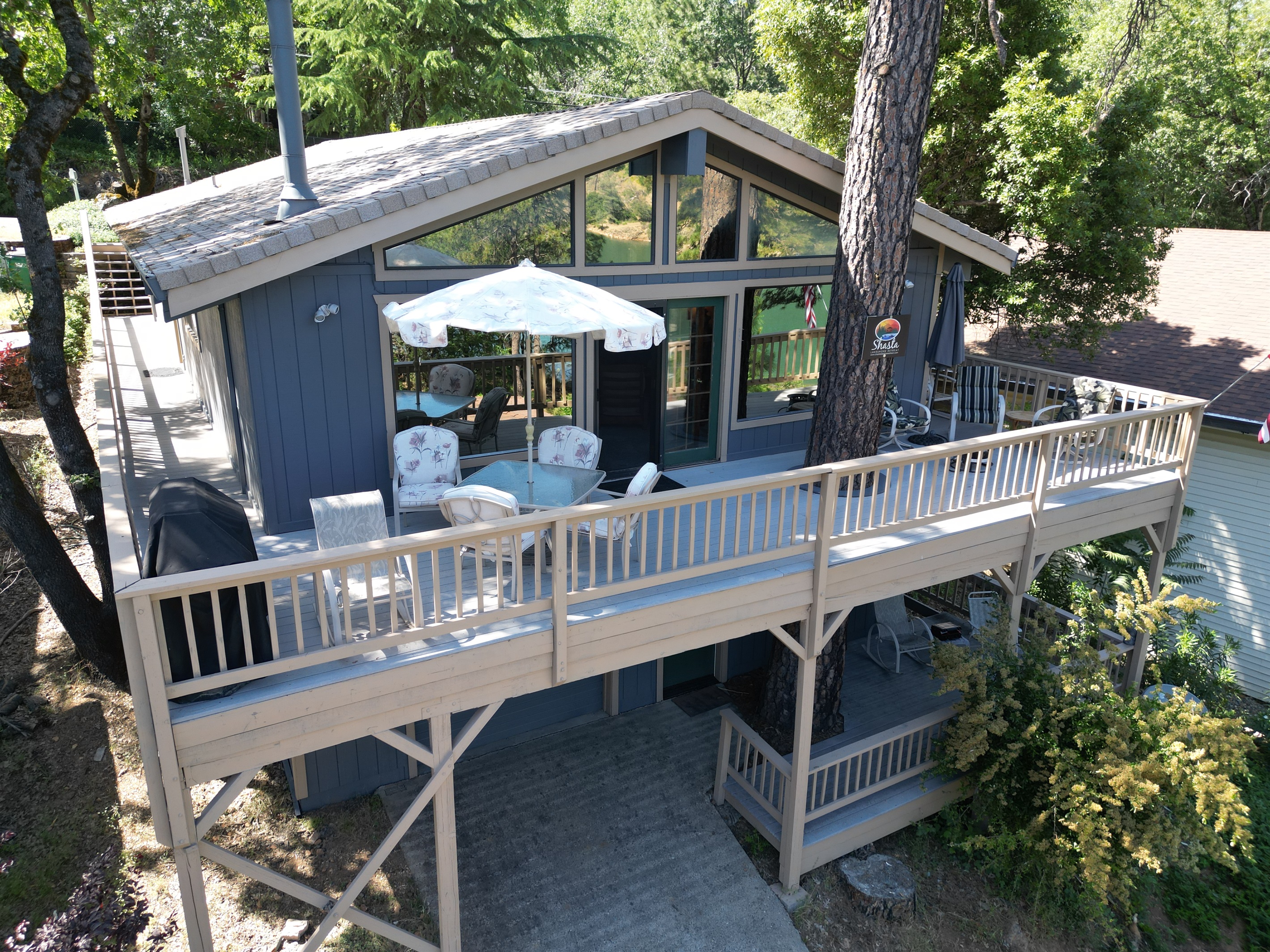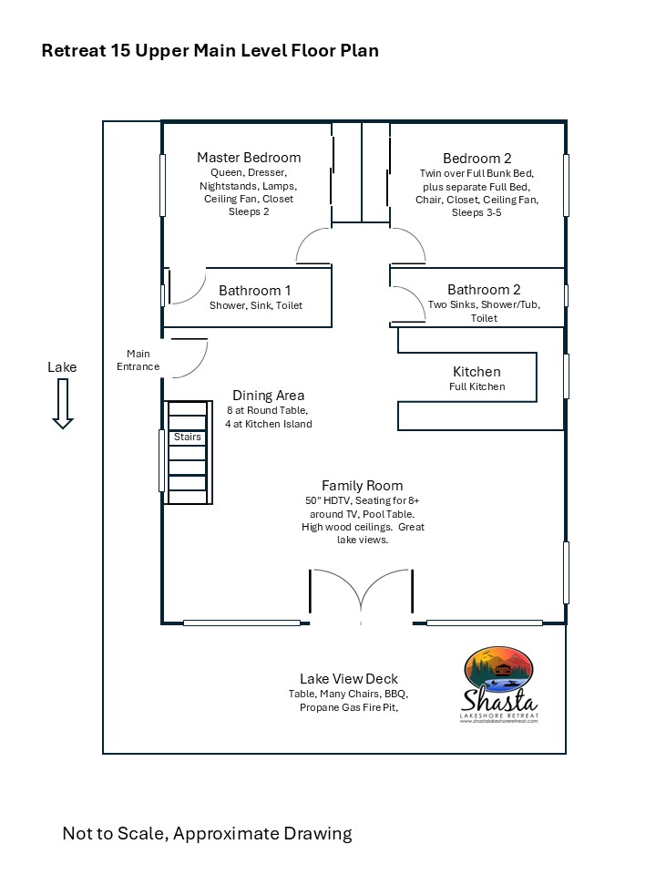 Escape to SHASTA LAKESHORE RETREAT #15, an extraordinary addition to the Shasta Lakeshore Retreat collection, boasting 19 exquisite lake homes. This haven, nestled in the coveted Sugarloaf area, promises an incomparable retreat experience, blending lakeside tranquility with rustic elegance. As you step inside, you're greeted by a sprawling sanctuary highlighted by soaring wood ceilings and expansive windows, flooding the space with natural light. However, the true gem lies in the vast open family room and kitchen area, meticulously designed to foster togetherness and relaxation. With ample seating around the TV, a spacious dining area, and a central pool table, this area is the heart of social gatherings, ensuring that your entire group can revel in its warmth and charm. But the allure doesn't stop indoors. Step onto one of the two decks and immerse yourself in the captivating vistas of Shasta Lake. From the tranquil mornings sipping coffee to lively evening BBQs under the starry sky, each moment spent outdoors is a testament to the beauty of nature. Indulge in rejuvenating soaks in the hot tub, offering respite after a day filled with lake adventures or mountain escapades. With three bedrooms accommodating up to 10 guests, supplemented by a sofa bed for added flexibility, everyone can unwind in comfort. For boating enthusiasts, take advantage of the nearby marina offering boat slip rentals, granting effortless access to the pristine waters of Shasta Lake. And with an array of nearby attractions, including hiking trails, fishing spots, and enchanting waterfalls, every day promises new adventures and cherished memories. Moreover, with the option to rent multiple retreats within the collection, you can orchestrate the ultimate group getaway, accommodating up to 220 guests in total. Seize this exclusive opportunity to experience Retreat #15 and its myriad wonders. Your lakeside paradise awaits!