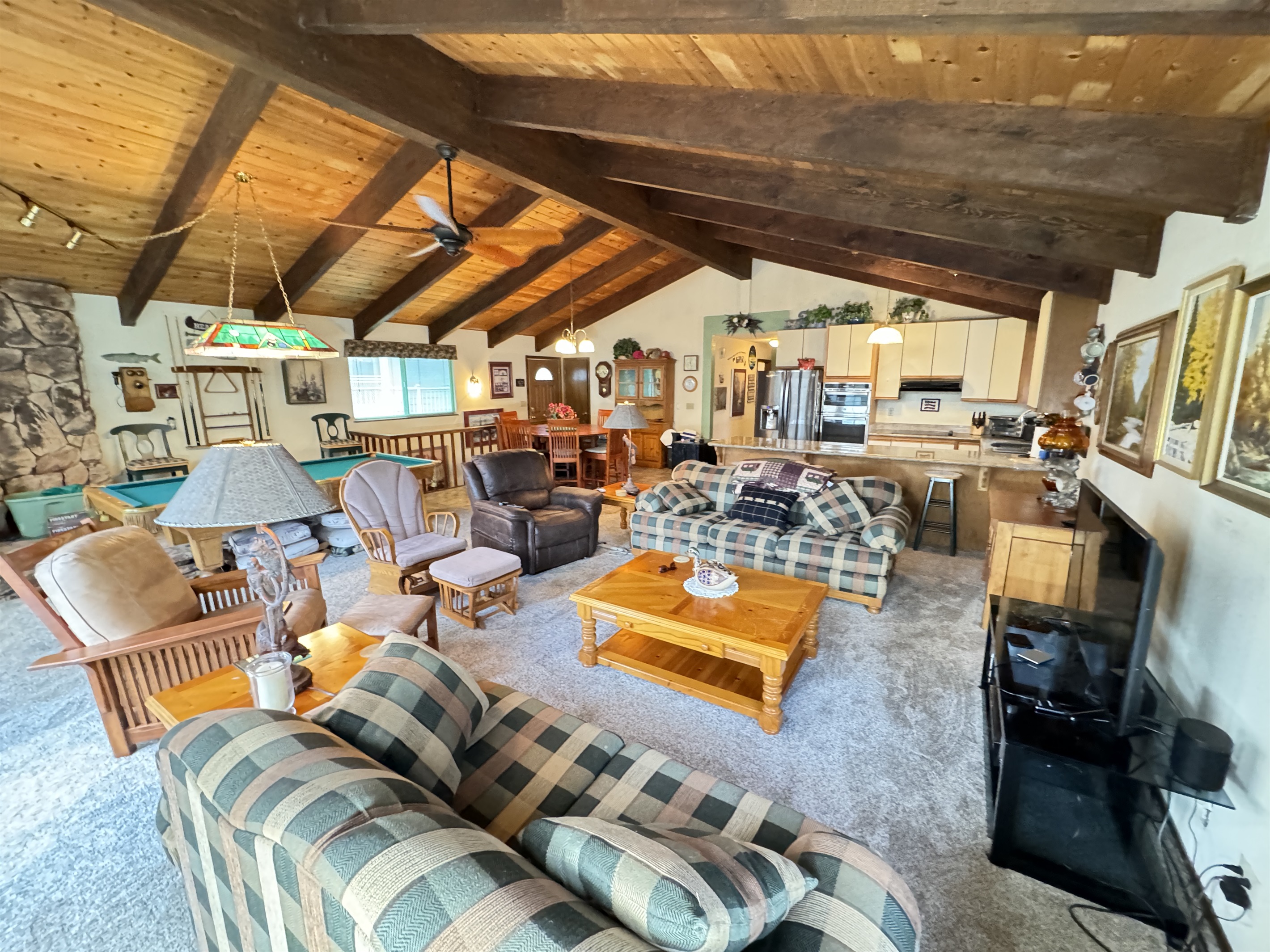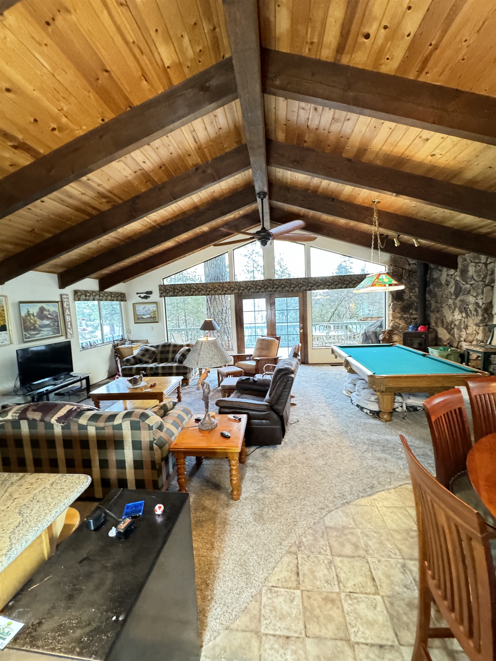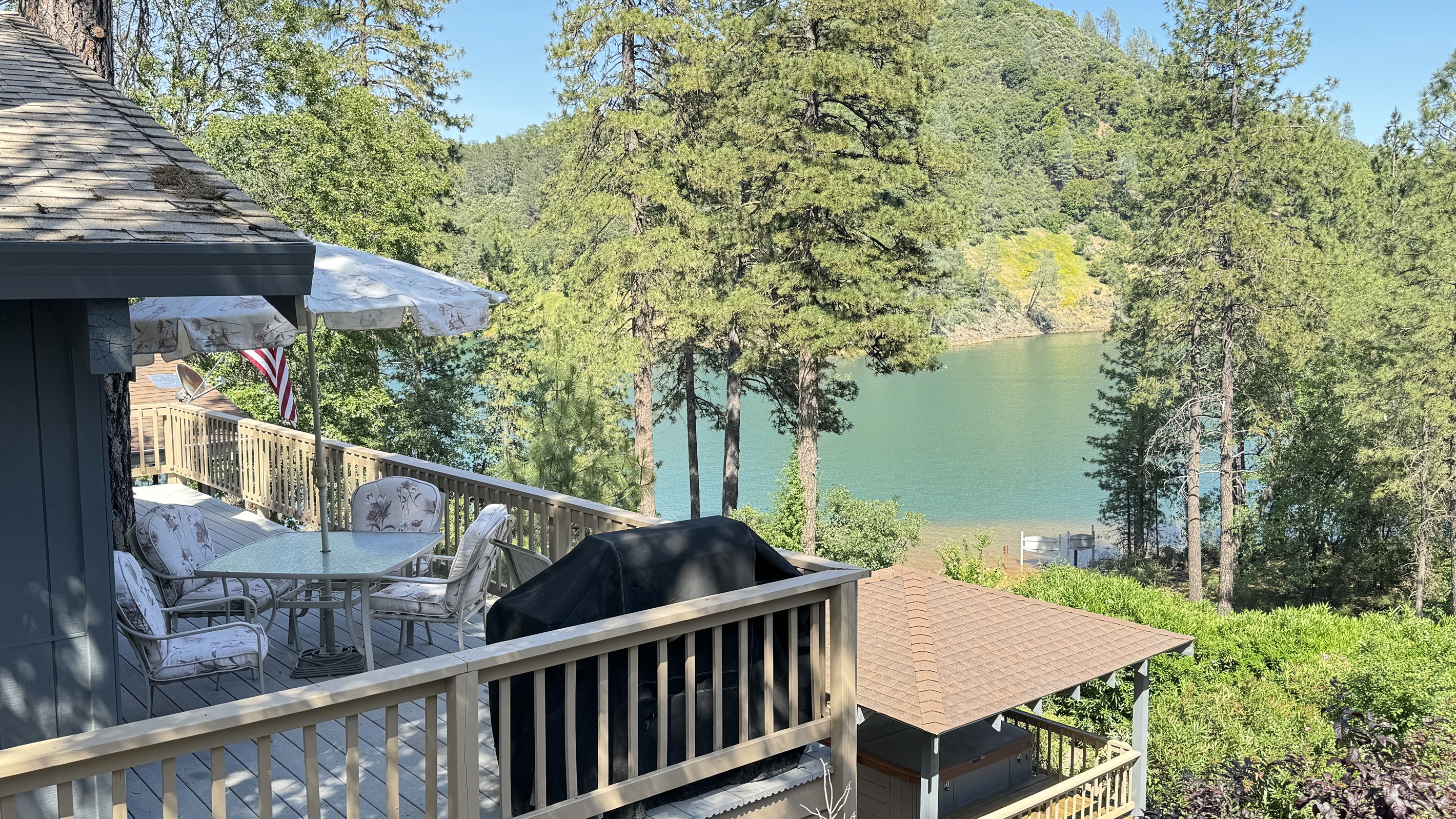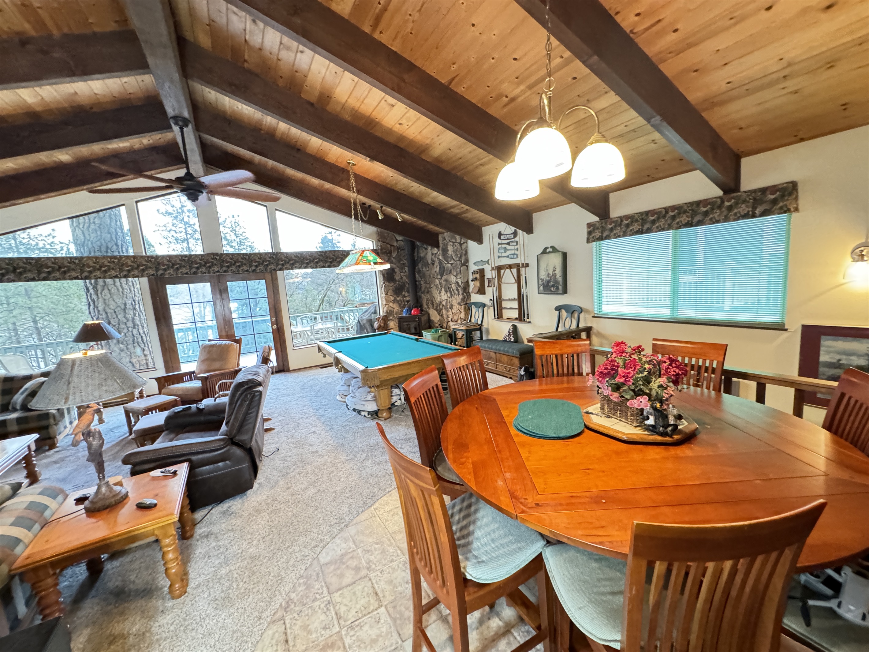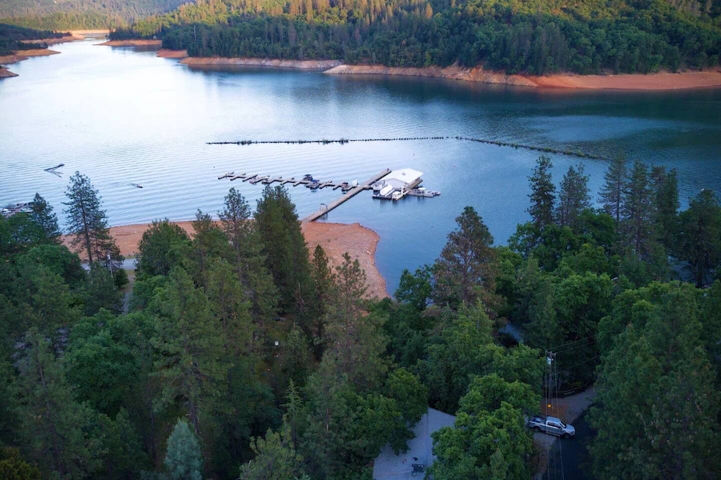 Escape to SHASTA LAKESHORE RETREAT #15, an extraordinary addition to the Shasta Lakeshore Retreat collection, boasting 19 exquisite lake homes. This haven, nestled in the coveted Sugarloaf area, promises an incomparable retreat experience, blending lakeside tranquility with rustic elegance. As you step inside, you're greeted by a sprawling sanctuary highlighted by soaring wood ceilings and expansive windows, flooding the space with natural light. However, the true gem lies in the vast open family room and kitchen area, meticulously designed to foster togetherness and relaxation. With ample seating around the TV, a spacious dining area, and a central pool table, this area is the heart of social gatherings, ensuring that your entire group can revel in its warmth and charm. But the allure doesn't stop indoors. Step onto one of the two decks and immerse yourself in the captivating vistas of Shasta Lake. From the tranquil mornings sipping coffee to lively evening BBQs under the starry sky, each moment spent outdoors is a testament to the beauty of nature. Indulge in rejuvenating soaks in the hot tub, offering respite after a day filled with lake adventures or mountain escapades. With three bedrooms accommodating up to 10 guests, supplemented by a sofa bed for added flexibility, everyone can unwind in comfort. For boating enthusiasts, take advantage of the nearby marina offering boat slip rentals, granting effortless access to the pristine waters of Shasta Lake. And with an array of nearby attractions, including hiking trails, fishing spots, and enchanting waterfalls, every day promises new adventures and cherished memories. Moreover, with the option to rent multiple retreats within the collection, you can orchestrate the ultimate group getaway, accommodating up to 220 guests in total. Seize this exclusive opportunity to experience Retreat #15 and its myriad wonders. Your lakeside paradise awaits!