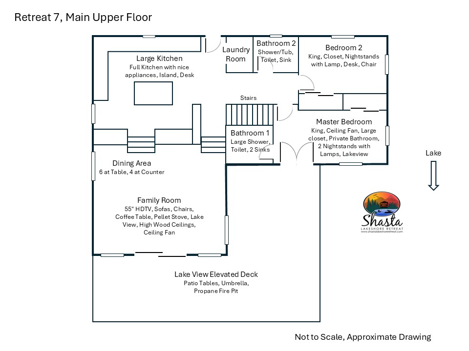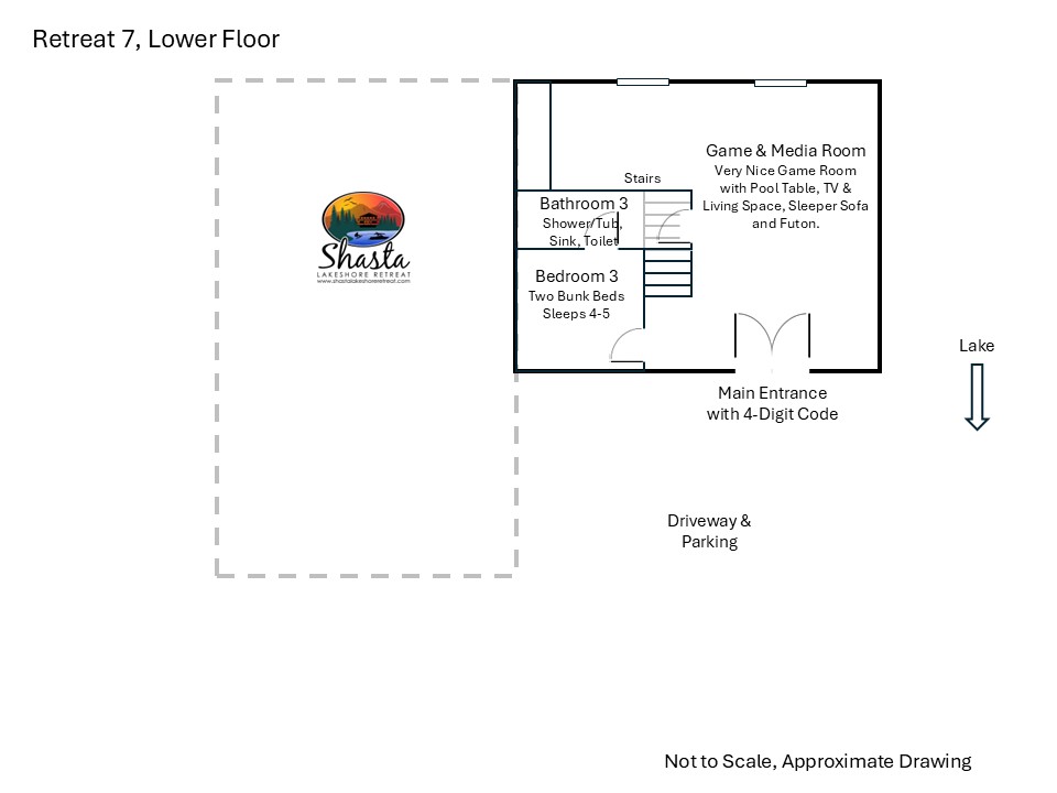 SHASTA LAKESHORE RETREAT #7 is our most LUXURIOUS LAKEVIEW HOME, sleeps 12-14* guests (max of 9 adults) and is just across the street from the lake. It is a short walk/drive to the boat ramp & marina. This home is located in the highly desired Sugarloaf community of Lakehead. It features 3 large bedrooms (4th bedroom being added March 2026) & 3 baths plus a large game room with pool table. *12 guests through Feb 2026, then 14 starting in March 2026.