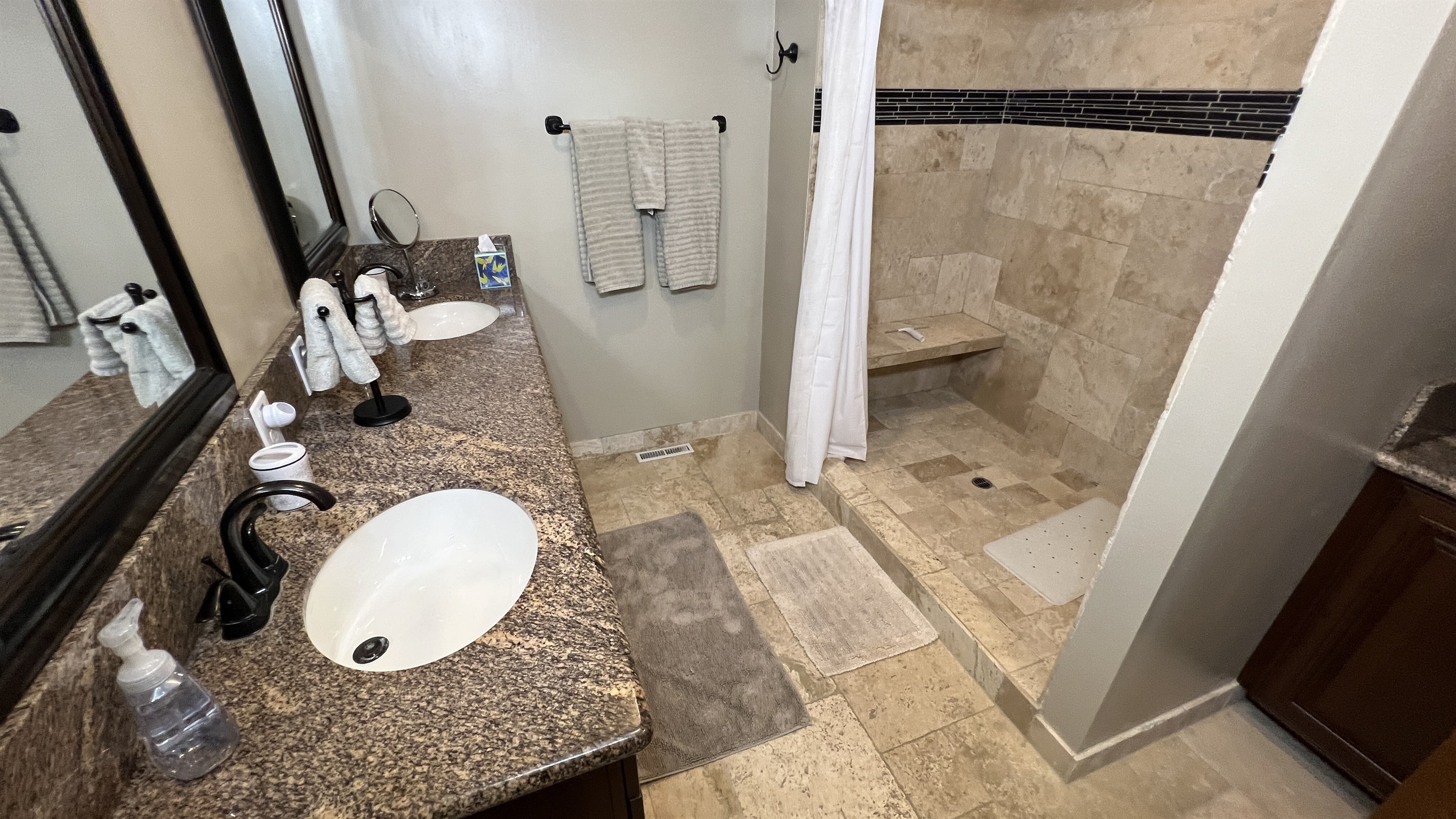 The lower level has a 3rd bedroom with two bunk beds that can sleep at least 4. The Retreat's 3rd full bath is on this level.
