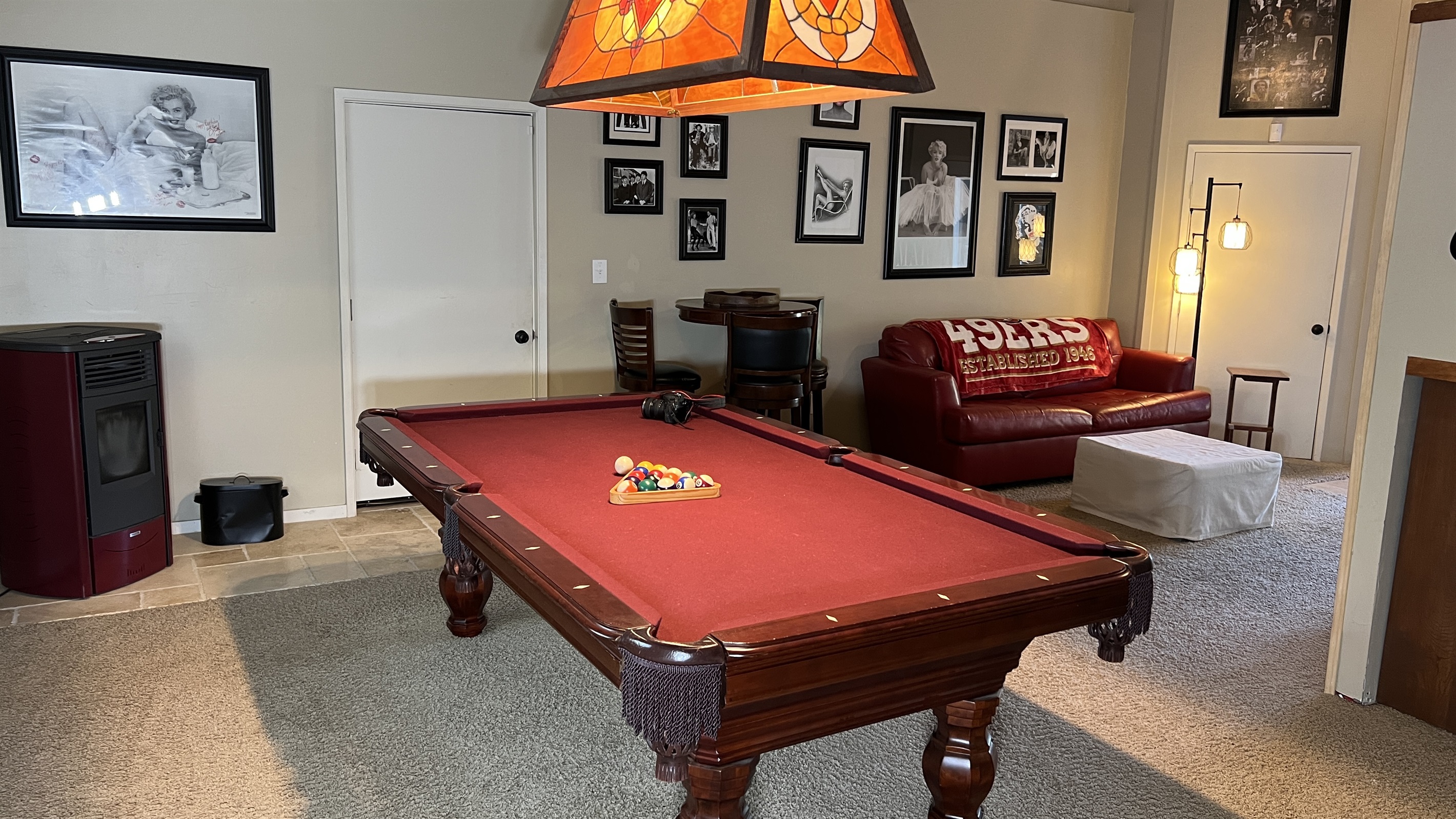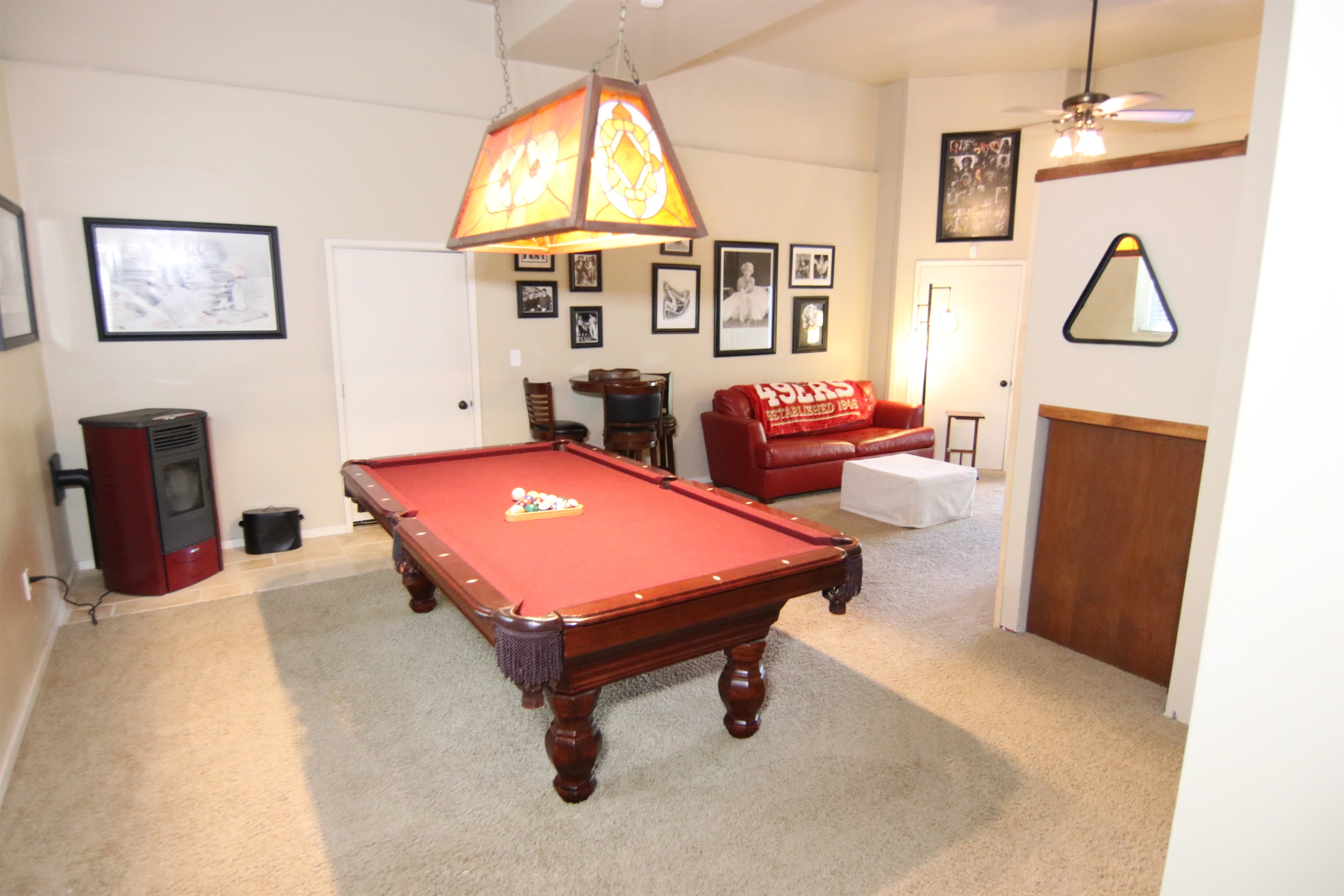 Downstairs, you quickly see the spacious lower level featuring a large game room with pool and card tables, a great social area and media space.