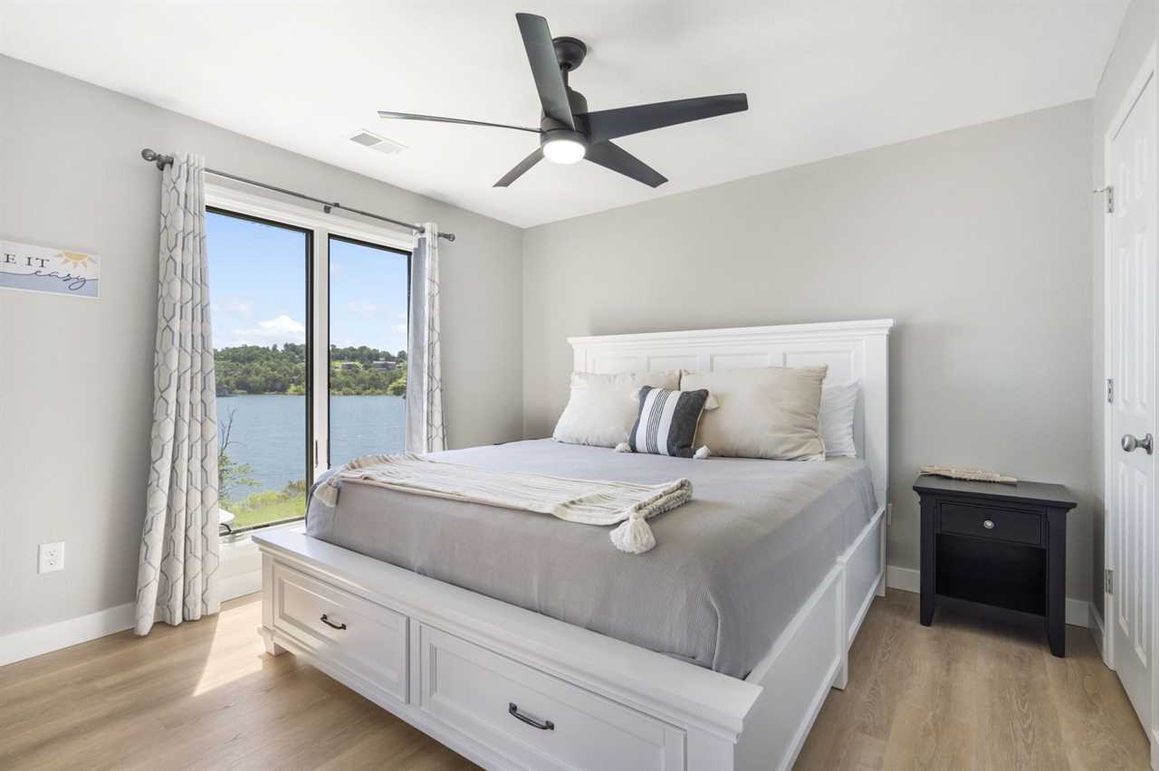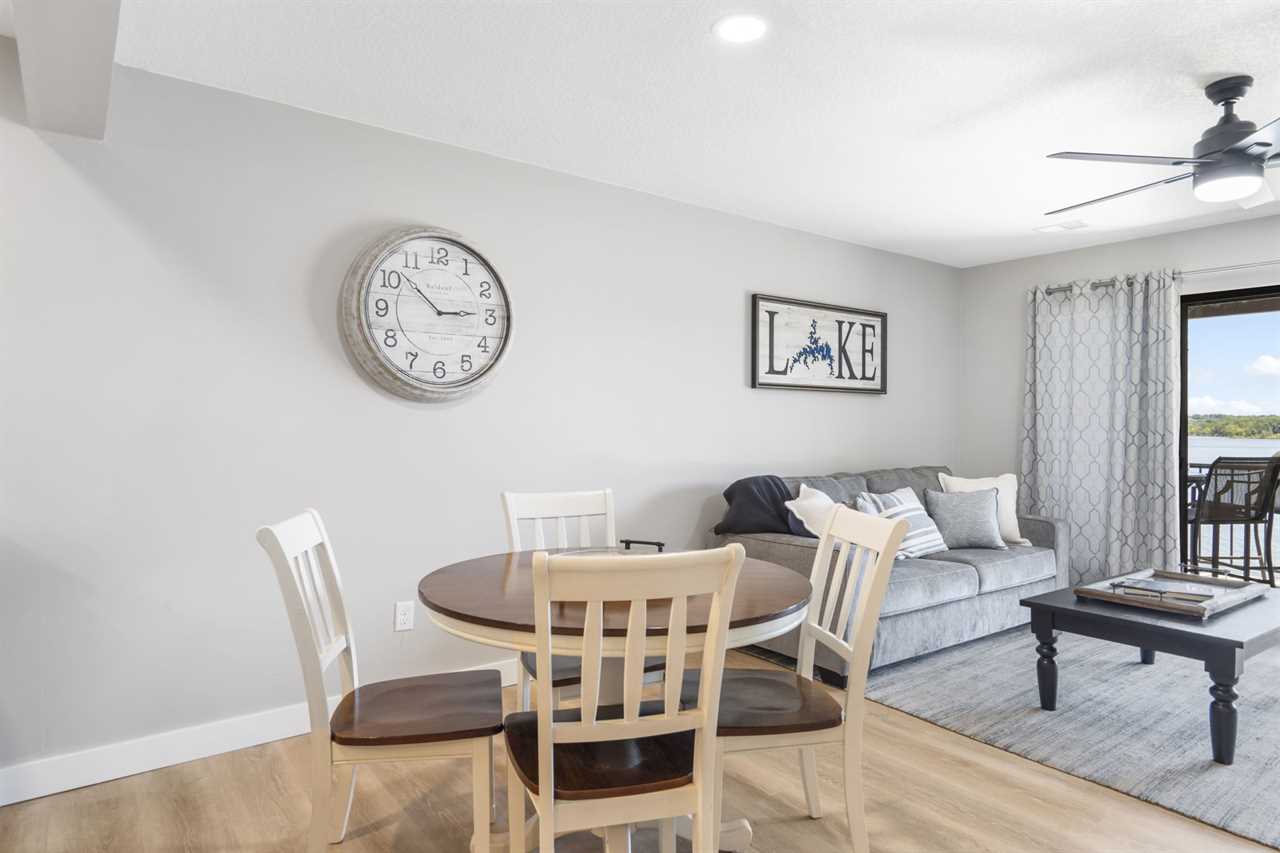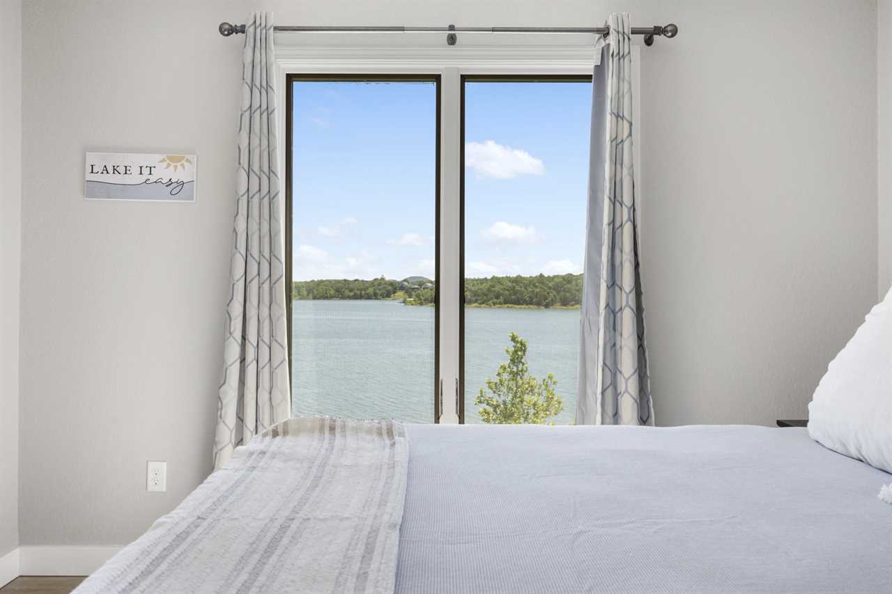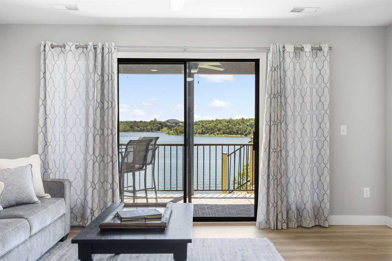 Inside you are greeted by the fully-equipped kitchen to your left. Enjoy your culinary creations at the dining table or cozy up in the spacious living area for a movie night. Just beyond the sliding glass doors, Table Rock Lake awaits you. You are steps from cooling off in the lake or casting your line for some dinner.