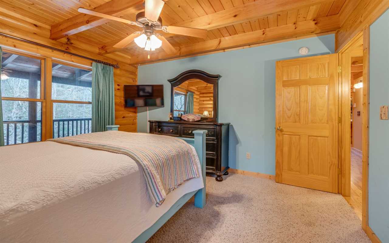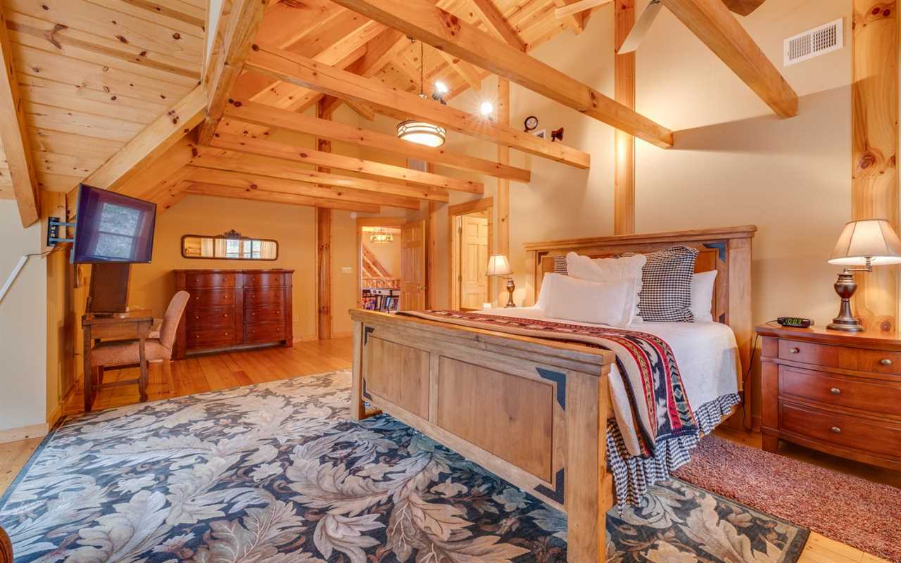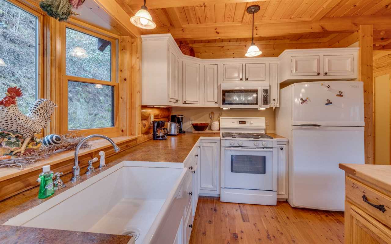 One of Hillside Hideout's highlights is its outdoor haven. Step onto the open deck and breathe in the fresh mountain air while sipping cocktails around the fire table. The bubbling hot tub on the patio beckons, promising relaxation as you soak tired muscles with mountain and tree vistas. Host a barbecue on the grill and dine at the outdoor table, creating unforgettable moments against the backdrop of nature's symphony. Or walk into the tree to sway and unwind in a pair of hammocks.